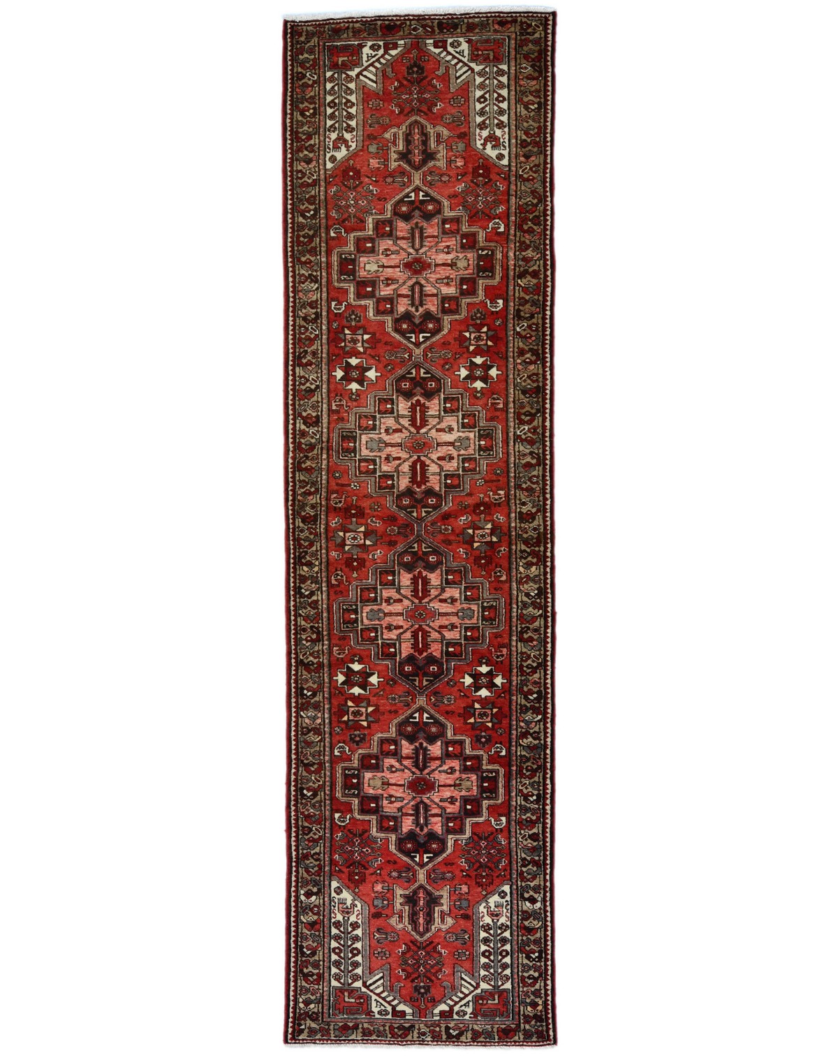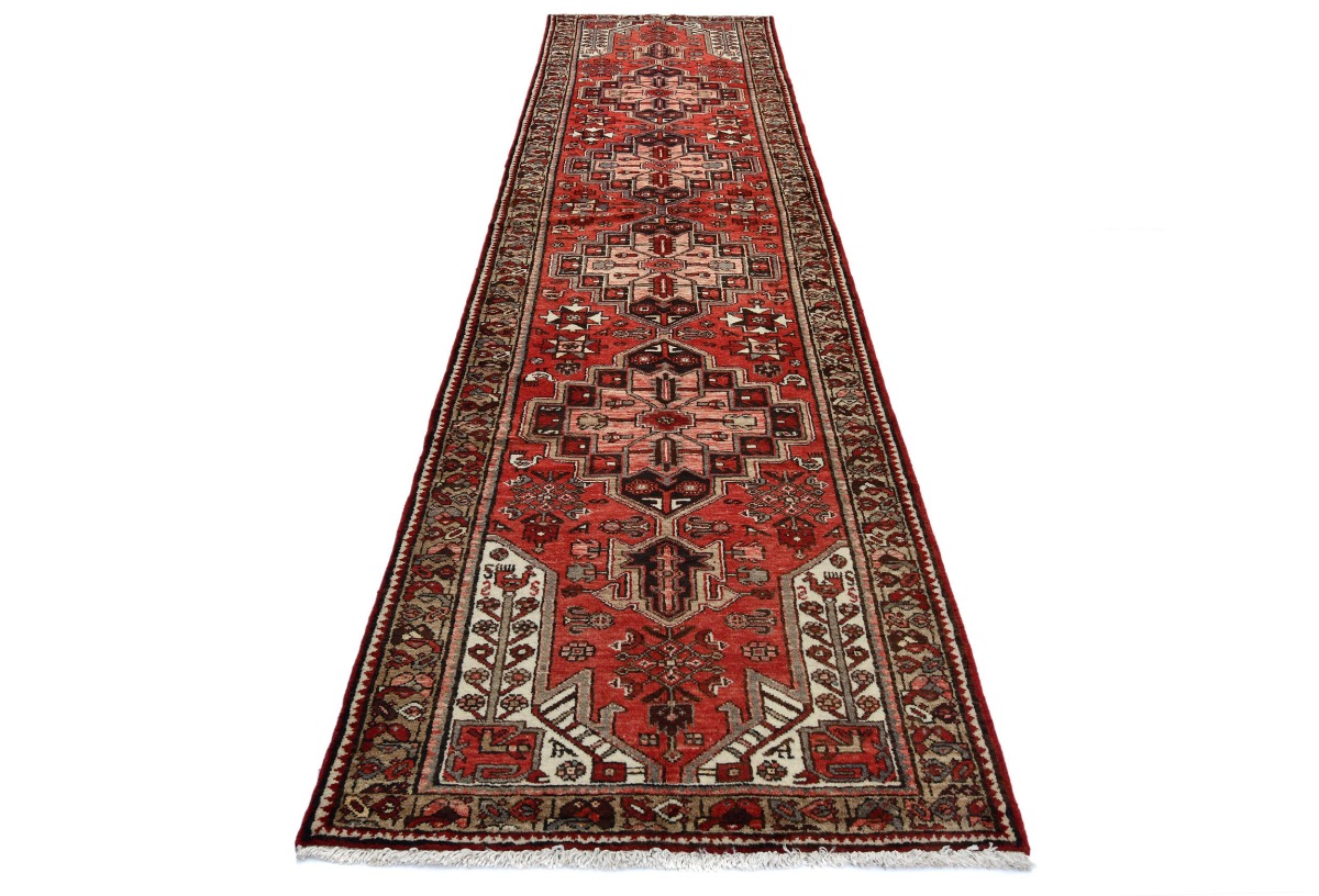 Handmade vintage 3X12 red Persian runner made with vegetable dyes (fine wool pile and cotton foundation), superior knot count, and alluring ancient designs. This Oriental runner never will go out of style and would be among your most valuable treasures.