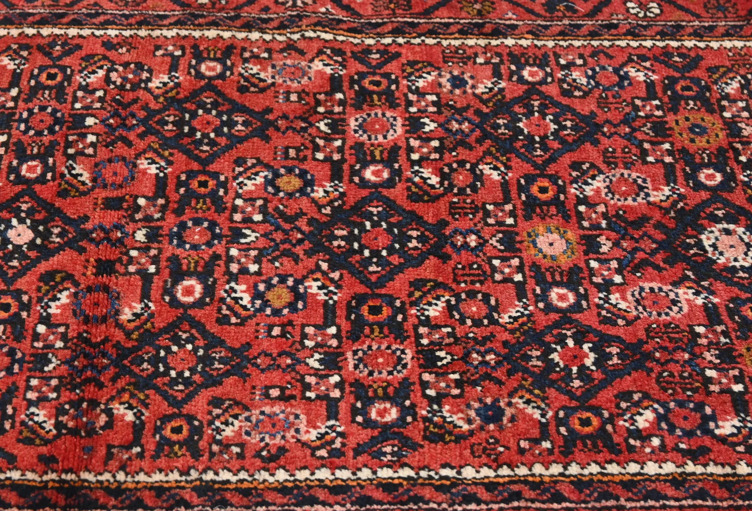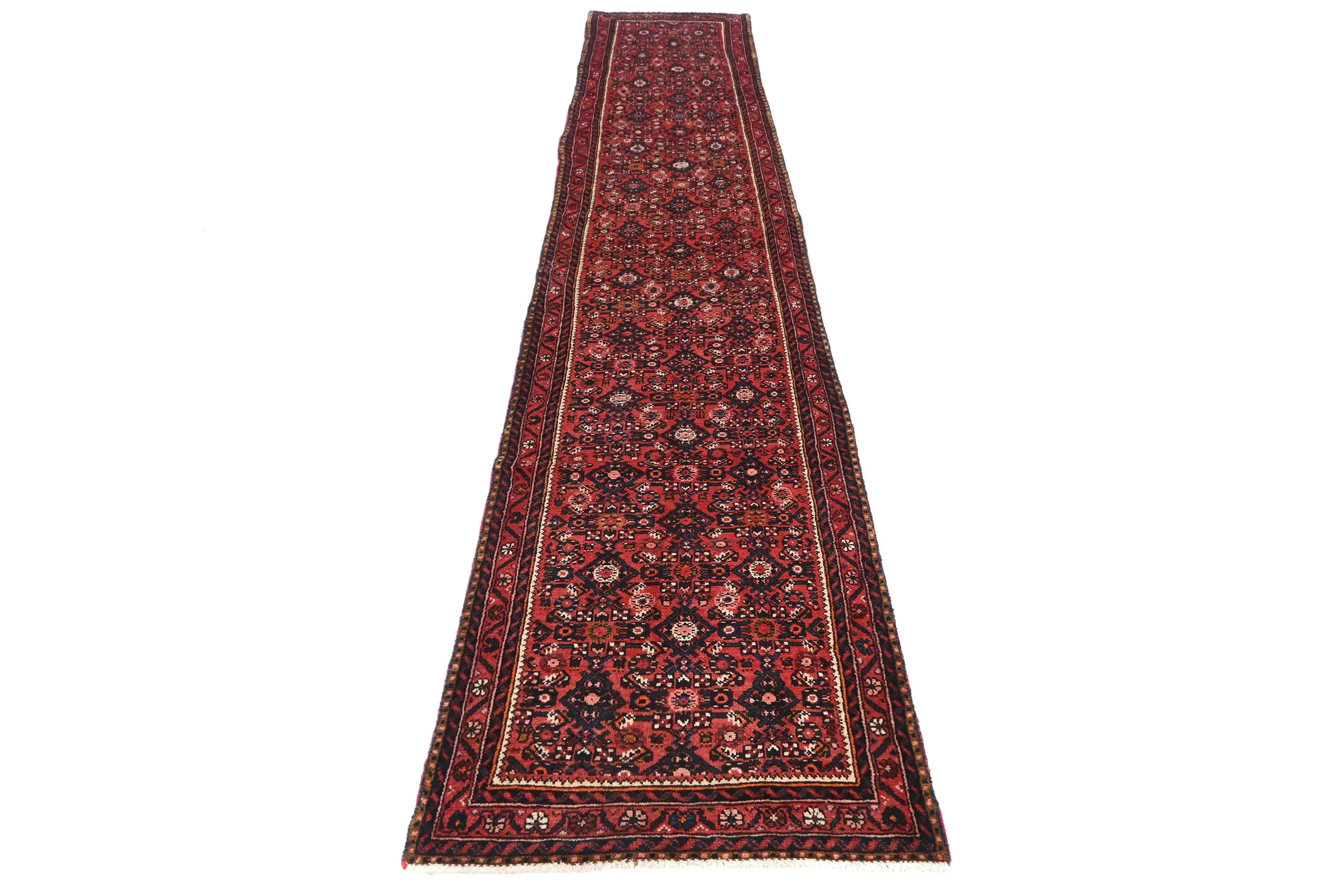 Handmade vintage 3X13 Red Persian runner made with vegetable dyes (fine wool pile and cotton foundation), superior knot count, and alluring ancient designs. This Oriental runner never will go out of style and would be among your most valuable treasures.
