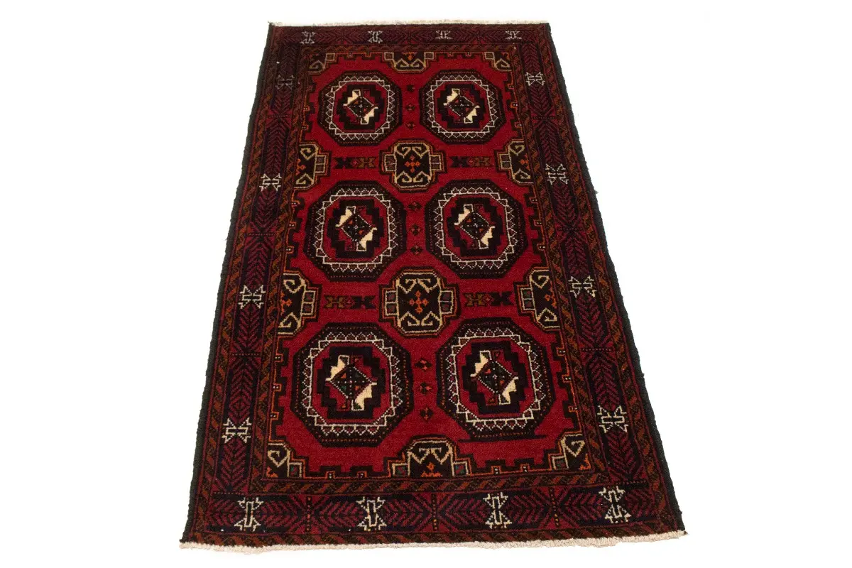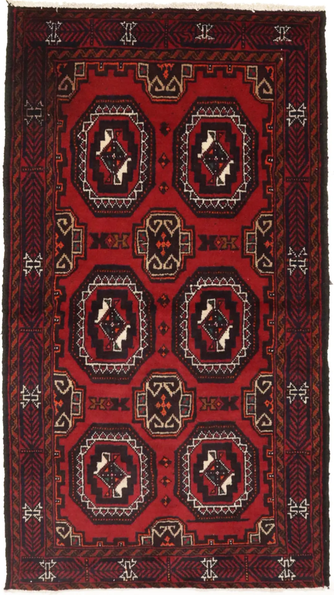 Vintage Red Tribal 3X6 Turkoman Balouch Persian Rug