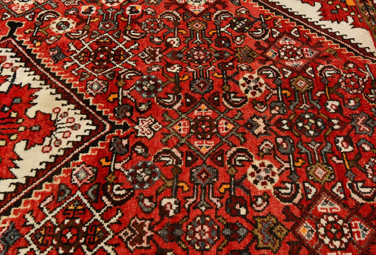 Handmade vintage 4'7X6'8 red Persian rug made with vegetable dyes (fine wool pile and cotton foundation), superior knot count, and alluring ancient designs. This Oriental rug never will go out of style and would be among your most valuable treasures.