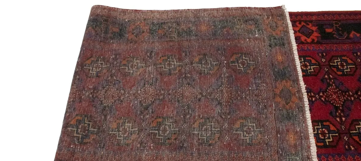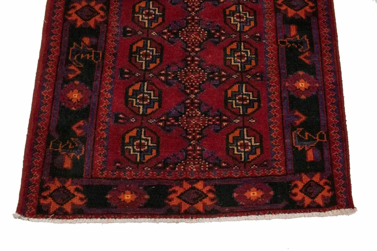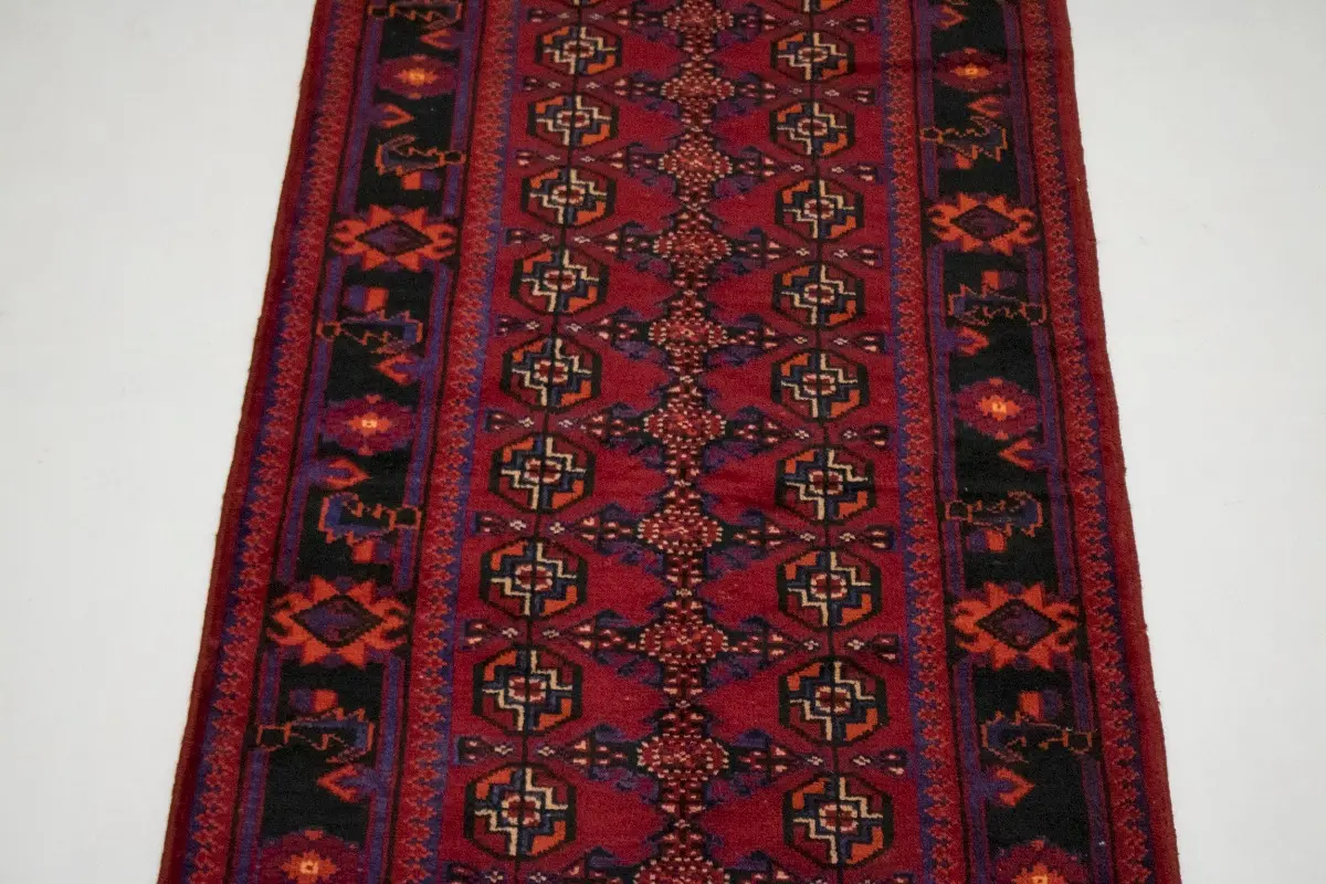 Vintage Red Tribal 4X11 Balouch Persian Runner Rug