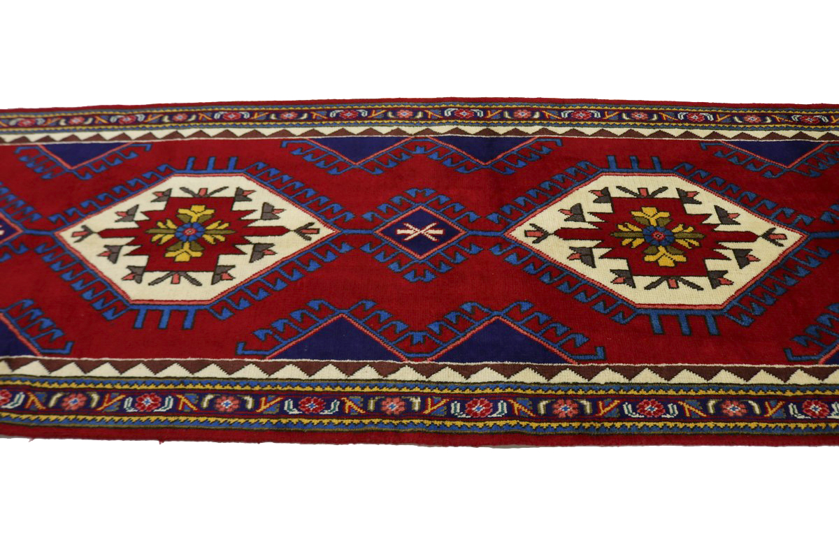 This original 4X13 red vintage Persian runner was made by the hands of gifted weavers inspired by a variety of spectacular artistic designs, to recreate the aged look of the original piece with a richness of color and ornately patterned floral background field. What set this traditional Oriental area runner from the others are the material and dye used (wool pile and cotton foundation), knot count, ancient designs, fantastic grades, and its regional historical connection: it has deep roots, from the story of the people who produced it to the meaning of the symbols and colors displayed across its canvas that have been praised for centuries. This classic home decor carpet will be completely cozy and inviting that never will go out of style! Also, this Oriental runner would be among your most valuable treasures, it is a great investment that accrues value over time, and it will last for generations because was woven with high-quality, all-natural wool; it won’t rip, tear, or shed. Environmentally friendly, opulent yet affordable; this Persian rug will give you a thorough amount of character to help define your living space with elegance and warmth that will capture the eyes and attention of your audience (homeowners, designers, decorators, family and friends). RT-5208