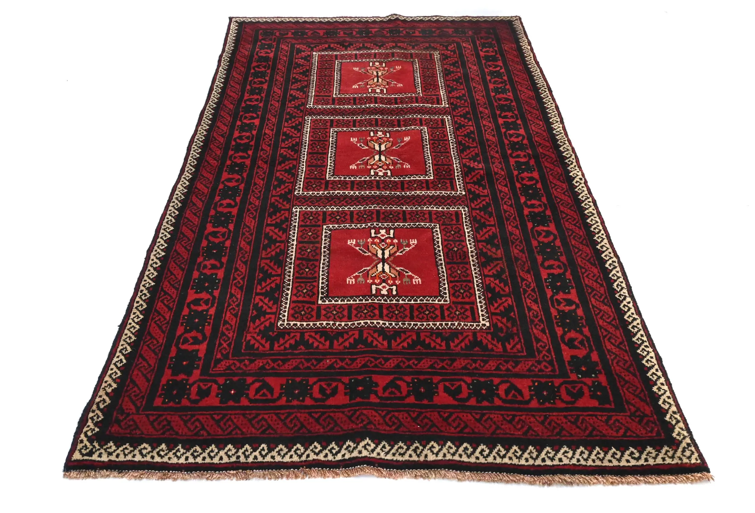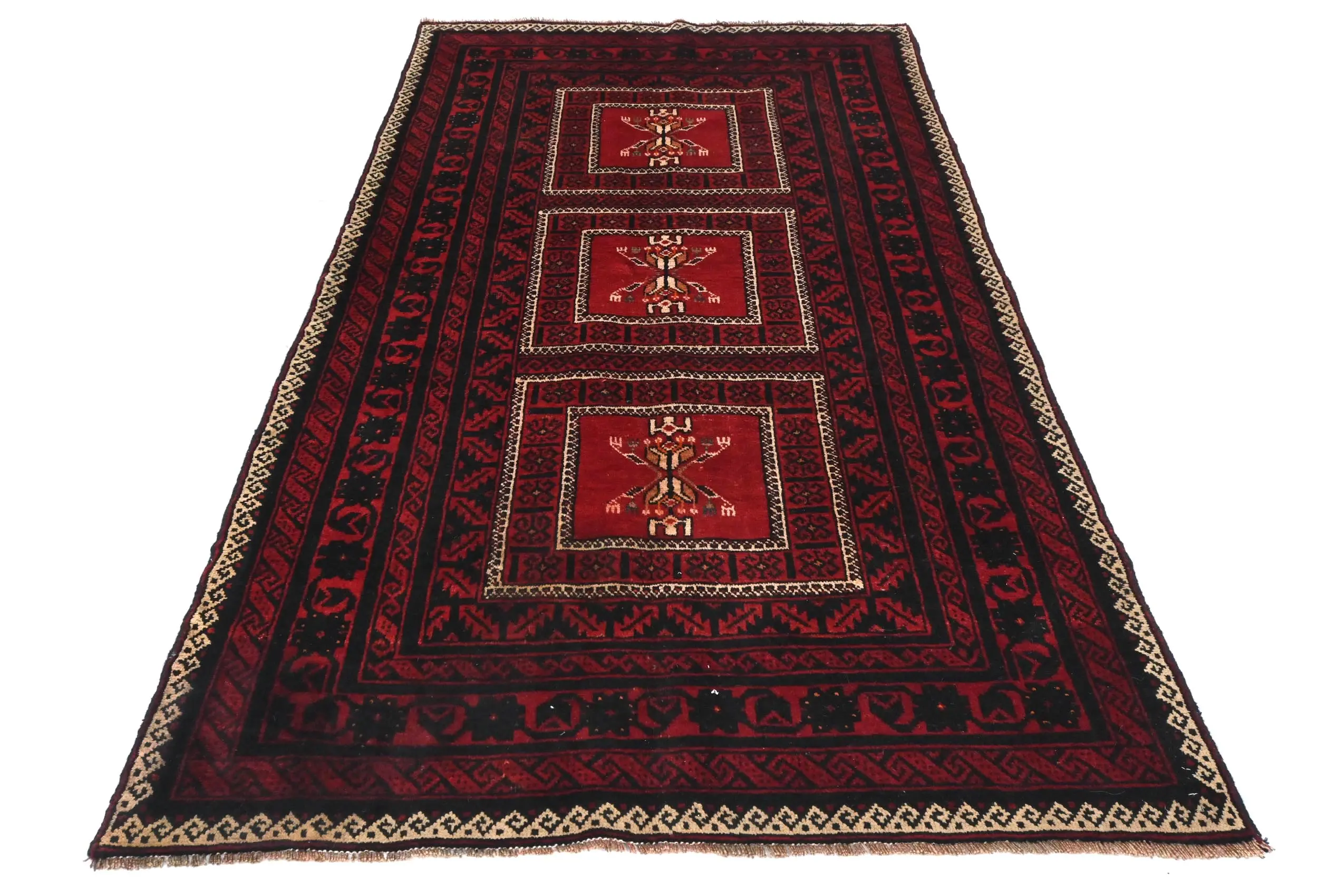 Vintage Red Tribal 4X7 Balouch Persian Rug