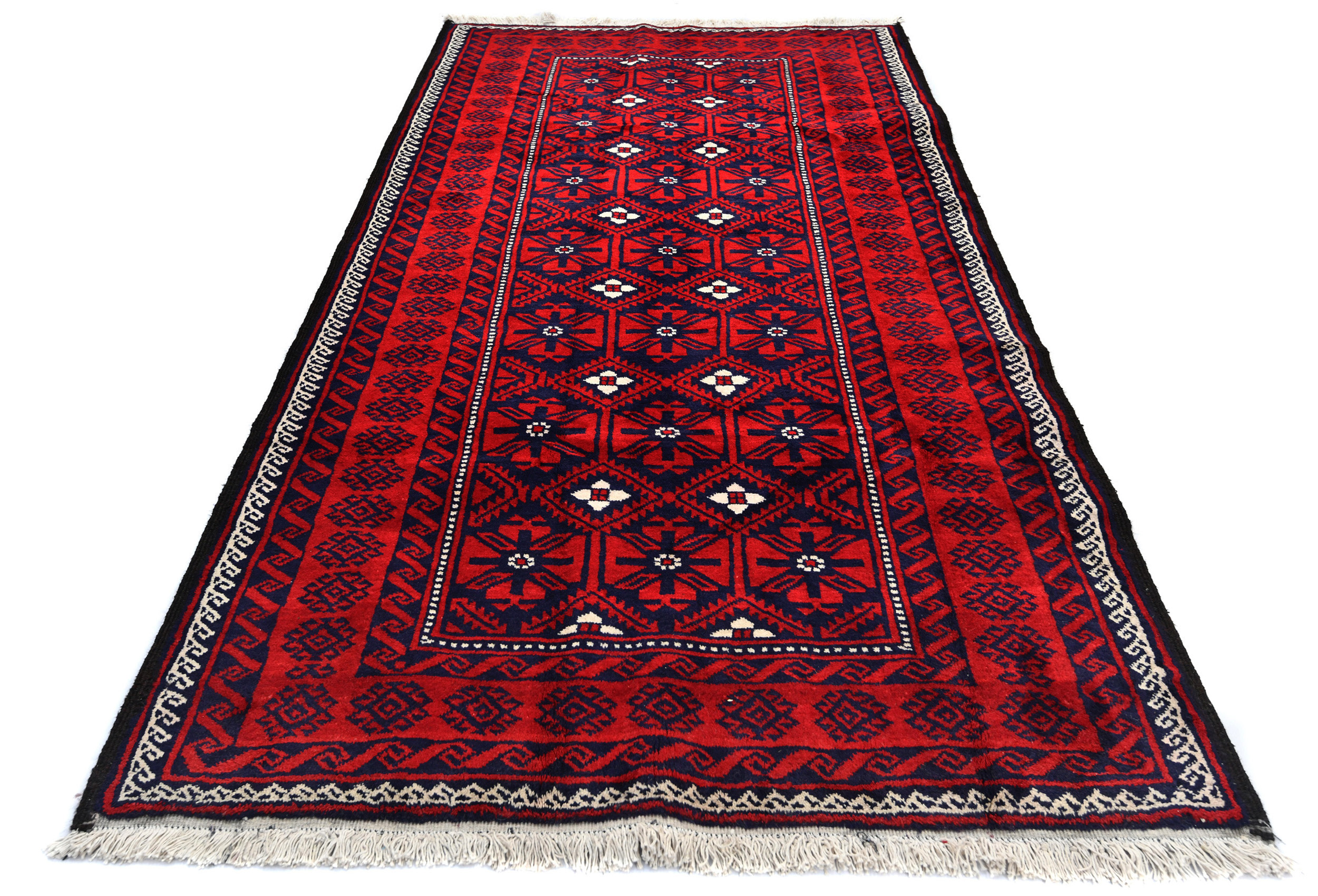 Vintage Red Tribal 4X8 Balouch Persian Rug