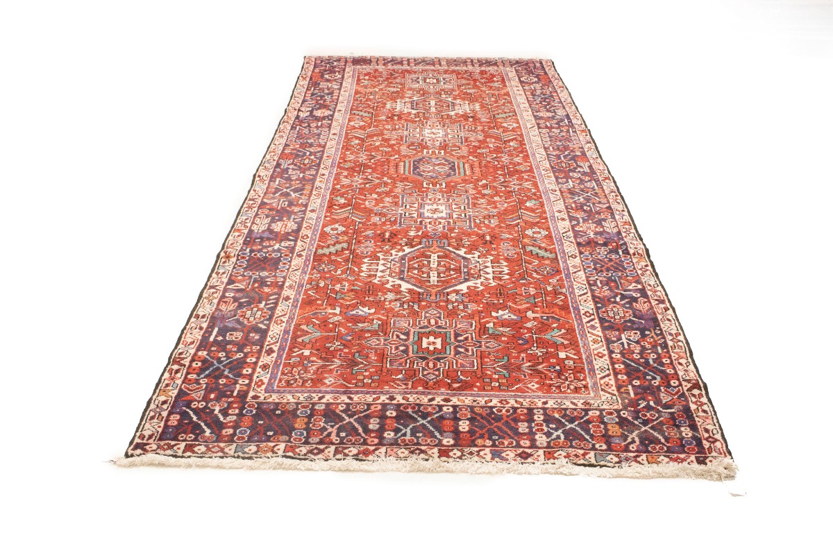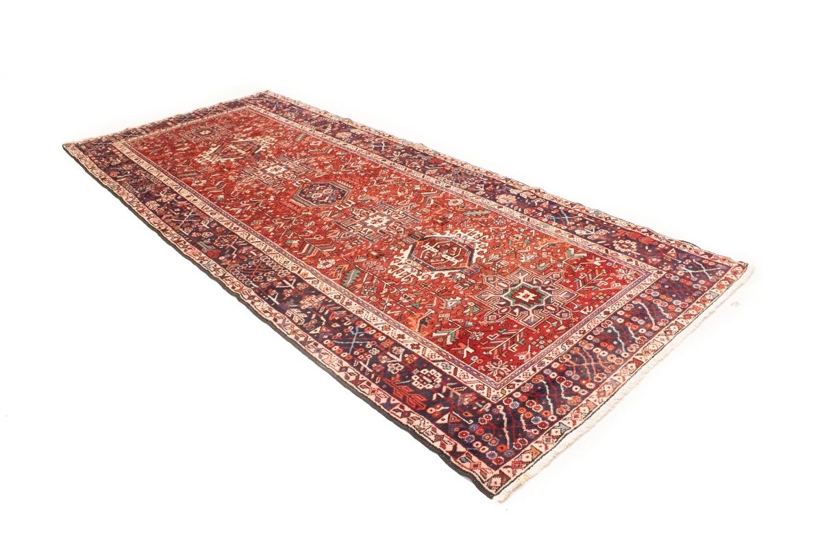This authentic 5'4X12'7 red vintage Persian runner was finely knotted by the hands of weavers influenced by a variety of amazing artistic designs, to recreate the aged look of the exceptional piece with a richness of color and embellished background field. What set this tribal Oriental area runner from the others are the material and dye used (wool pile and cotton foundation), knot count, antique designs, fantastic grades, and its regional historical connection: it has deep roots, from the story of the people who produced it to the meaning of the symbols and colors displayed across its canvas that have been praised for centuries. This home décor carpet will be completely cozy and inviting that never will go out of style! Also, this Oriental runner would be among your most valuable treasures, it is a great investment that increase in value over time, and it will last a lifetime because was woven with high-quality, all-natural wool; it won’t rip, tear, or shed. Eco-friendly, opulent yet affordable; this Persian rug will give you an extra pop of character to help define your home environment with luxury and warmth that will capture the eyes and attention of your audience (homeowners, designers, decorators, family and friends). RT-10534