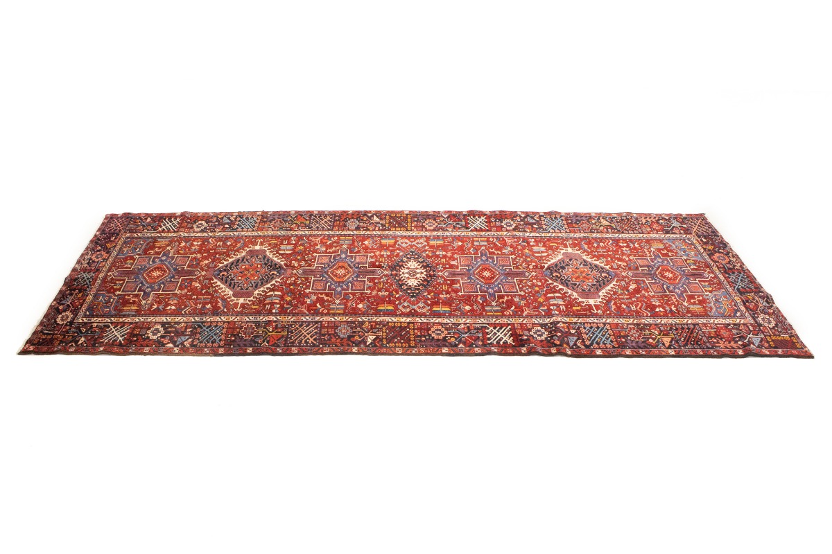 Handmade vintage 5X13 red Persian runner made with natural dyes (fine wool pile and cotton foundation), superior knot count, and appealing ancient designs. This Oriental runner never will go out of style and would be among your most valuable treasures.
