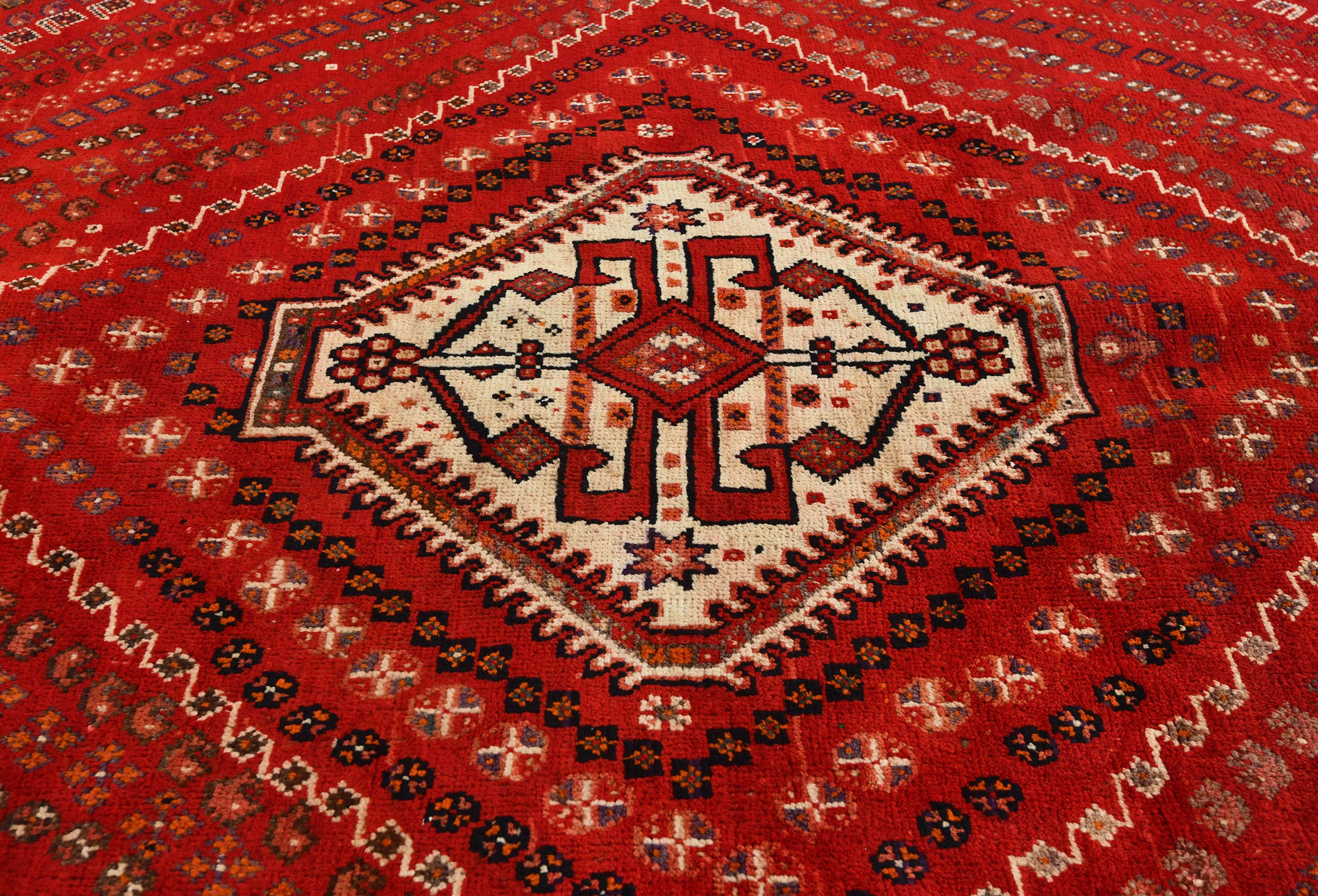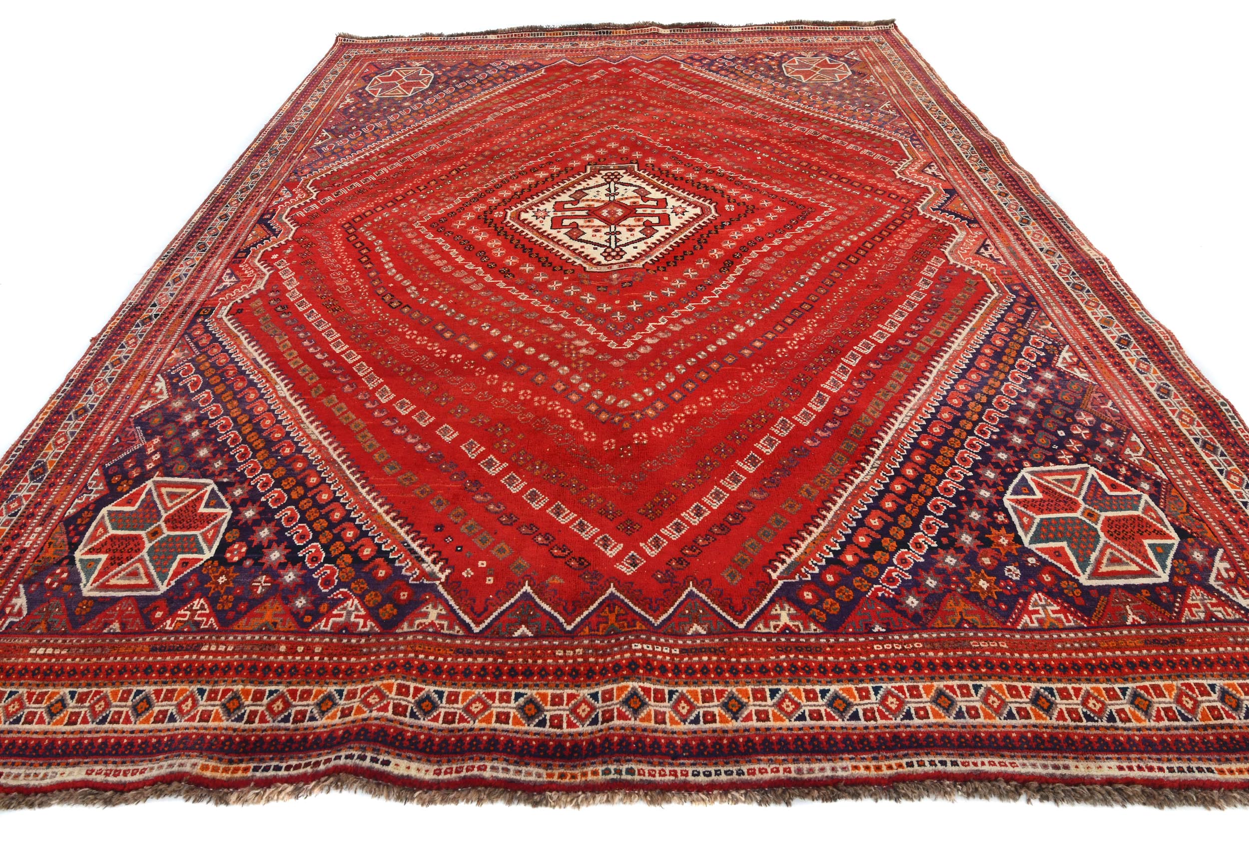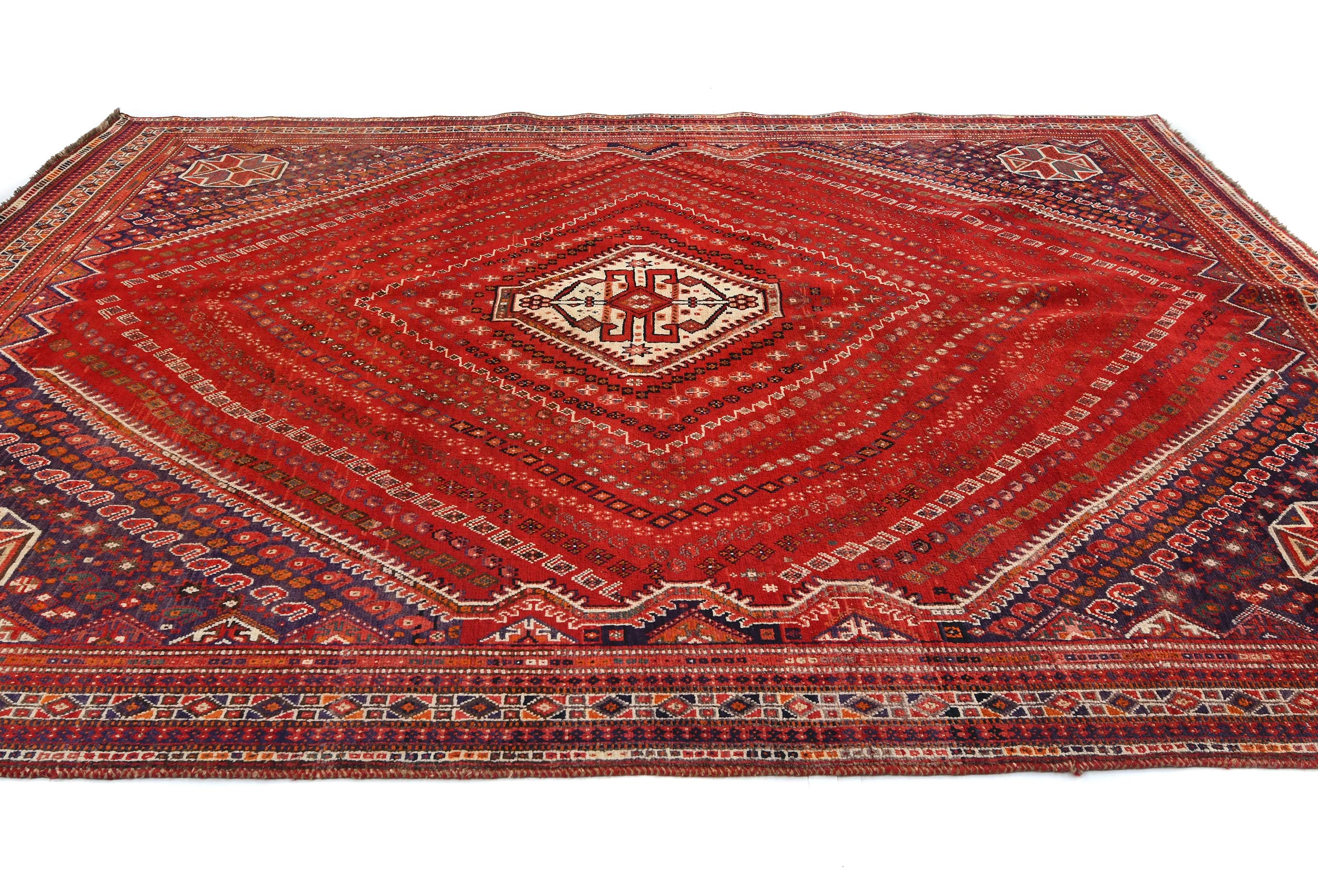 Vintage Red Tribal 7'6X10'2 Shiraz Persian Rug