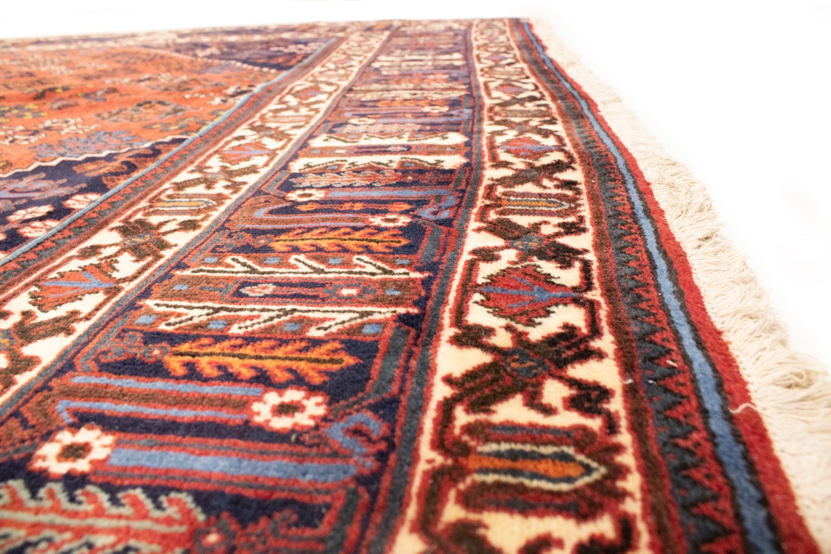 This authentic 8X12 red vintage Persian rug was finely knotted by the hands of weavers influenced by a variety of amazing artistic designs, to recreate the aged look of the exceptional piece with a richness of color and embellished floral background field. What set this traditional Oriental area rug from the others are the material and dye used (wool pile and cotton foundation), knot count, antique designs, fantastic grades, and its regional historical connection: it has deep roots, from the story of the people who produced it to the meaning of the symbols and colors displayed across its canvas that have been praised for centuries. This classic home décor carpet will be completely cozy and inviting that never will go out of style! Also, this Oriental rug would be among your most valuable treasures, it is a great investment that increase in value over time, and it will last a lifetime because was woven with high-quality, all-natural wool; it won’t rip, tear, or shed. Eco-friendly, opulent yet affordable; this Persian rug will give you an extra pop of character to help define your home environment with luxury and warmth that will capture the eyes and attention of your audience (homeowners, designers, decorators, family and friends). EB-6419