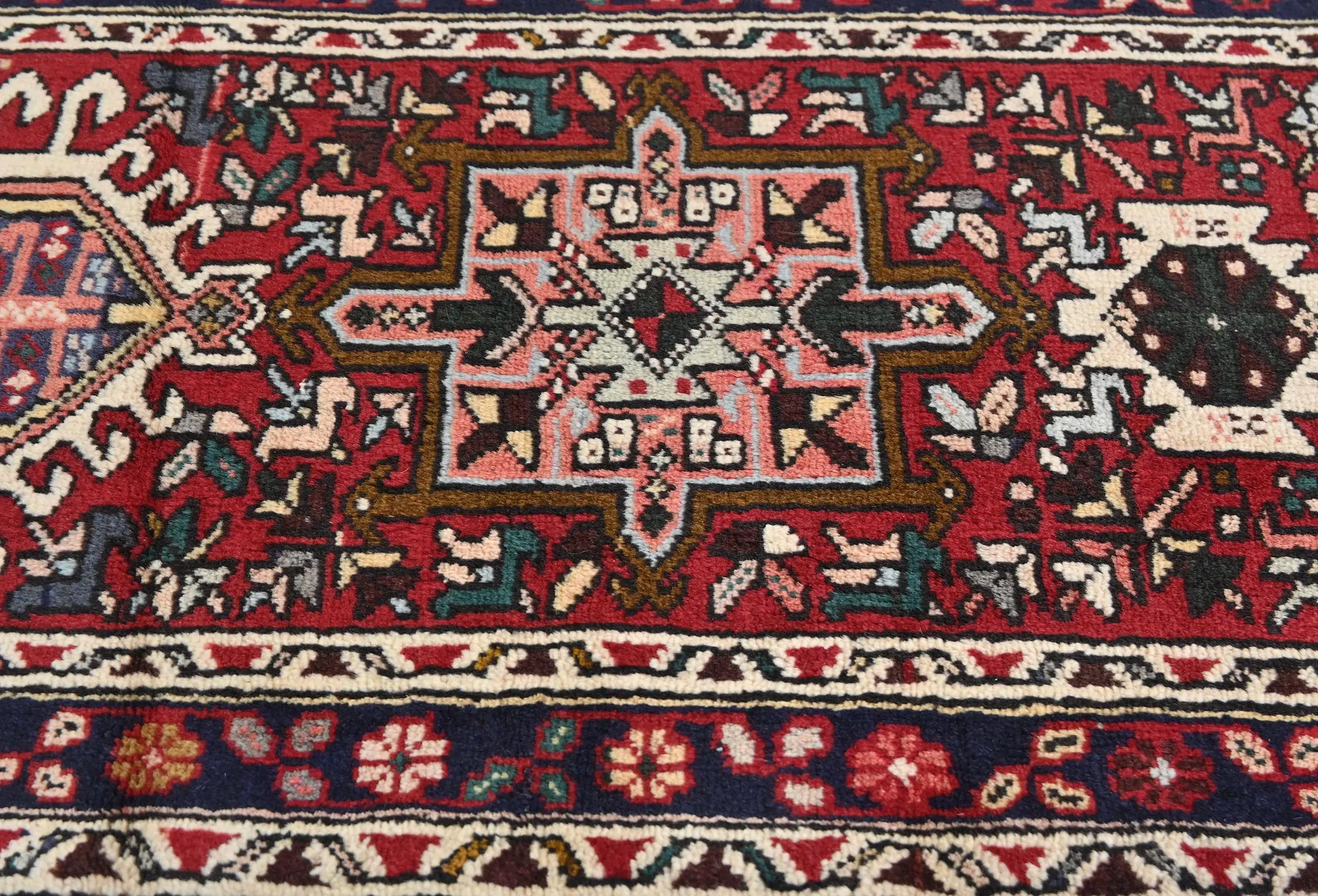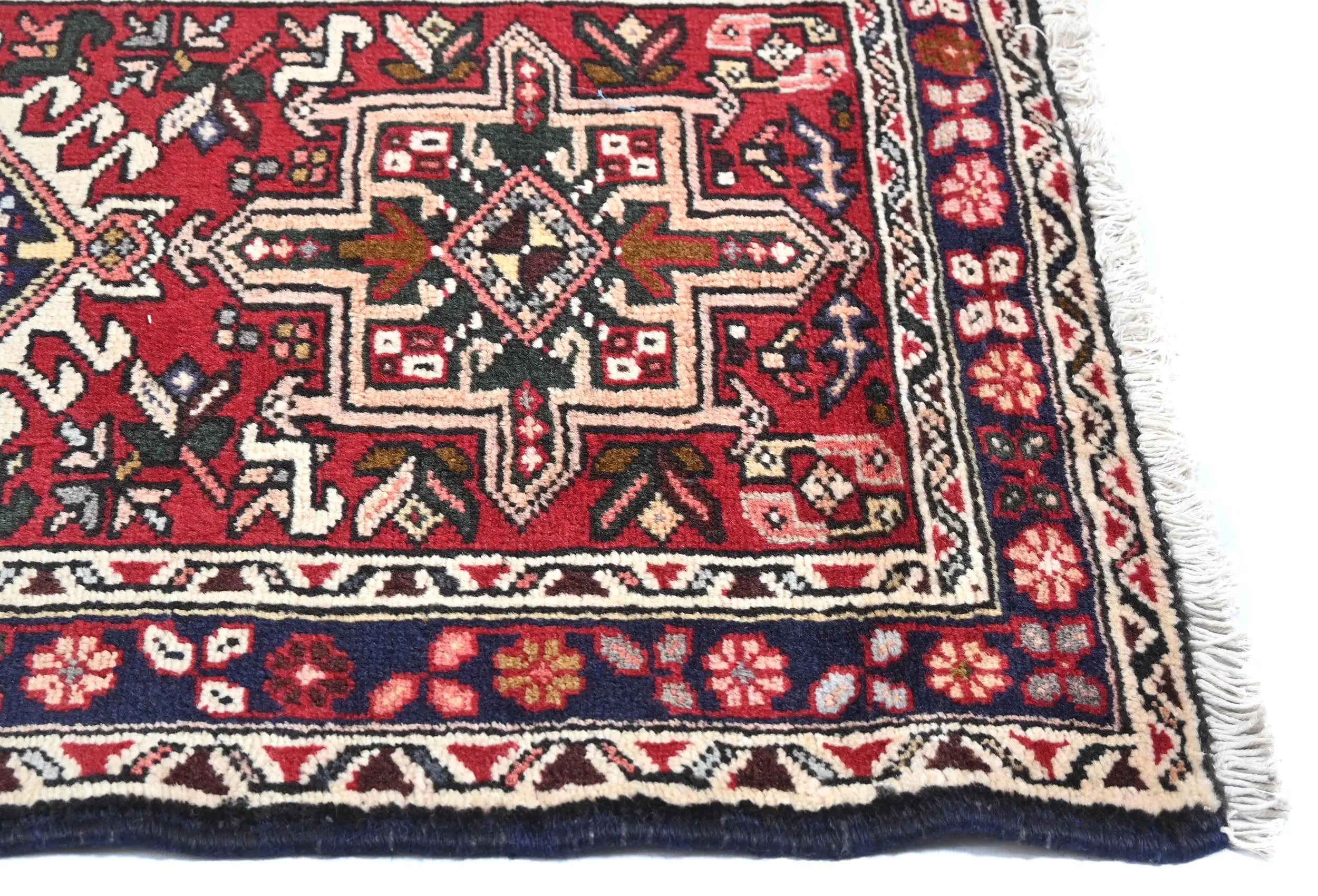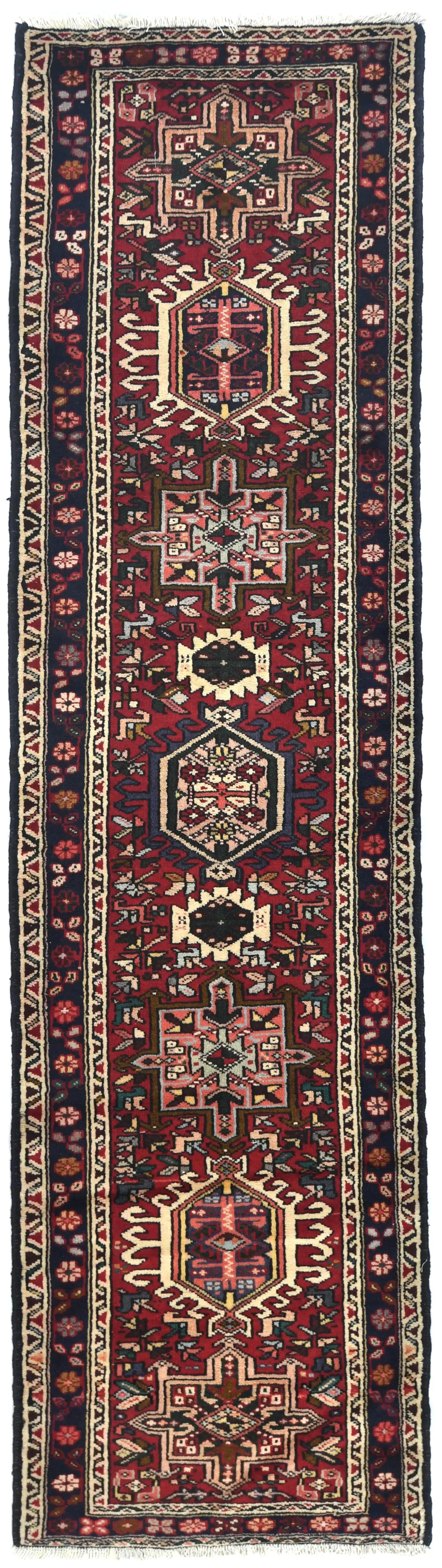 Vintage Red Tribal Geometric 2X9 Karajeh Persian Runner Rug