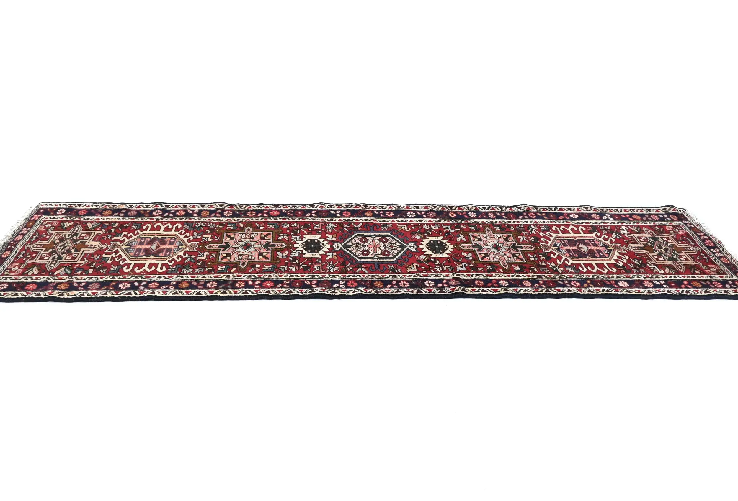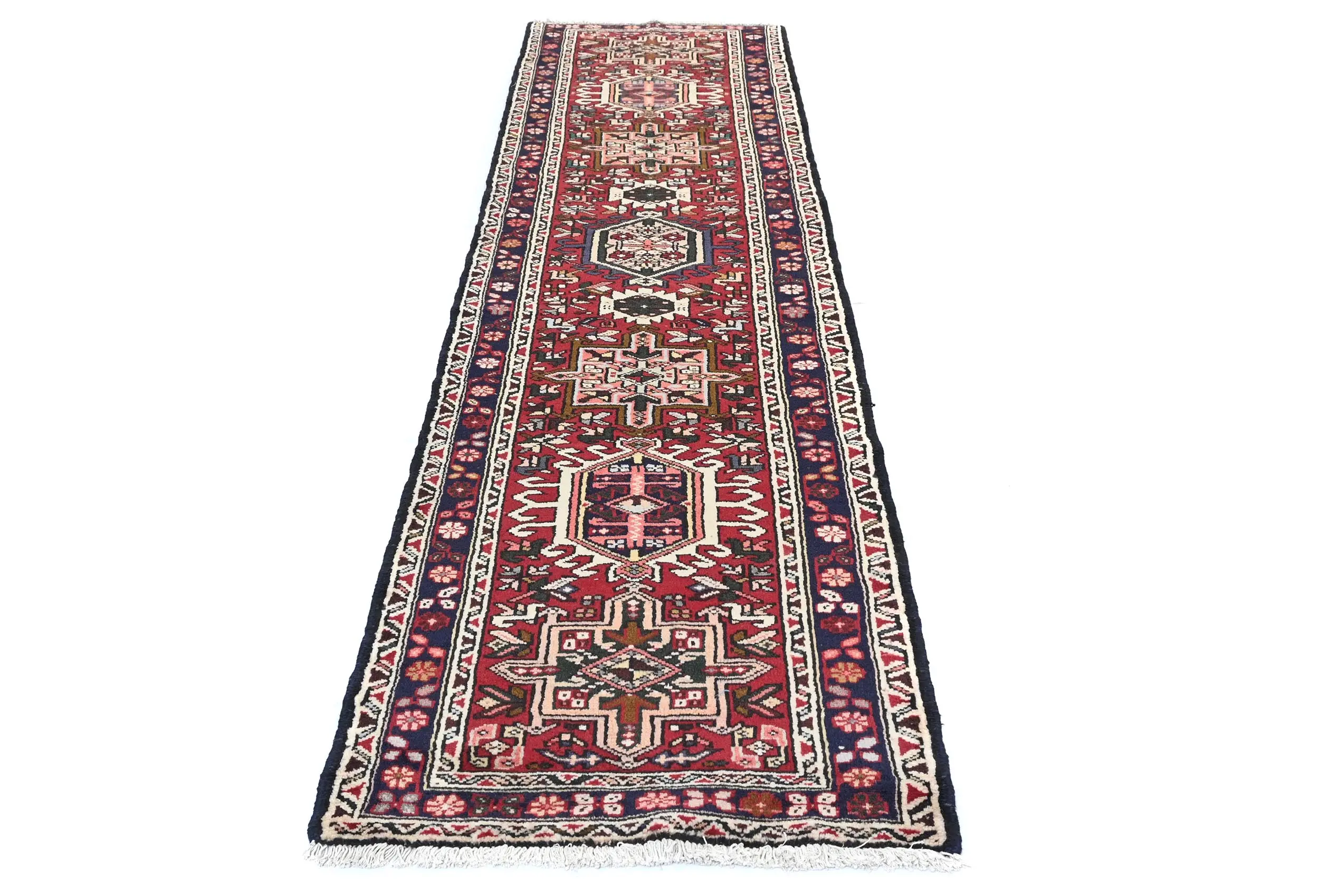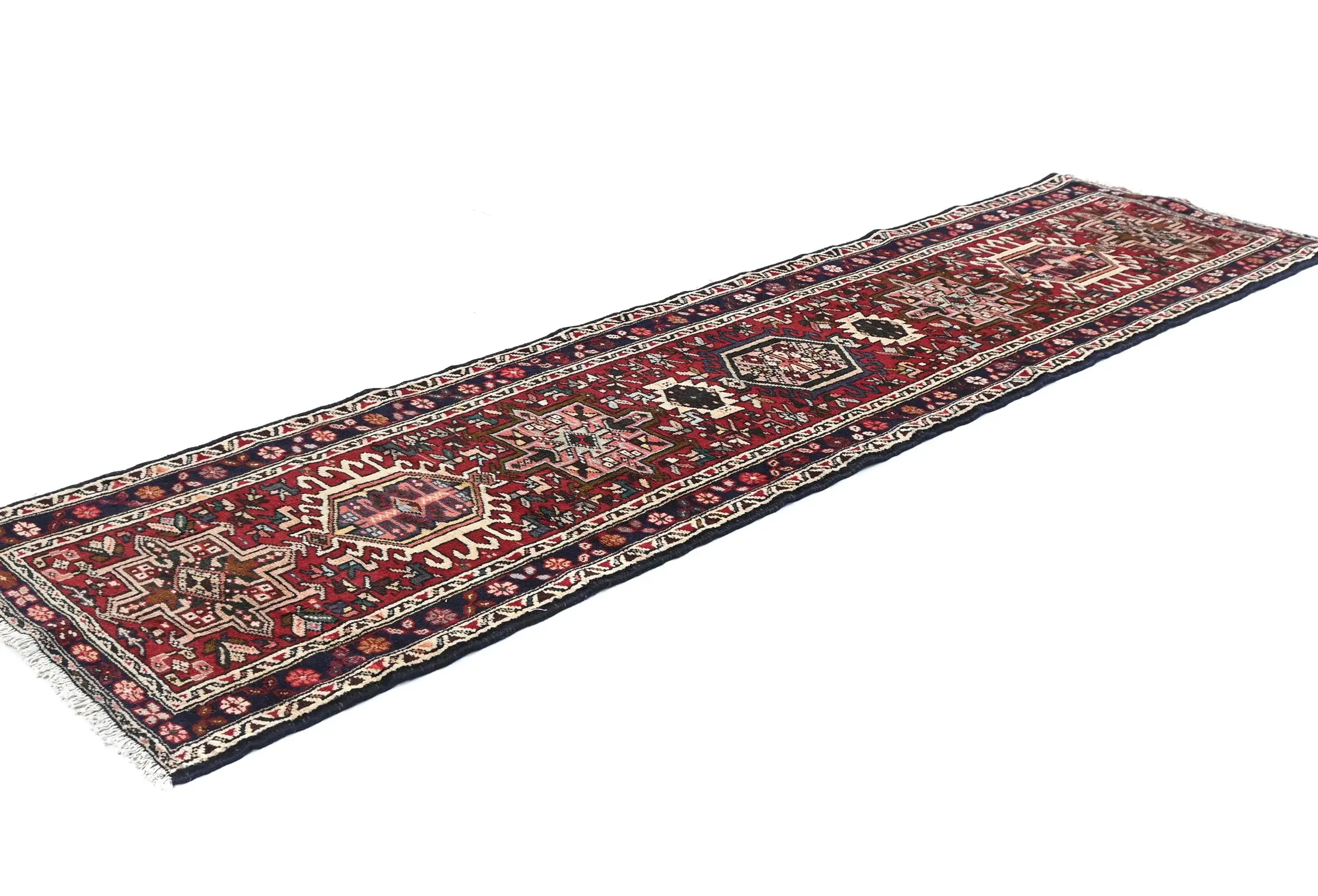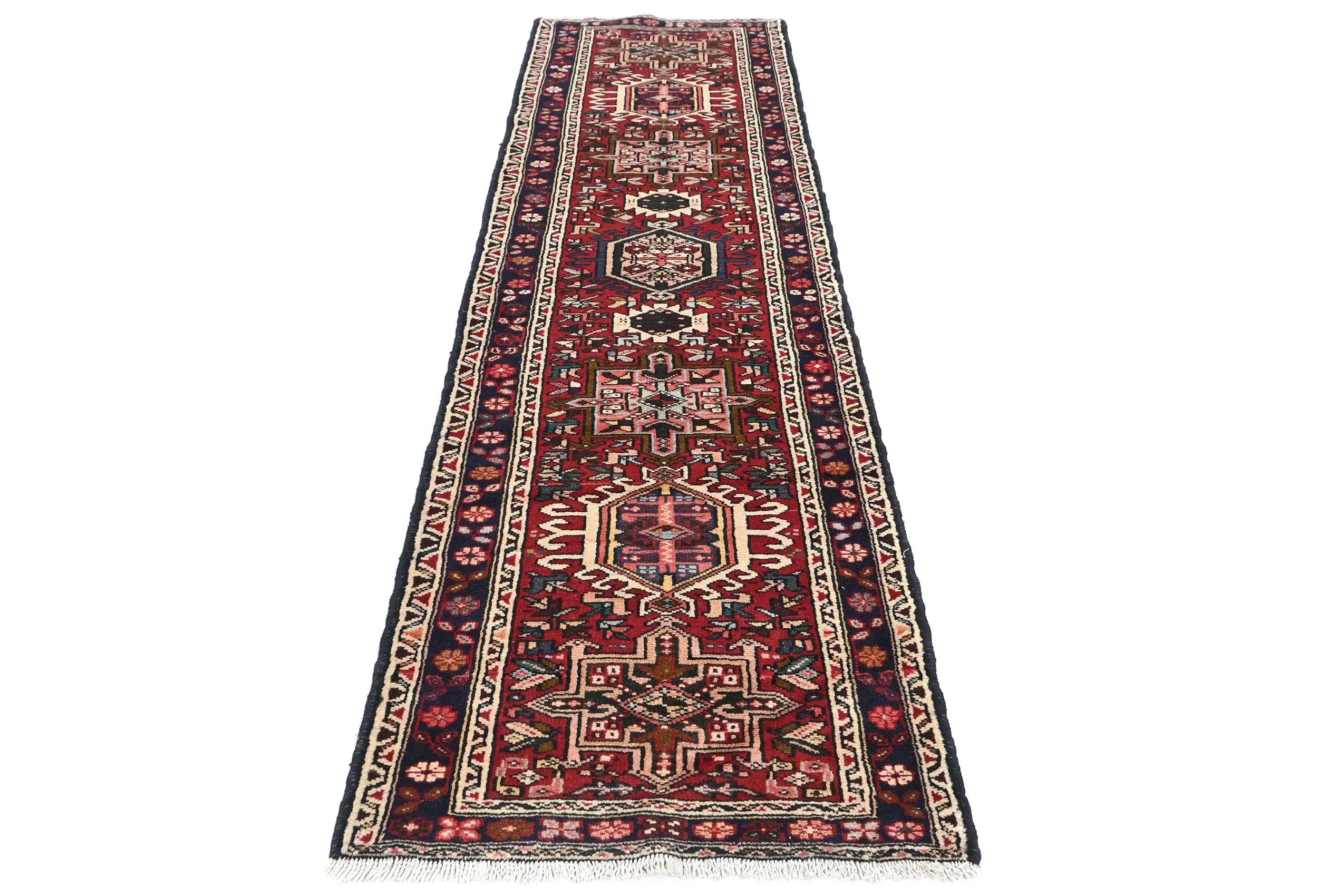 Hand Knotted 2X9 red Persian runner made with vegetable dyes (fine wool pile and cotton foundation), exceptional knot count, and appealing ancient designs. This Oriental runner never will go out of style and would be among your most valuable treasures.
