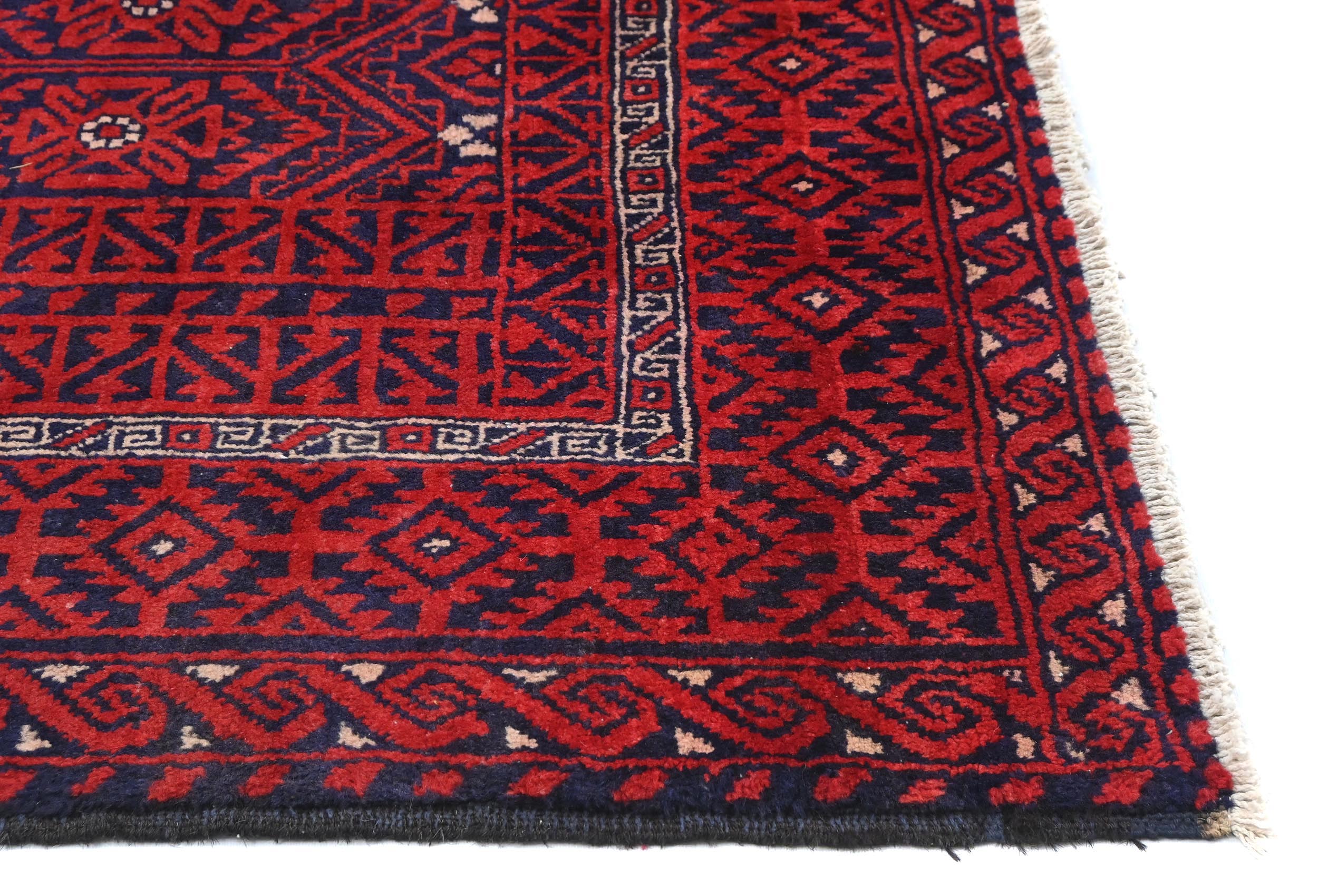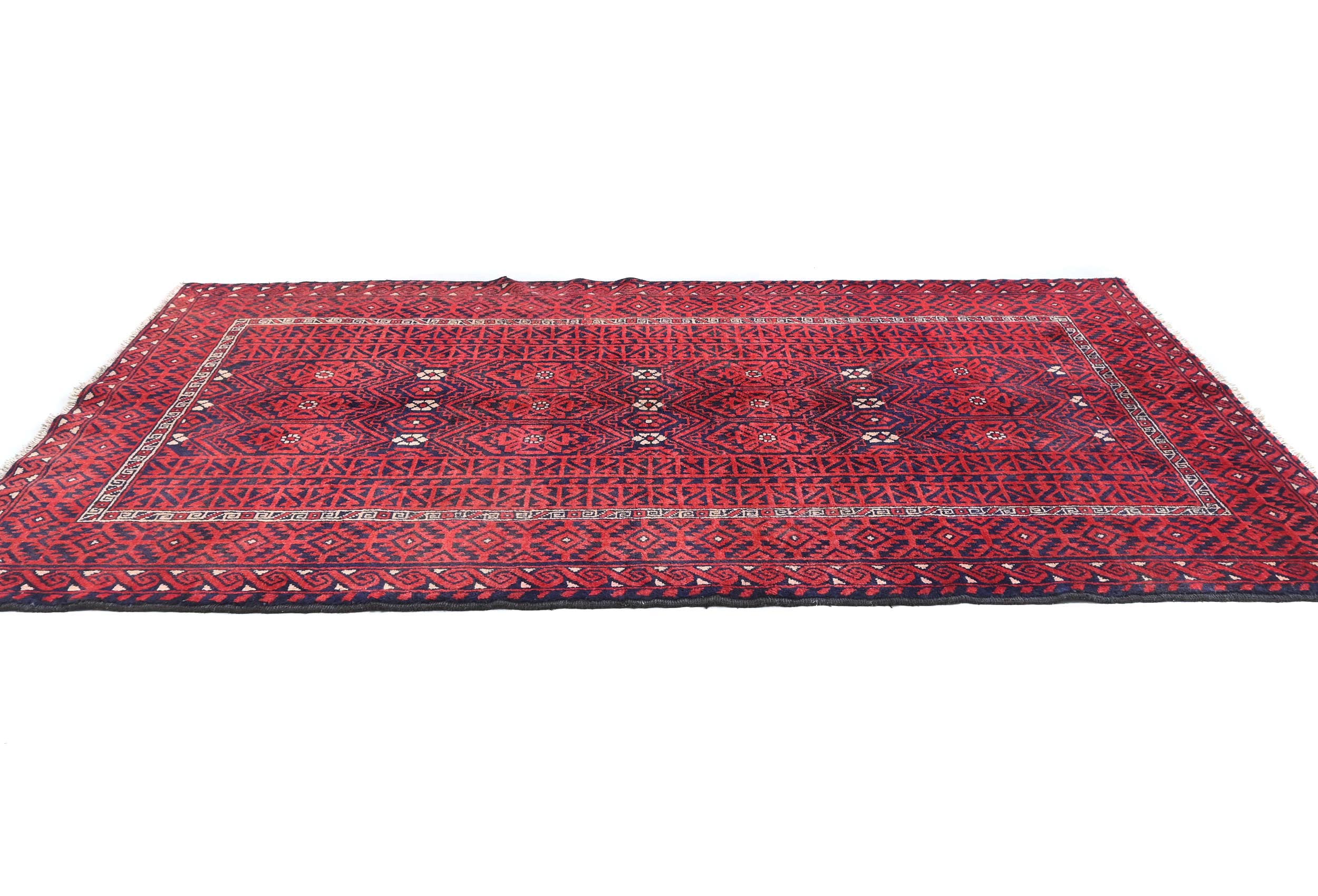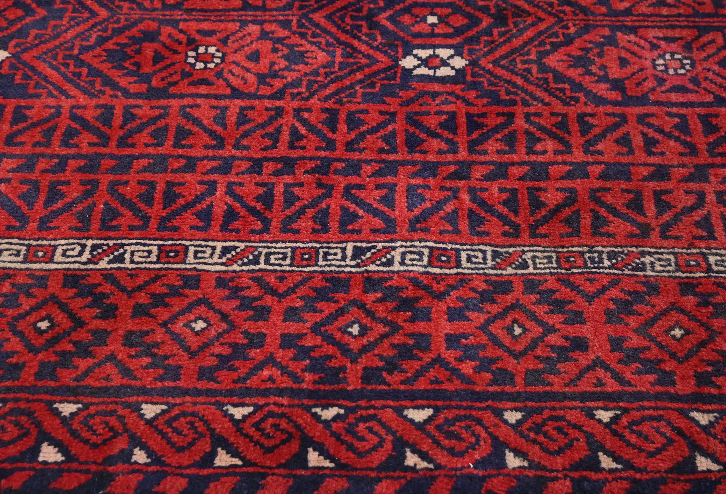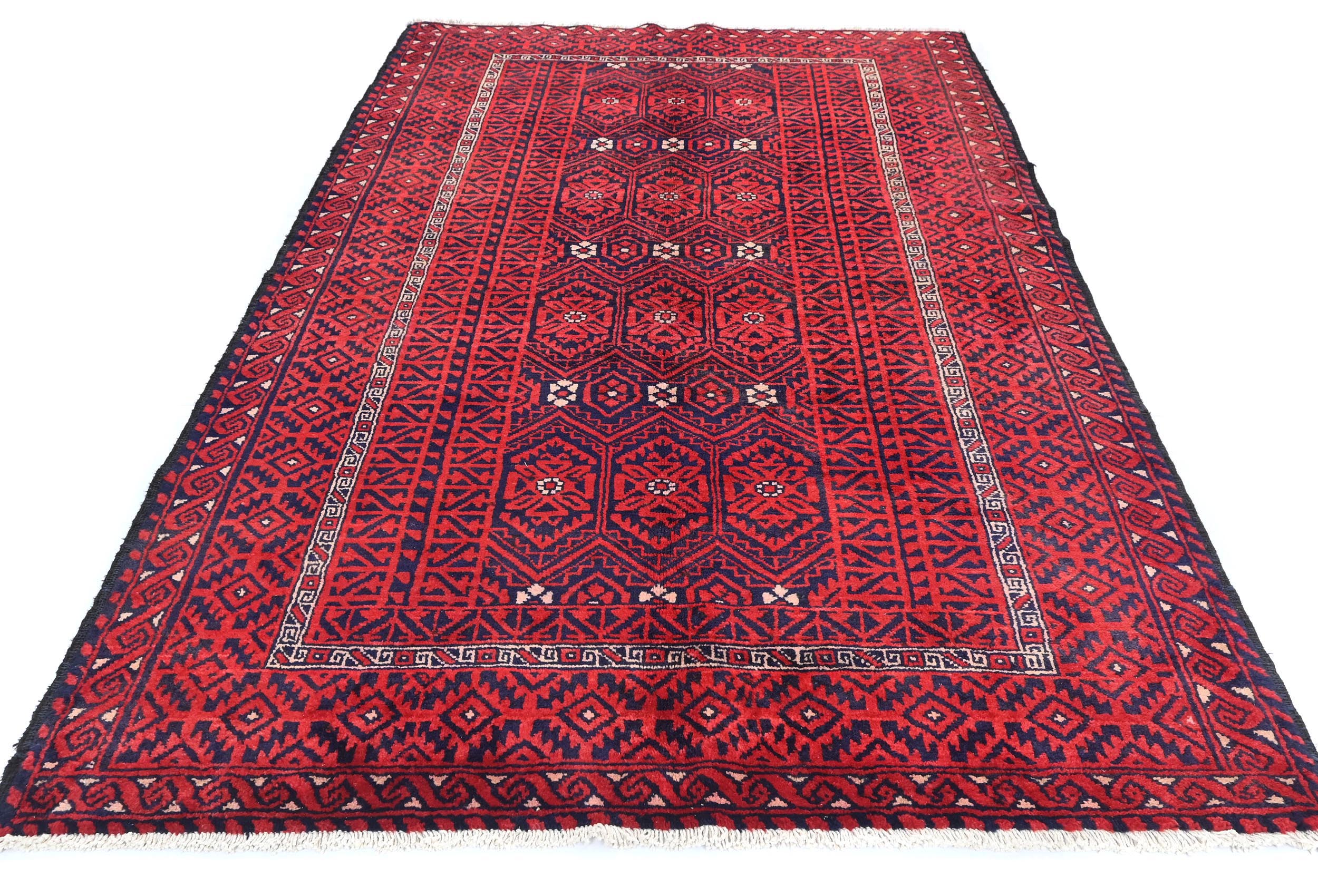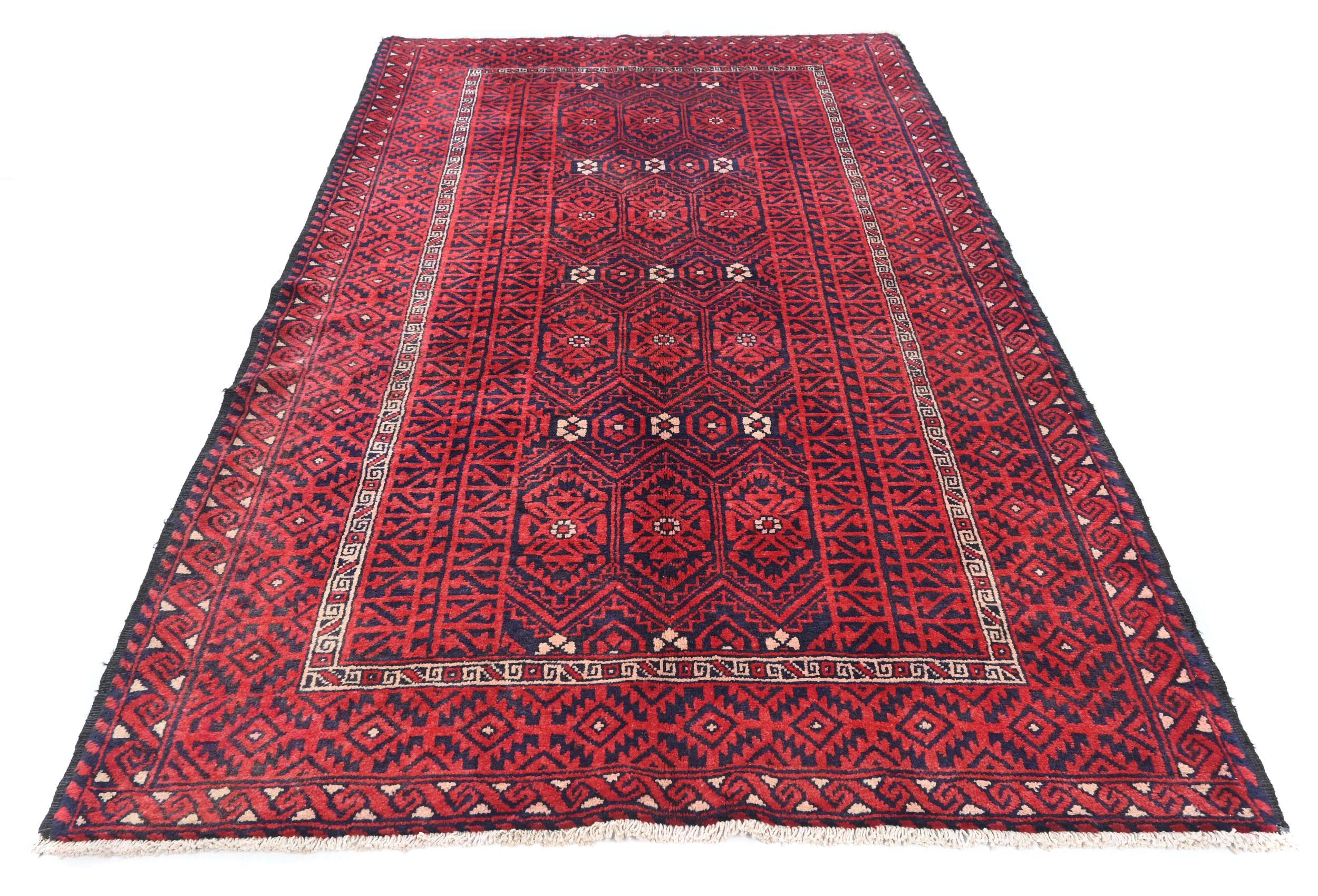 Vintage Red Tribal Geometric 5X9 Balouch Persian Rug