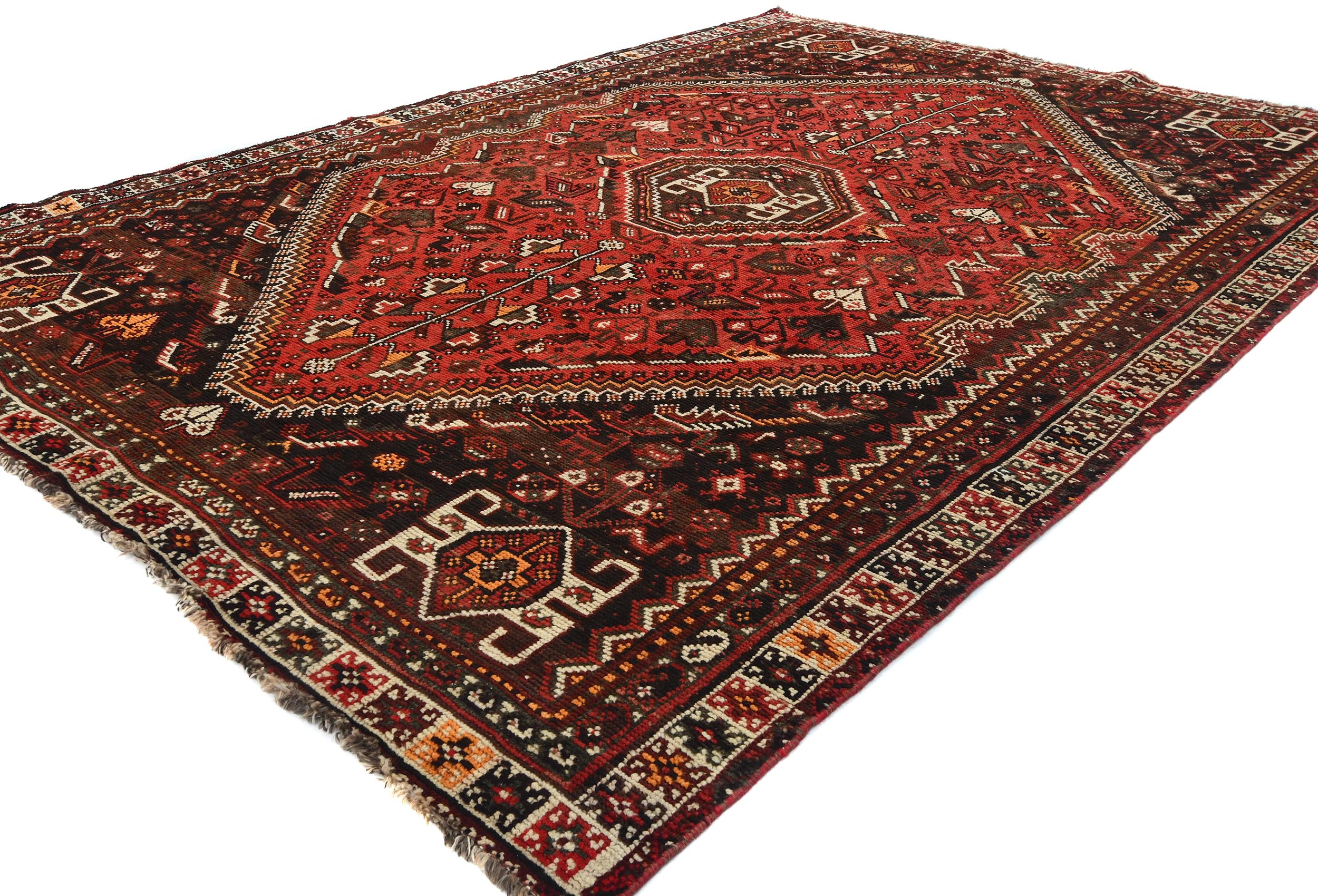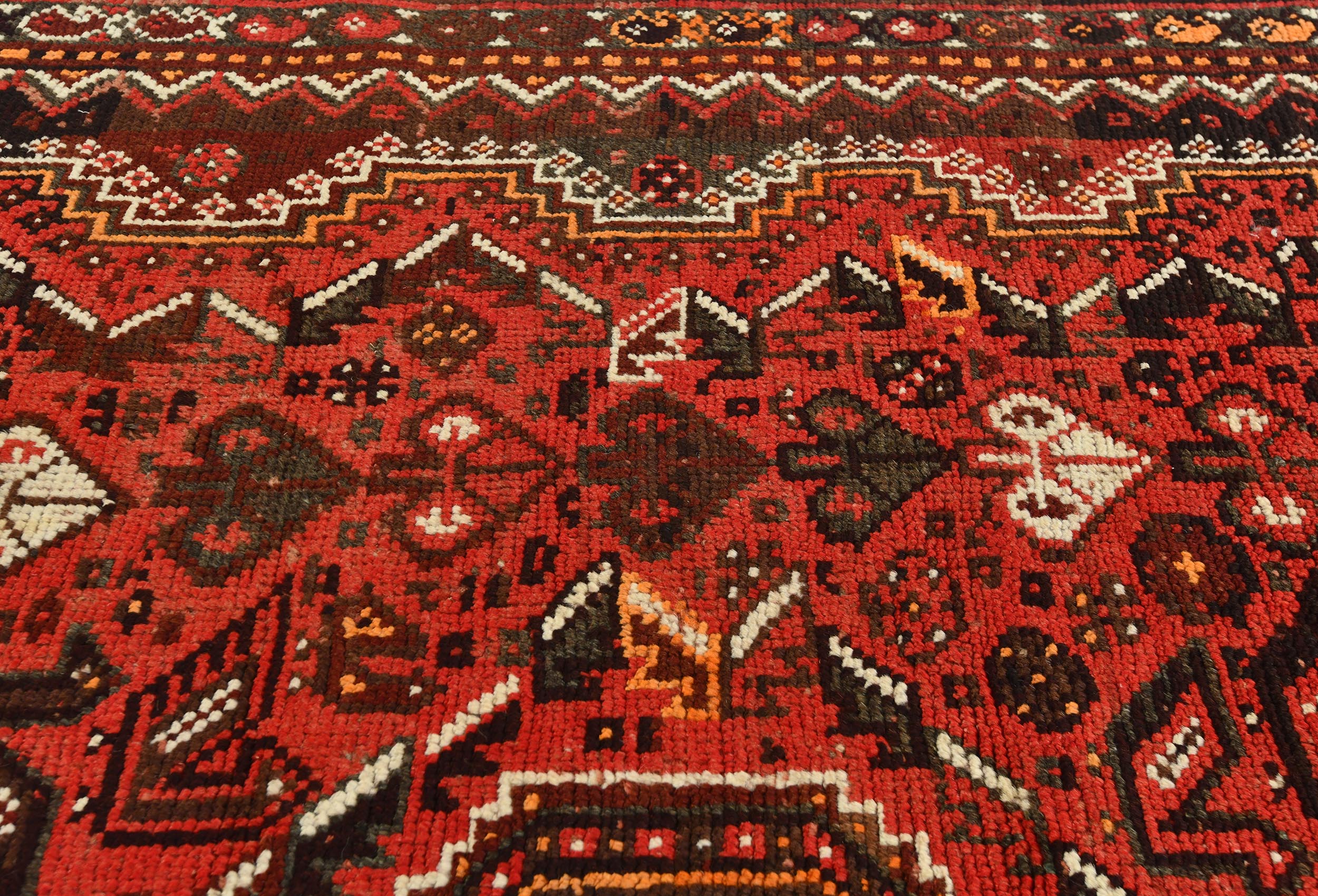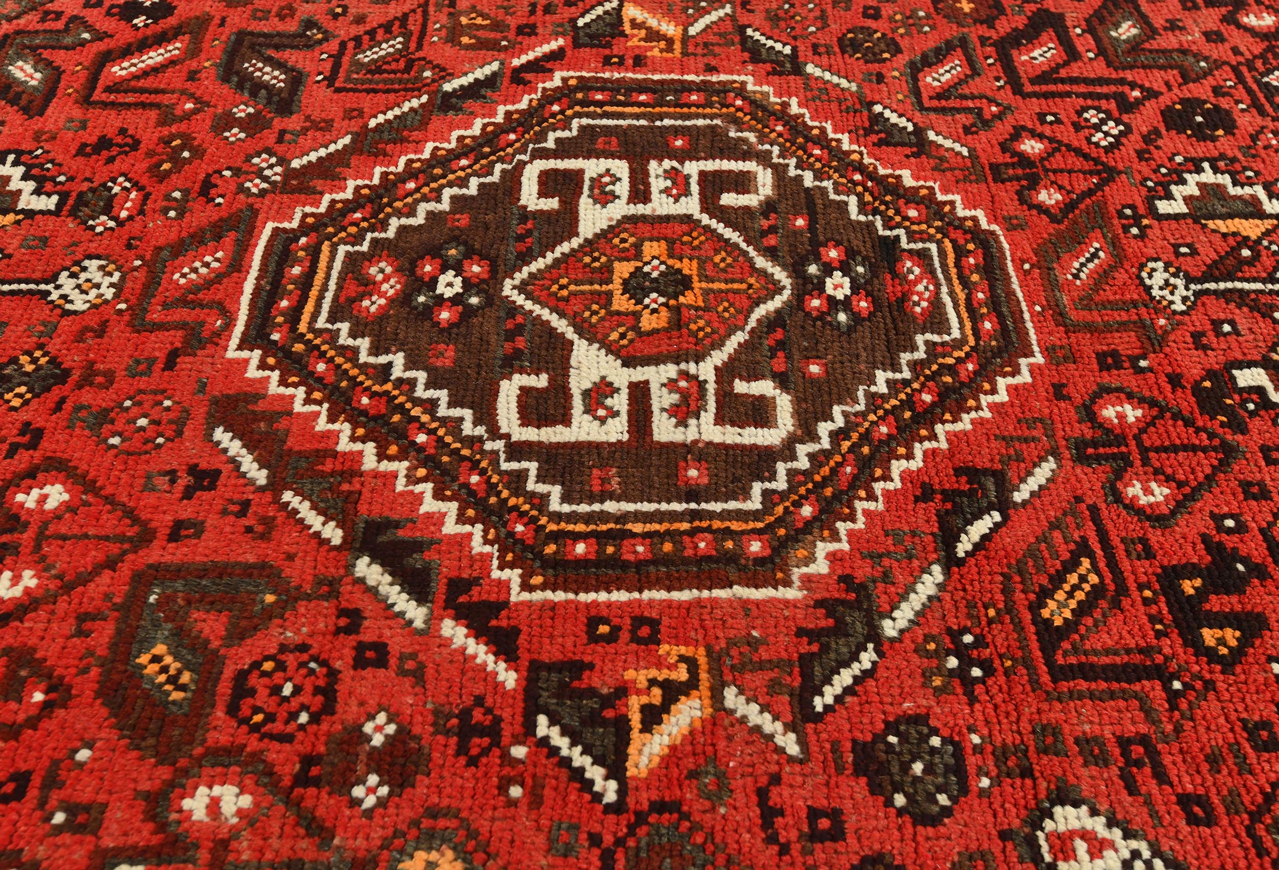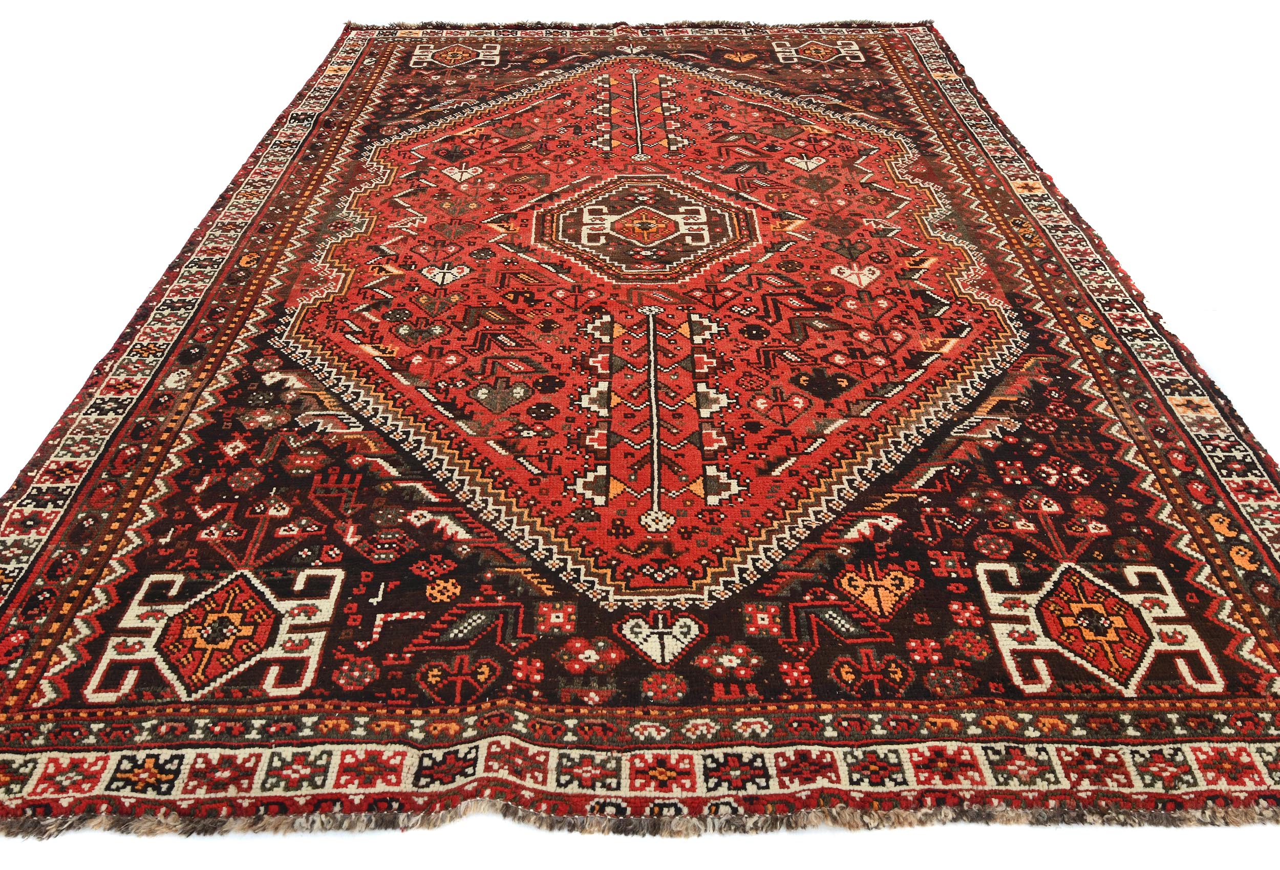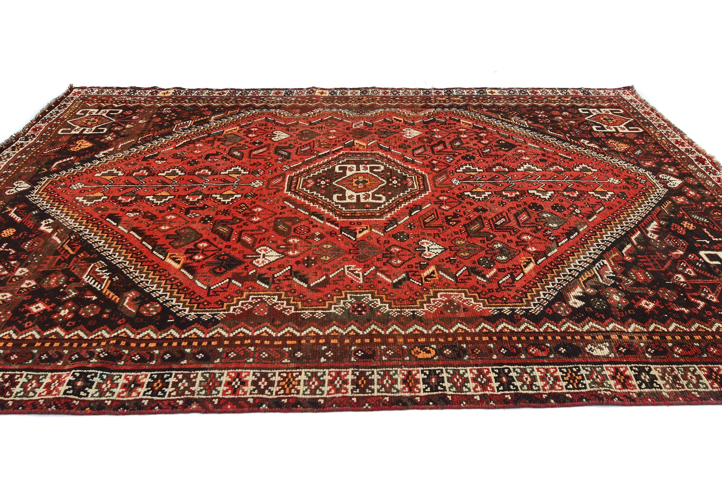 Vintage Red Tribal Geometric 7x10 Shiraz Persian Rug