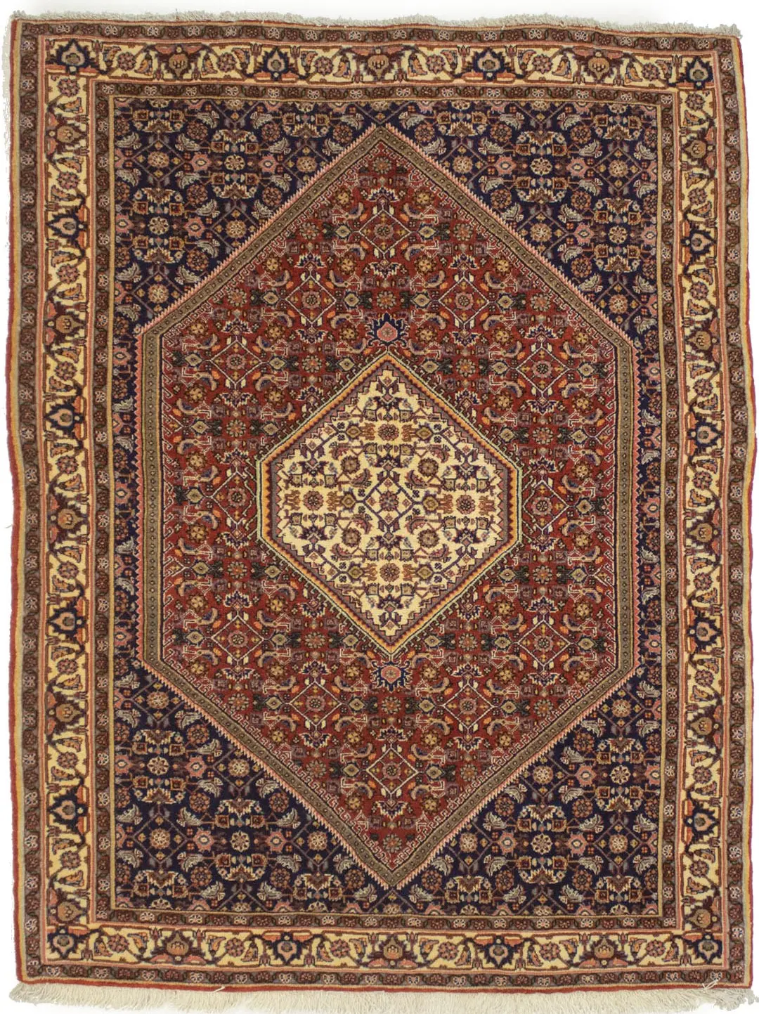 Vintage Rust Orange Floral 4X5 Bidjar Persian Rug