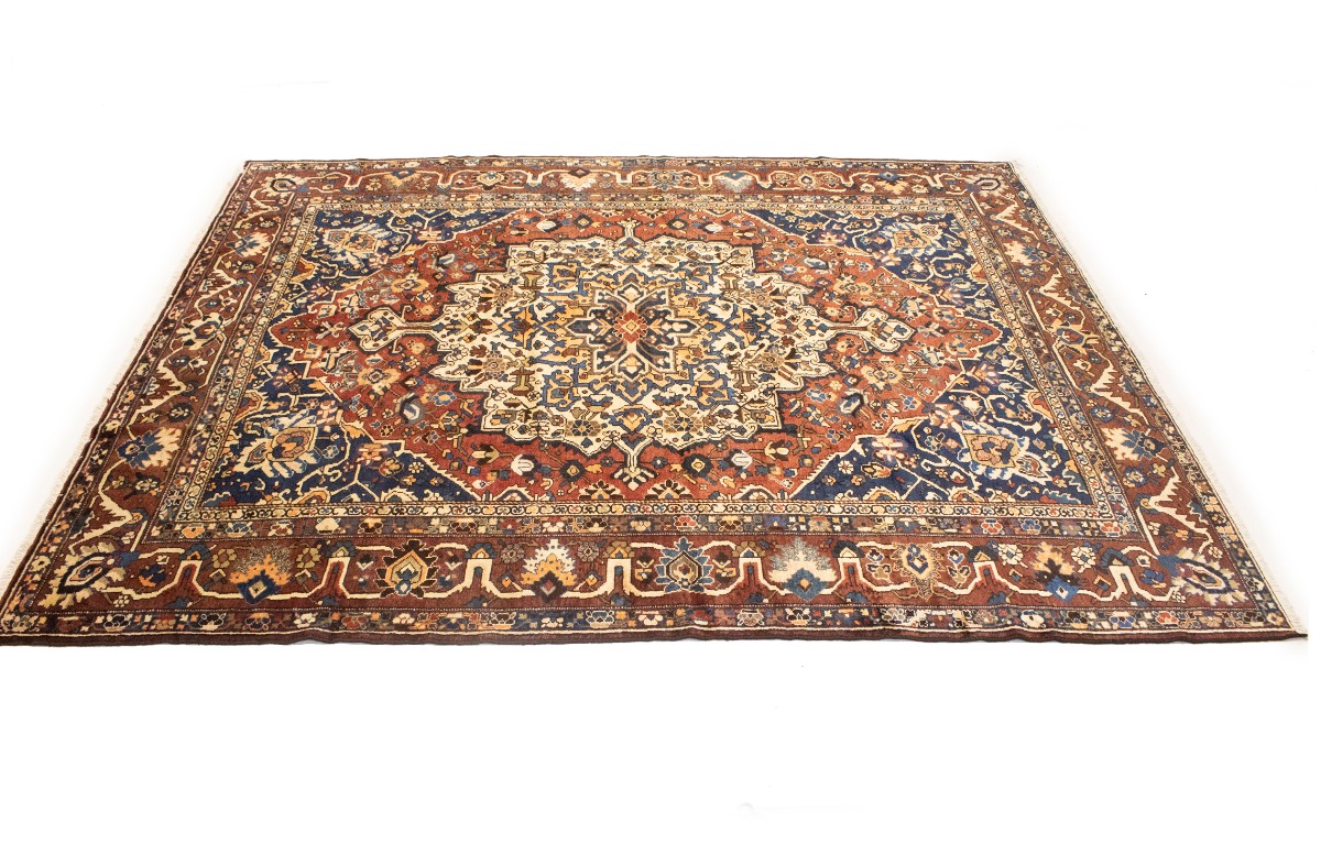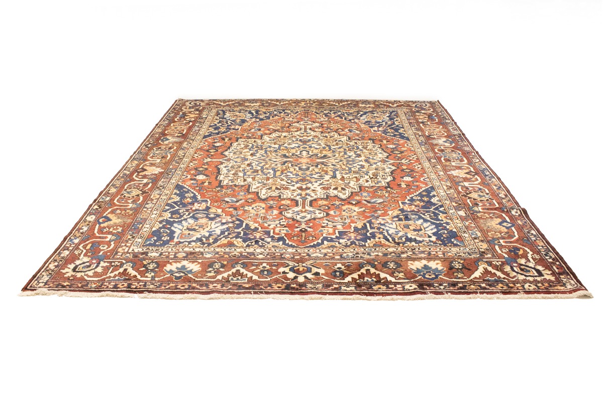 This authentic 10'6X13 red vintage Persian rug was finely knotted by the hands of weavers influenced by a variety of amazing artistic designs, to recreate the aged look of the exceptional piece with a richness of color and embellished floral background field. What set this traditional Oriental area rug from the others are the material and dye used (wool pile and cotton foundation), knot count, antique designs, fantastic grades, and its regional historical connection: it has deep roots, from the story of the people who produced it to the meaning of the symbols and colors displayed across its canvas that have been praised for centuries. This classic home décor carpet will be completely cozy and inviting that never will go out of style! Also, this Oriental rug would be among your most valuable treasures, it is a great investment that increase in value over time, and it will last a lifetime because was woven with high-quality, all-natural wool; it won’t rip, tear, or shed. Eco-friendly, opulent yet affordable; this Persian rug will give you an extra pop of character to help define your home environment with luxury and warmth that will capture the eyes and attention of your audience (homeowners, designers, decorators, family and friends). EB-6399