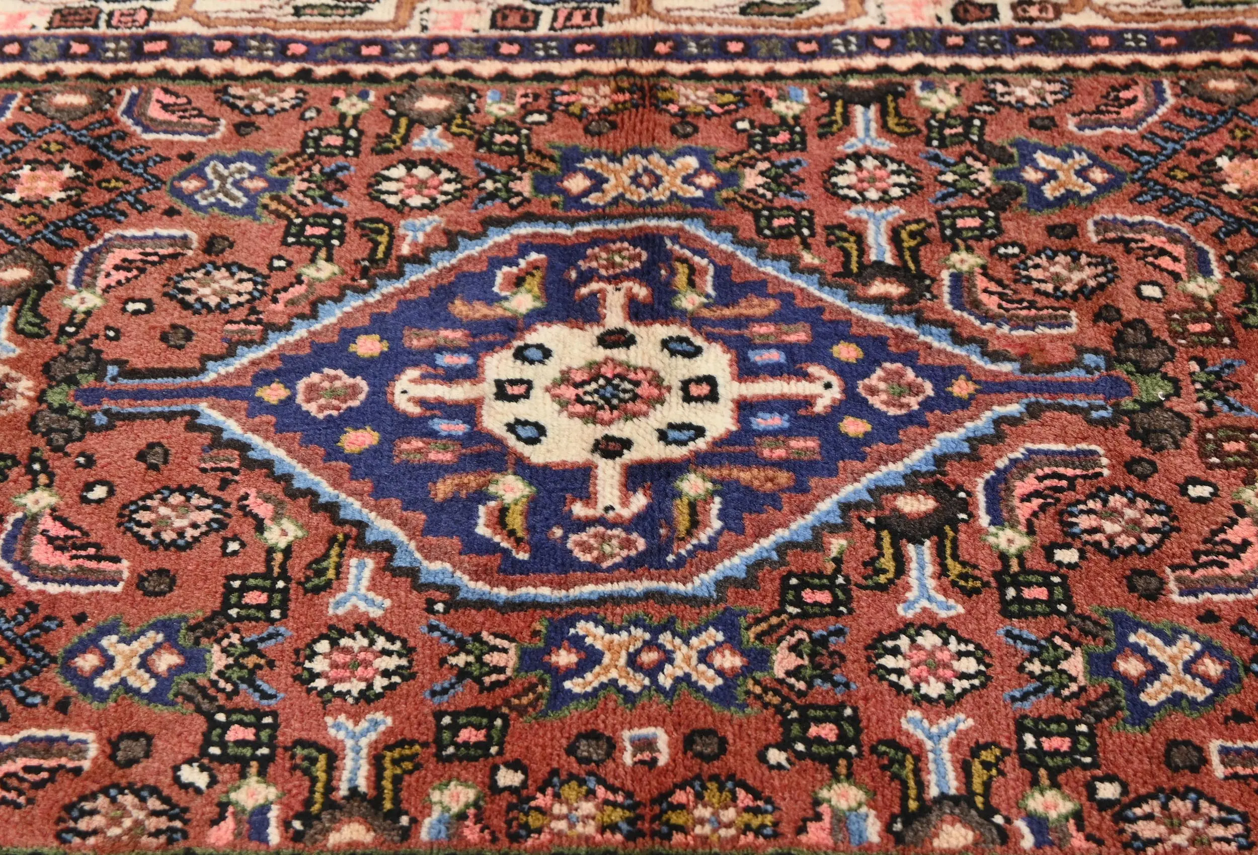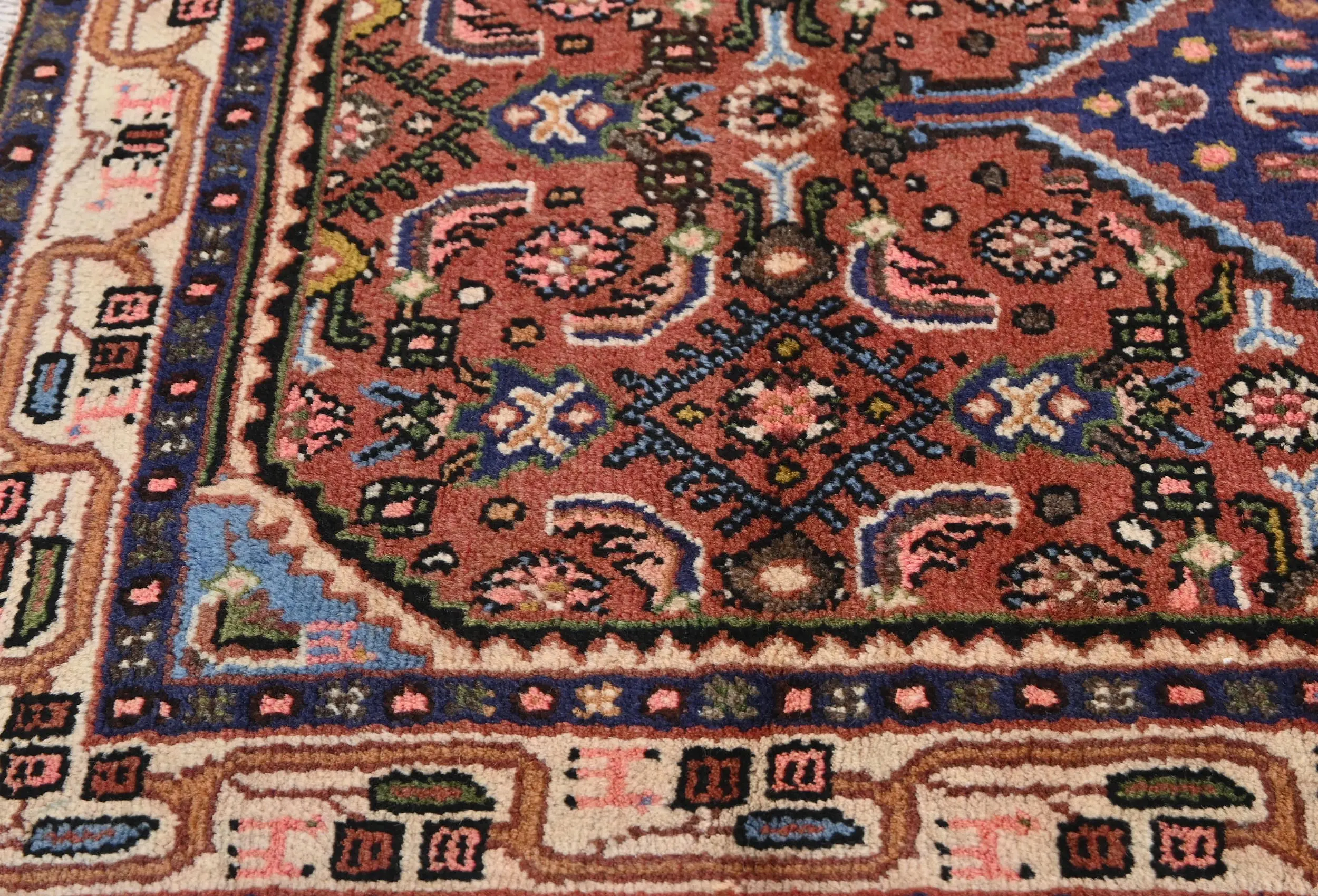 Handmade vintage 2'3X4'7 rusty red Persian rug made with vegetable dyes (fine wool pile and cotton foundation), exceptional knot count, and appealing ancient designs. This Oriental rug never will go out of style and would be among your most valuable treasures.