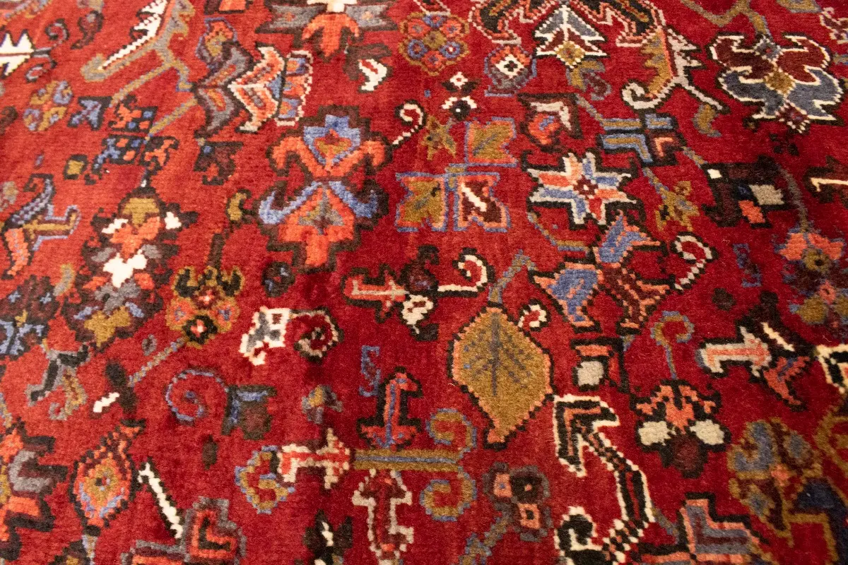 This original 11X17 red vintage Persian rug was well-constructed by the hands of master weavers motivated by a variety of stunning artistic designs, to recreate the aged look of the exceptional piece with a richness of color and developed decorative floral background field. What set this traditional Oriental area rug from the others are the material and dye used (wool pile and cotton foundation), knot count, ancient designs, fantastic grades, and its regional historical connection: it has deep roots, from the story of the people who produced it to the meaning of the symbols and colors displayed across its canvas that have been praised for centuries. This classic home décor carpet will be completely cozy and inviting that never will go out of style! Also, this Oriental rug would be among your most valuable treasures, it is a great investment that increase in value over time, and it will last a lifetime because was woven with high-quality, all-natural wool; it won’t rip, tear, or shed. Eco-friendly, opulent yet affordable; this Persian rug will give you an extra pop of character to help define your home environment with elegance and warmth that will capture the eyes and attention of your audience (homeowners, designers, decorators, family and friends). RT-2209