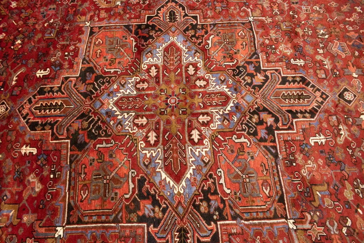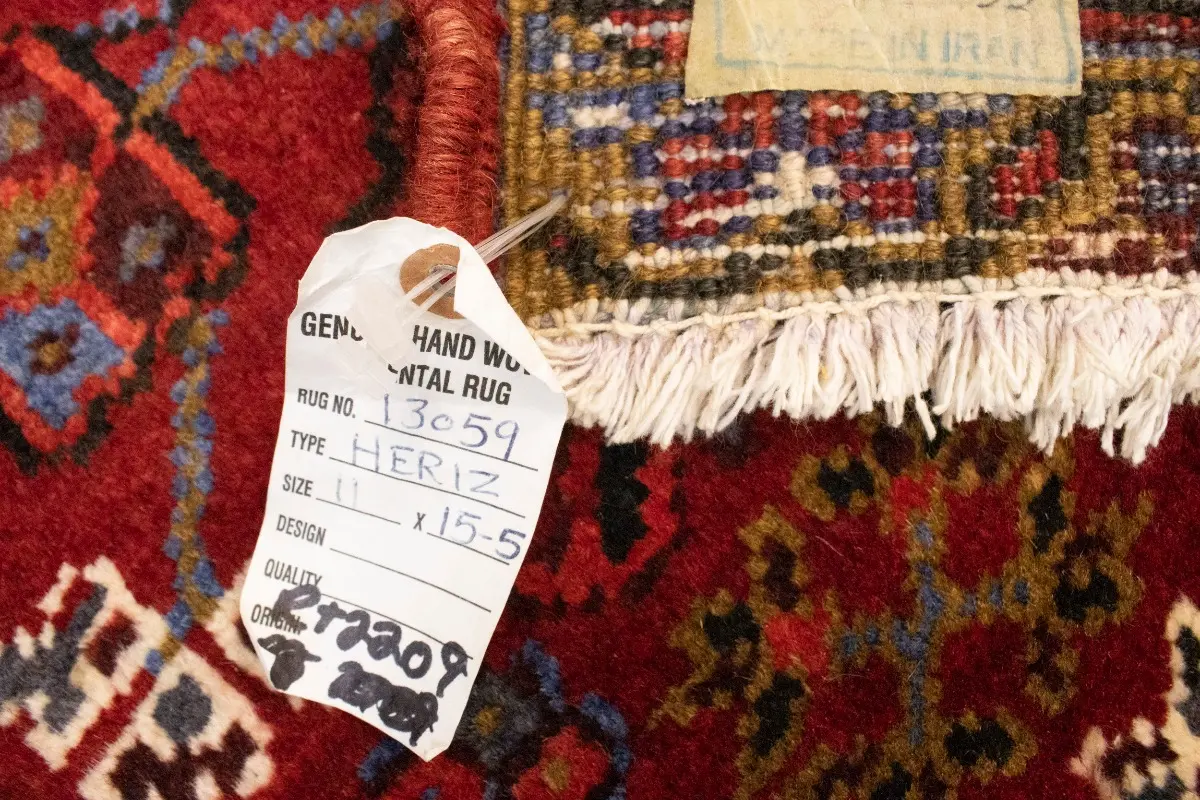 Vintage Rusty Red Geometric 11X15'5 Heriz Persian Rug