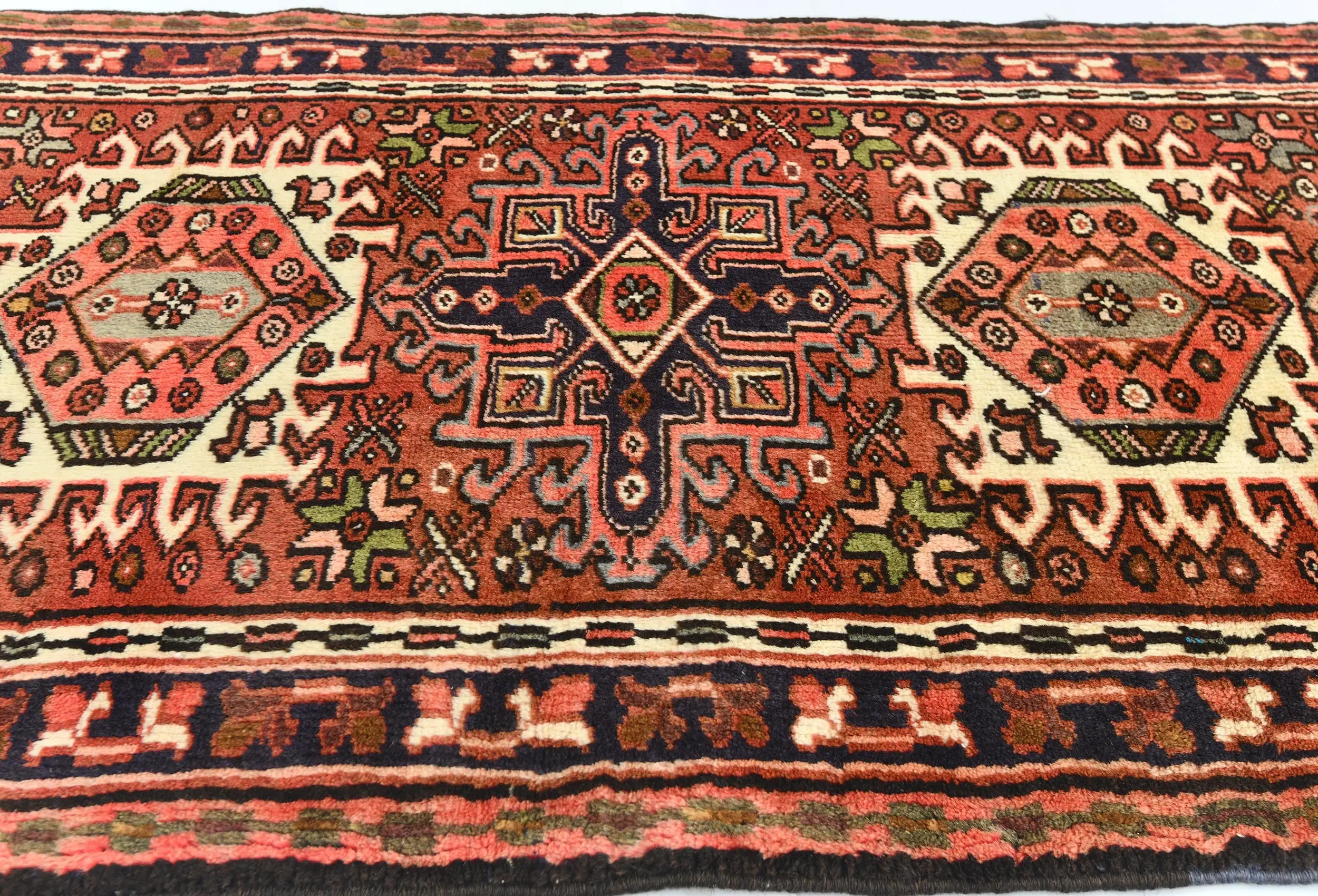 This original 2'5X9'5 Red vintage Persian runner was crafted by the hands of skilled weavers enthused by a variety of lovely artistic designs, to recreate the aged look of the unique piece with a richness of color and beautifully elaborated background field. What set this geometric Oriental area runner from the others are the material and dye used (wool pile and cotton foundation), knot count, ancient designs, fantastic grades, and its regional historical connection: it has deep roots, from the story of the people who produced it to the meaning of the symbols and colors displayed across its canvas that have been praised for centuries. This home décor carpet will be completely cozy and inviting that never will go out of style! Also, this Oriental runner would be among your most valuable treasures, it is a great investment that increase in value over time, and it will last for generations because was woven with high-quality, all-natural wool; it won’t rip, tear, or shed. Environmentally friendly, opulent yet affordable; this Persian rug will give you a thorough amount of character to help define your living space with sophistication and warmth that will capture the eyes and attention of your audience (homeowners, designers, decorators, family and friends). RT-6989