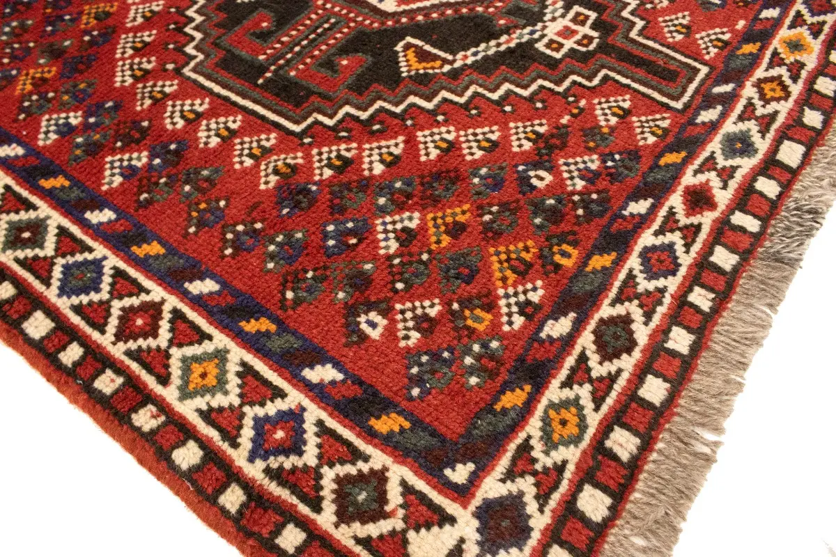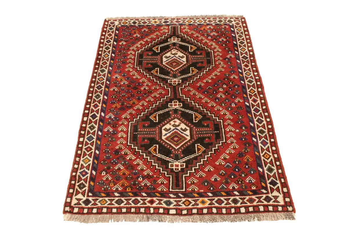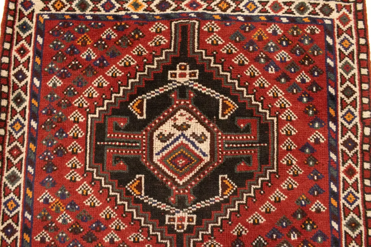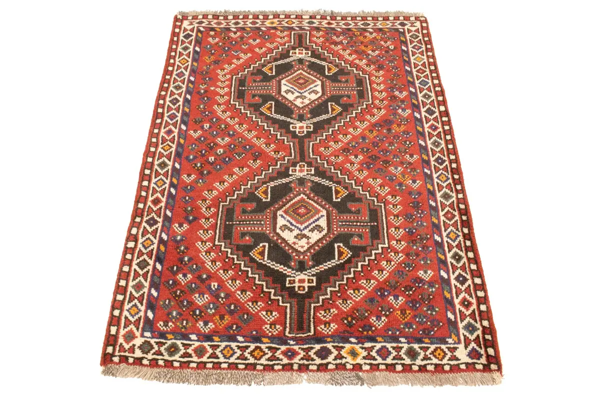 Vintage Rusty Red Geometric 3'6X4'9 Shiraz Persian Rug