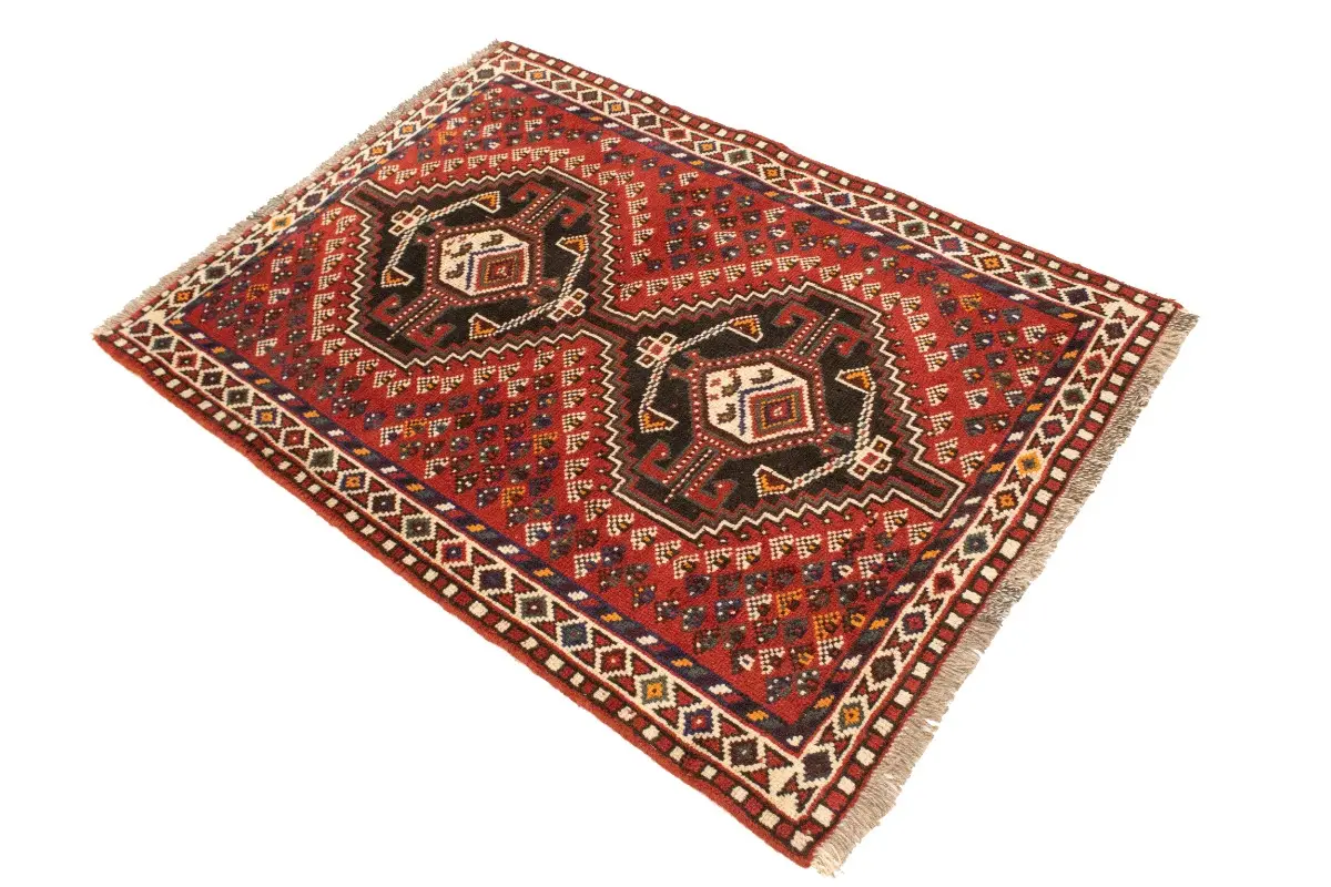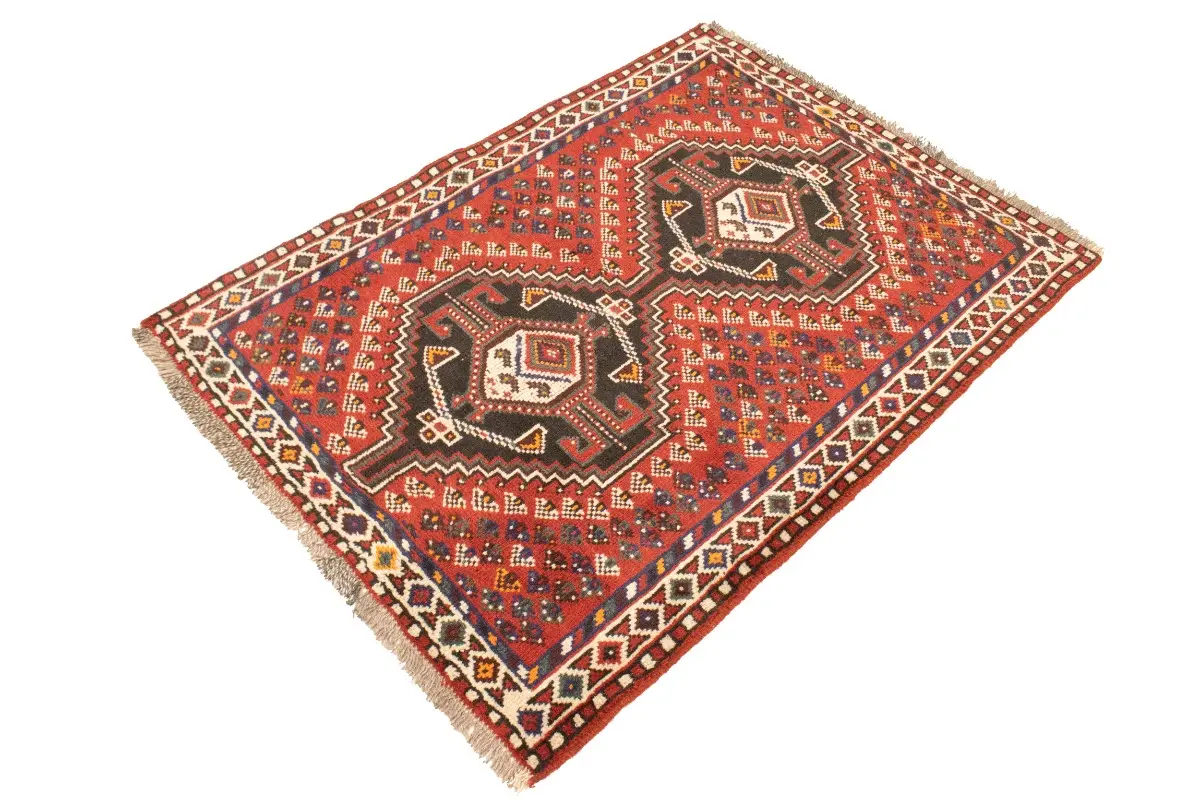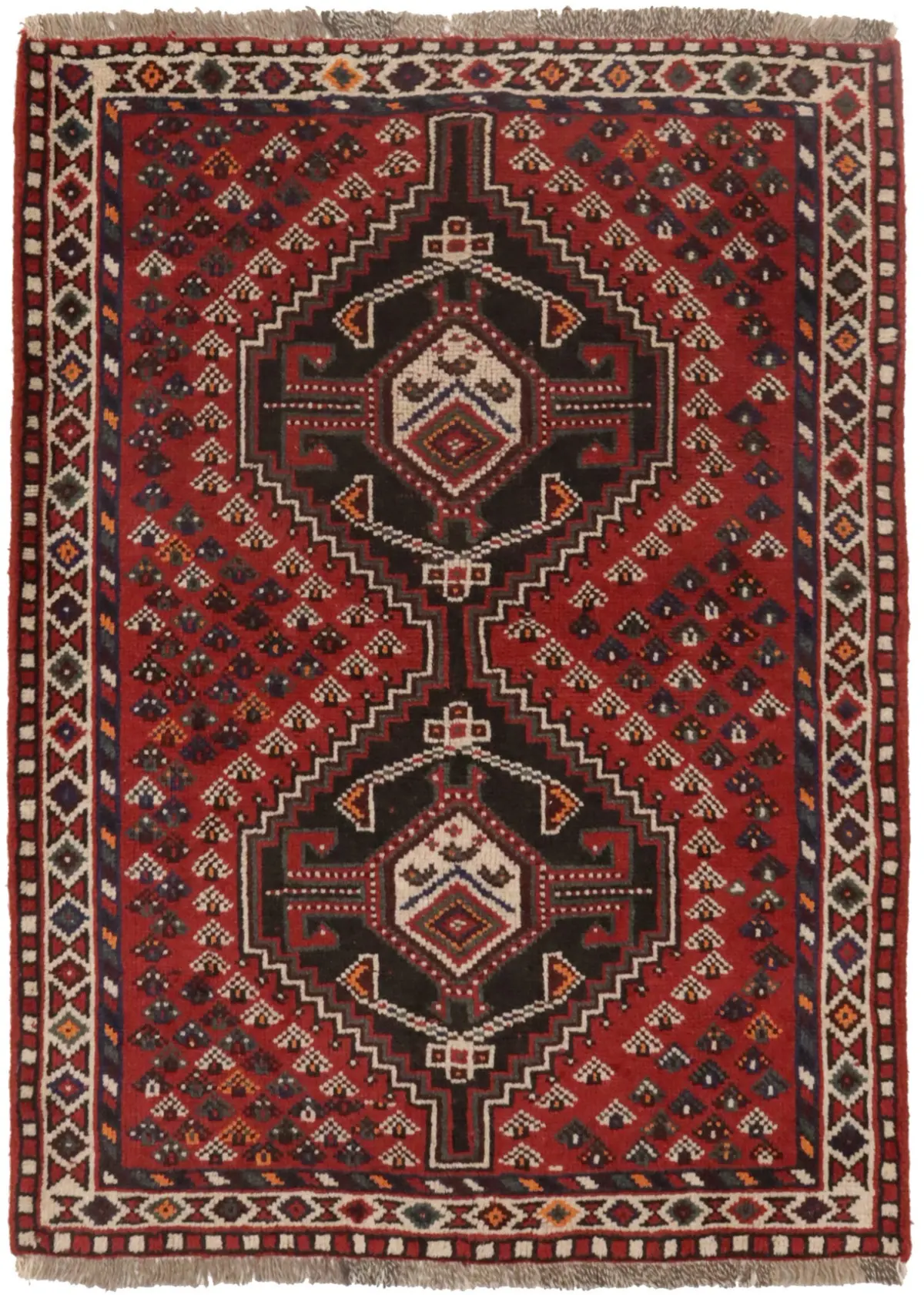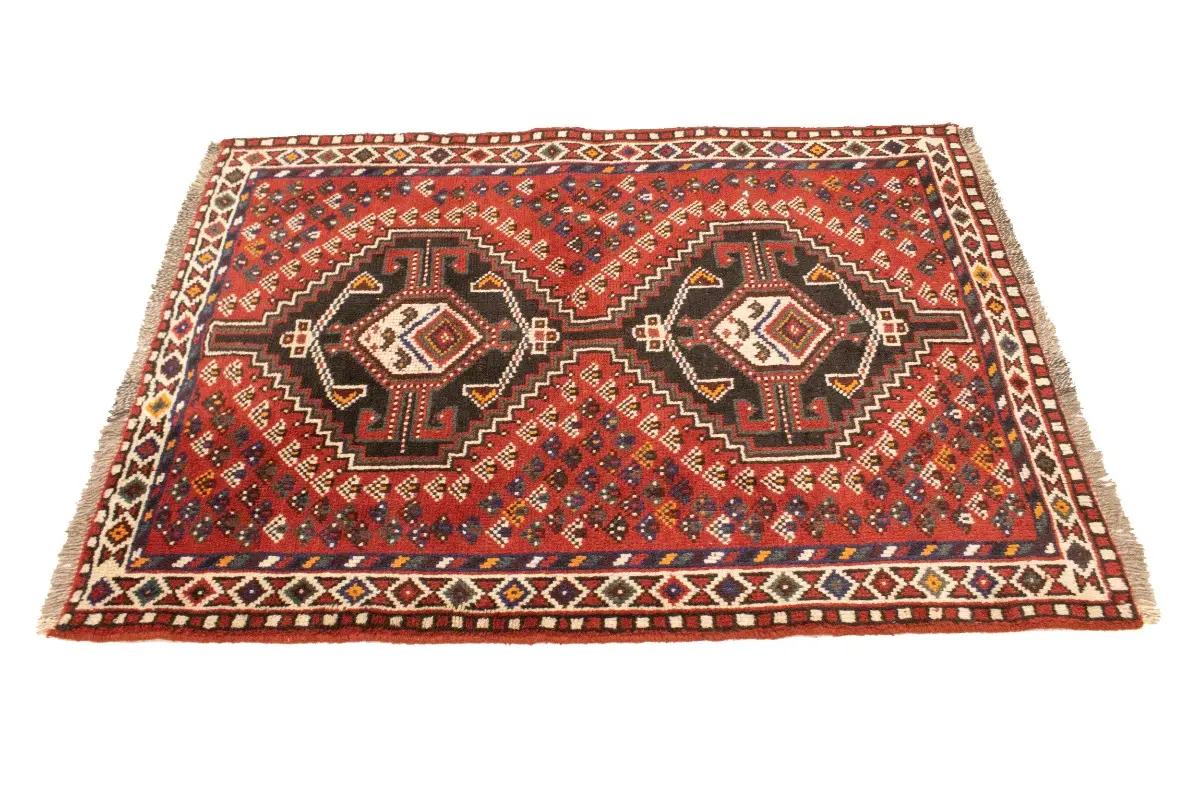 Vintage Rusty Red Geometric 3'6X4'9 Shiraz Persian Rug