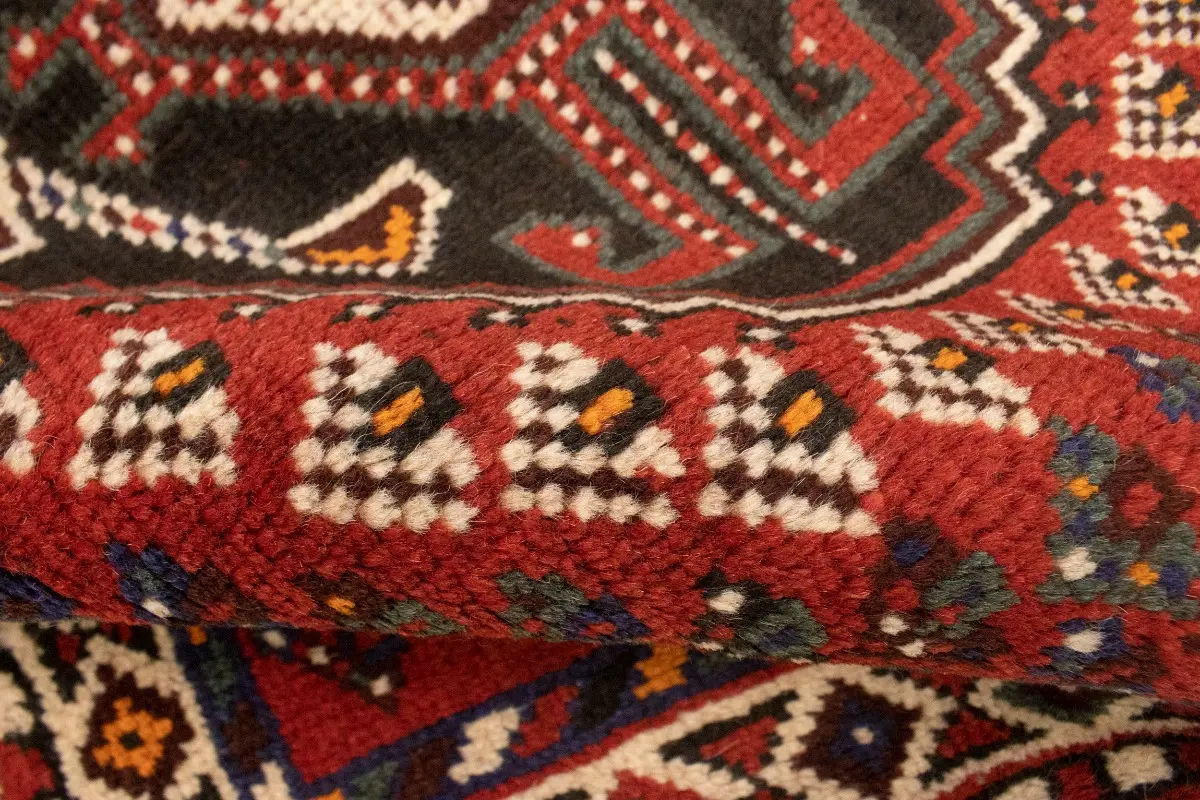 This authentic 3'6X4'9 red vintage Persian rug was masterly knotted by the hands of weavers inspired by a variety of wonderful artistic designs, to recreate the aged look of the original piece with a richness of color and intricate patterned background field. What set this tribal Oriental area rug from the others are the material and dye used (wool pile and cotton foundation), knot count, antique designs, fantastic grades, and its regional historical connection: it has deep roots, from the story of the people who produced it to the meaning of the symbols and colors displayed across its canvas that have been praised for centuries. This home décor carpet will be completely cozy and inviting that never will go out of style! Also, this Oriental rug would be among your most valuable treasures, it is a great investment that accrues value over time, and it will last for generations because was woven with high-quality, all-natural wool; it won’t rip, tear, or shed. Environmentally friendly, opulent yet affordable; this Persian rug will give you a thorough amount of character to help define your living space with luxury and warmth that will capture the eyes and attention of your audience (homeowners, designers, decorators, family and friends). RT-2131