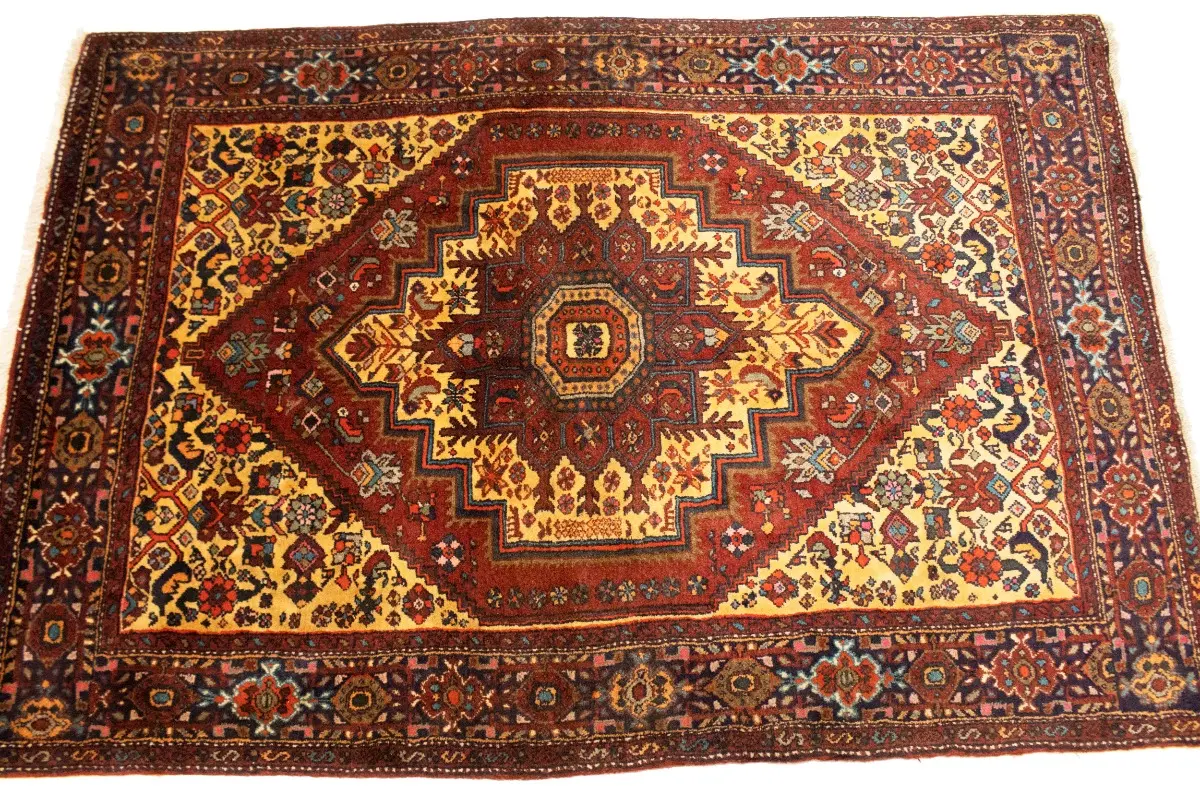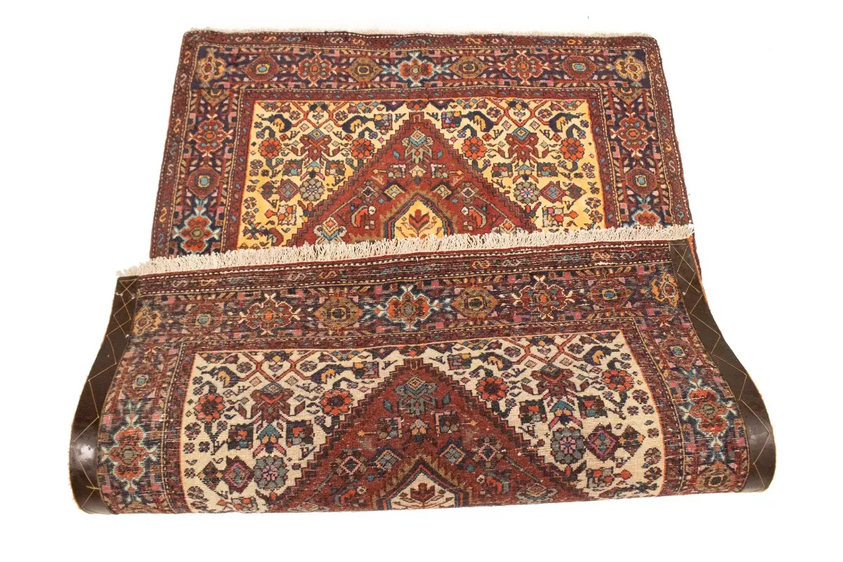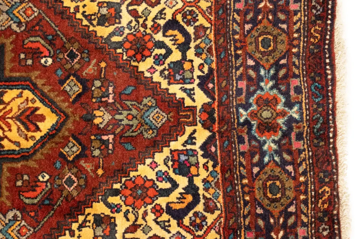 This authentic 3X5 red vintage Persian rug was masterly knotted by the hands of weavers inspired by a variety of wonderful artistic designs, to recreate the aged look of the original piece with a richness of color and intricate patterned floral background field. What set this traditional Oriental area rug from the others are the material and dye used (wool pile and cotton foundation), knot count, antique designs, fantastic grades, and its regional historical connection: it has deep roots, from the story of the people who produced it to the meaning of the symbols and colors displayed across its canvas that have been praised for centuries. This classic home décor carpet will be completely cozy and inviting that never will go out of style! Also, this Oriental rug would be among your most valuable treasures, it is a great investment that accrues value over time, and it will last for generations because was woven with high-quality, all-natural wool; it won’t rip, tear, or shed. Environmentally friendly, opulent yet affordable; this Persian rug will give you a thorough amount of character to help define your living space with luxury and warmth that will capture the eyes and attention of your audience (homeowners, designers, decorators, family and friends). RT-1956