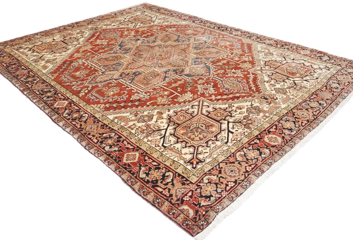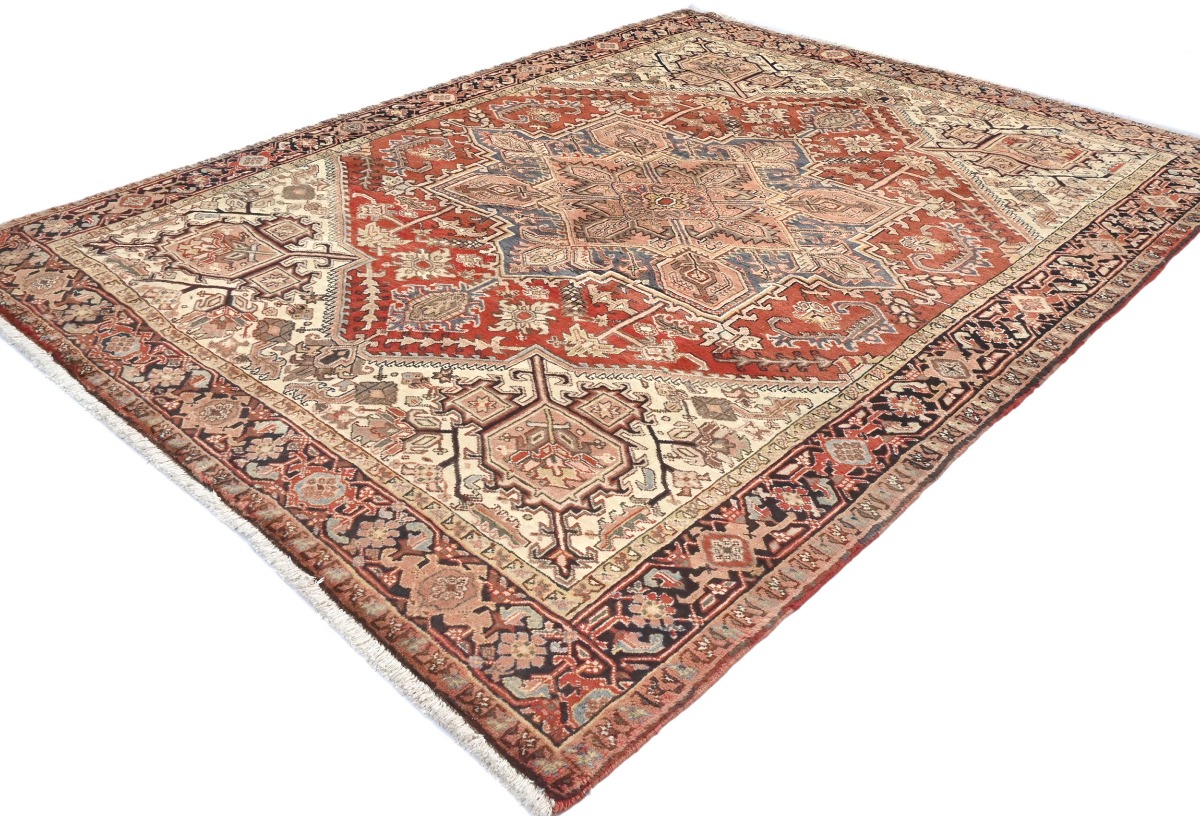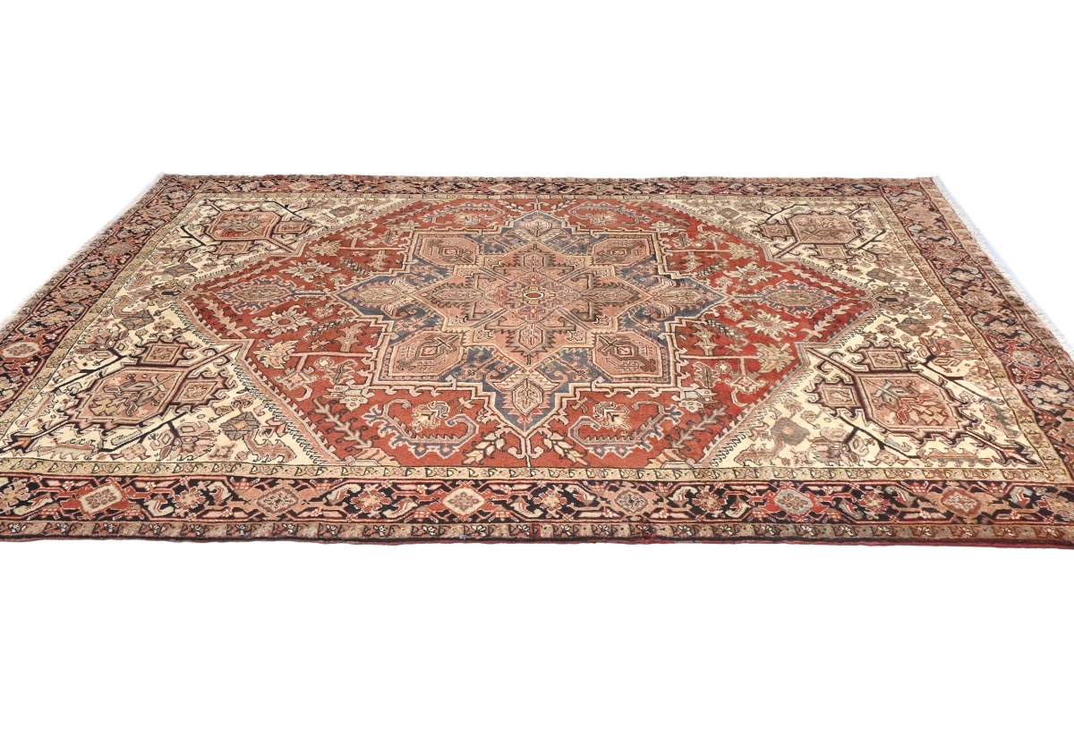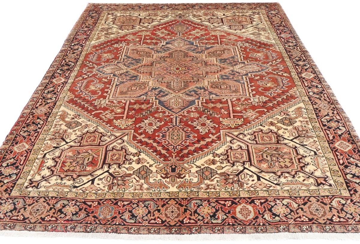 Vintage Rusty Red Geometric 7X9 Heriz Persian Rug