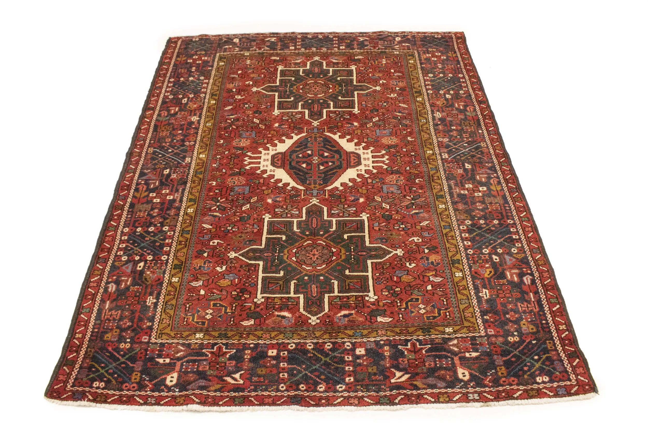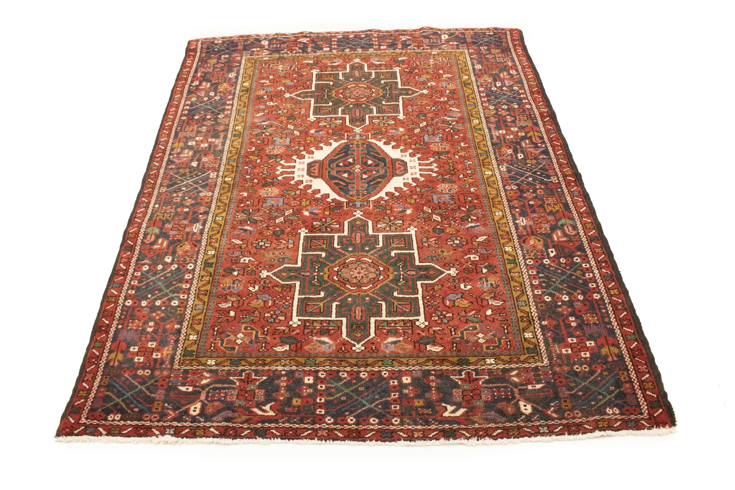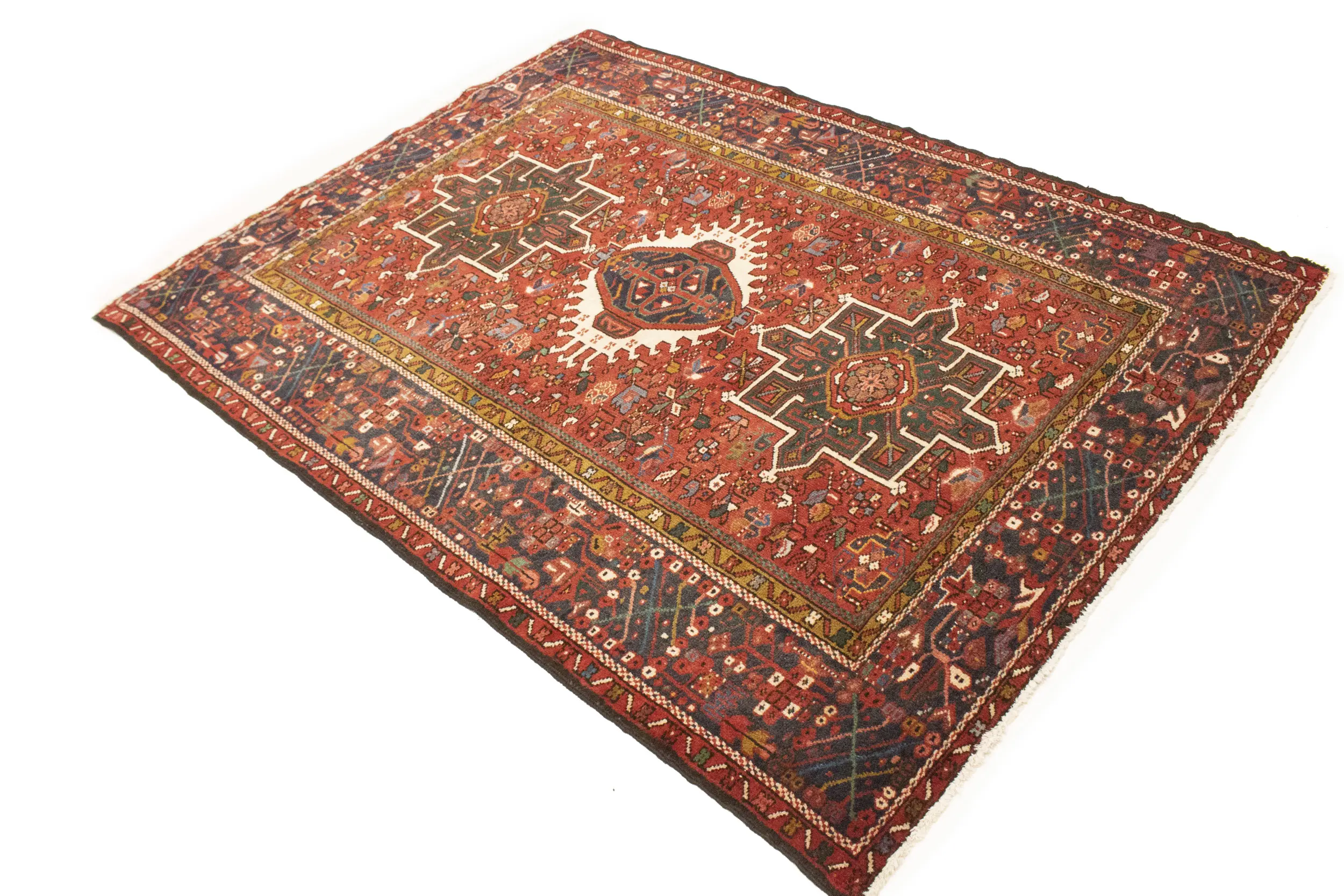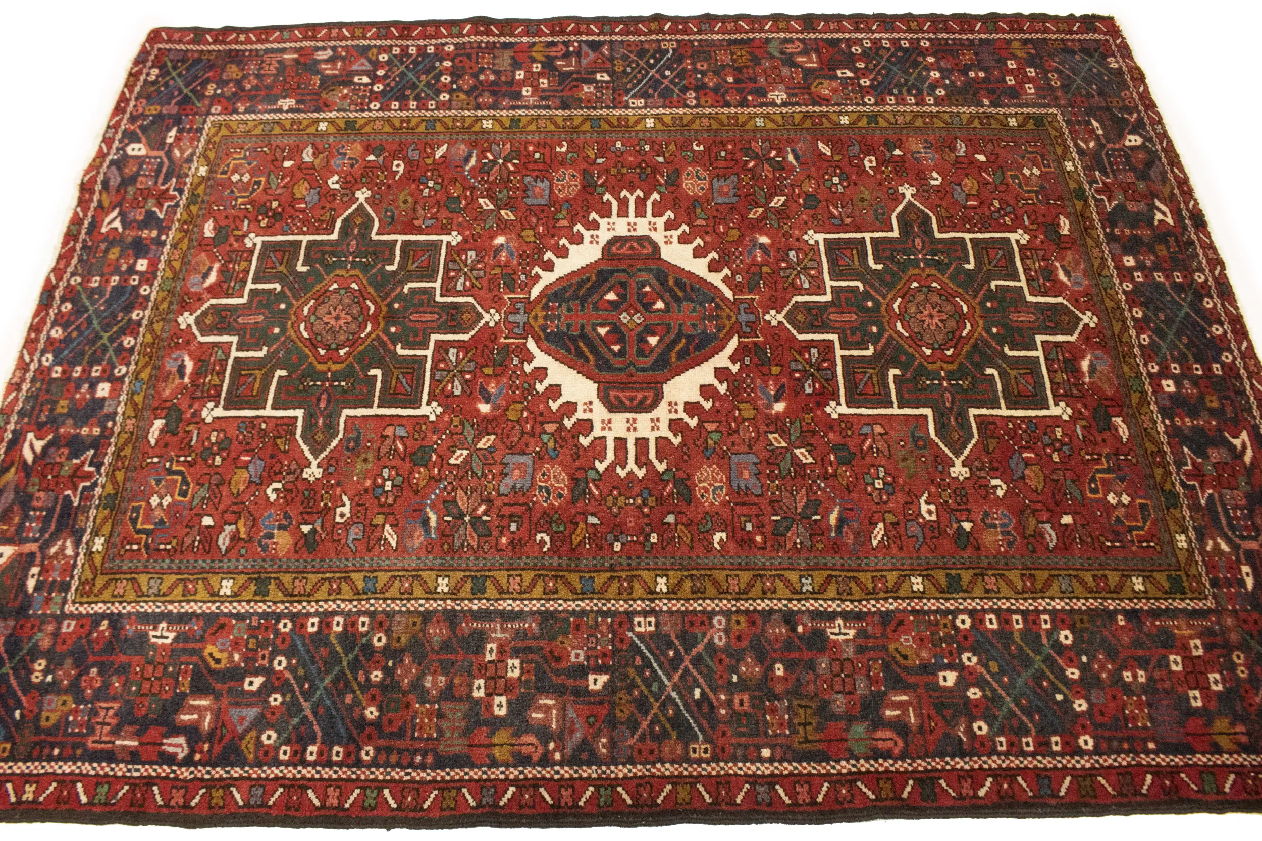 Vintage Rusty Red Tribal 5X6'6 Karajeh Persian Rug