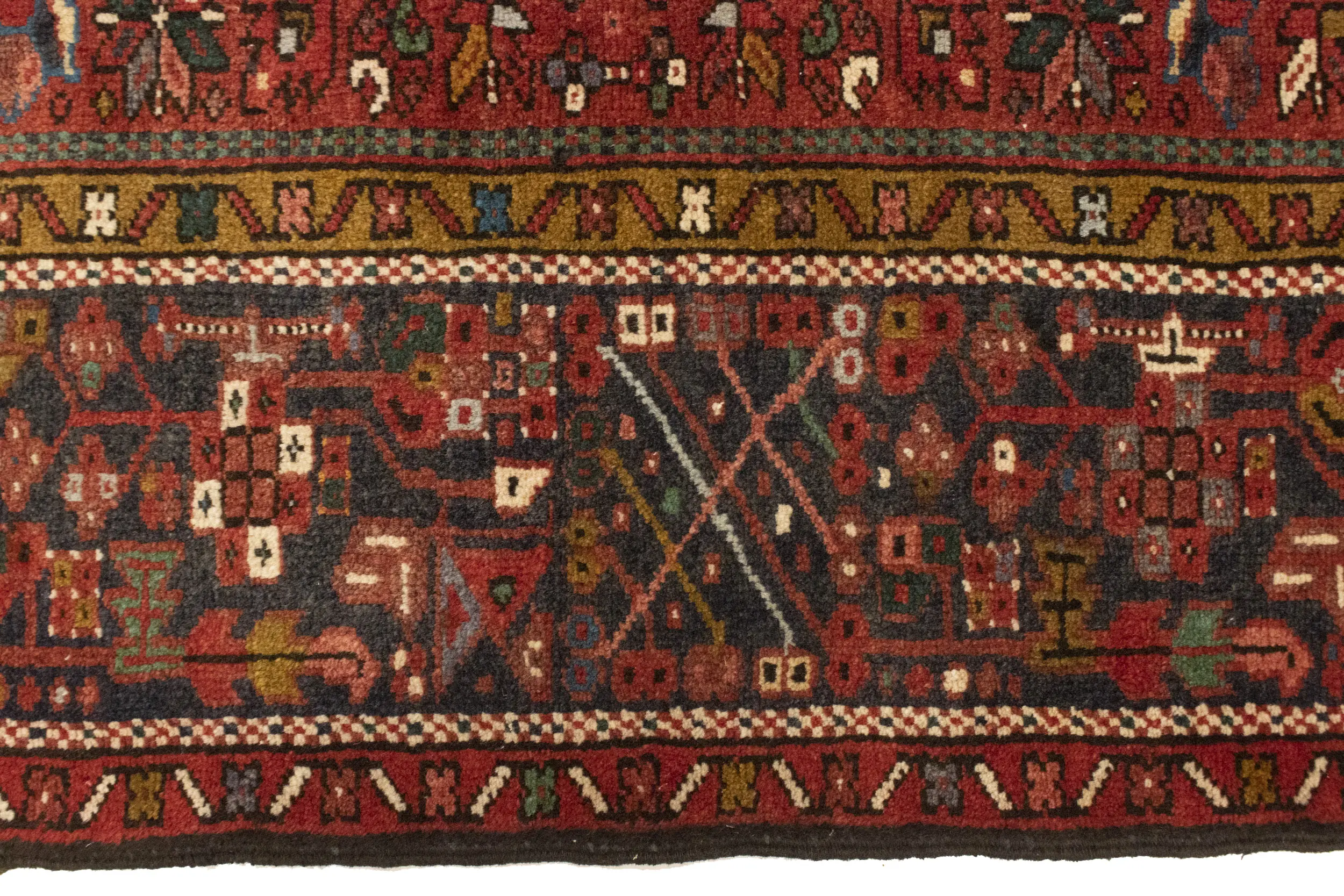 This genuine 5X6'6 rusty red vintage Persian rug was made by the hands of talented weavers influenced by a variety of gorgeous symmetrical artistic designs, to recreate the aged look of the unique piece with a richness of color and very balanced background field. What set this tribal Oriental area rug from the others are the material and dye used (wool pile and cotton foundation), knot count, antique designs, fantastic grades, and its regional historical connection: it has deep roots, from the story of the people who produced it to the meaning of the symbols and colors displayed across its canvas that have been praised for centuries. This home décor carpet will be completely cozy and inviting that never will go out of style!