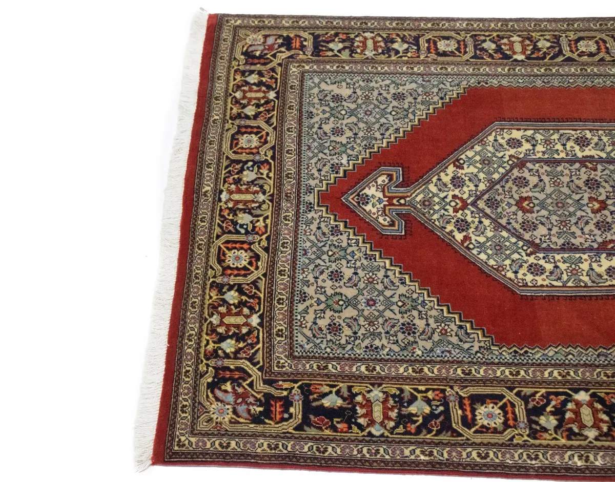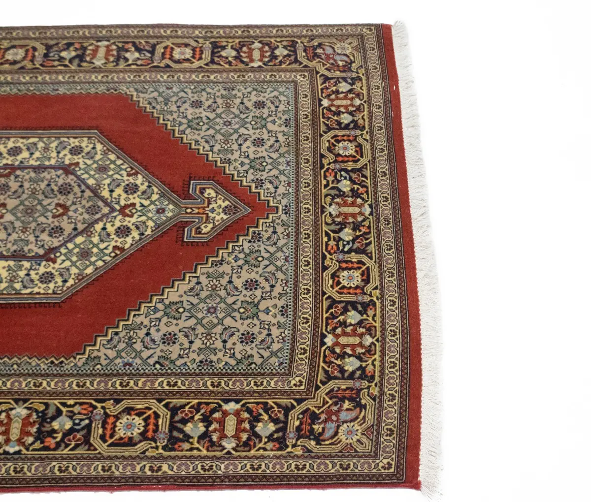 This original 3X5 scarlet red vintage Persian rug was made by the hands of gifted weavers inspired by a variety of spectacular artistic designs, to recreate the aged look of the original piece with a richness of color and ornately patterned floral background field. What set this traditional Oriental area rug from the others are the material and dye used (wool pile and cotton foundation), knot count, ancient designs, fantastic grades, and its regional historical connection: it has deep roots, from the story of the people who produced it to the meaning of the symbols and colors displayed across its canvas that have been praised for centuries. This classic home decor carpet will be completely cozy and inviting that never will go out of style! Also, this Oriental rug would be among your most valuable treasures, it is a great investment that accrues value over time, and it will last for generations because was woven with high-quality, all-natural wool; it won’t rip, tear, or shed. Environmentally friendly, opulent yet affordable; this Persian rug will give you a thorough amount of character to help define your living space with elegance and warmth that will capture the eyes and attention of your audience (homeowners, designers, decorators, family and friends). RT-9833