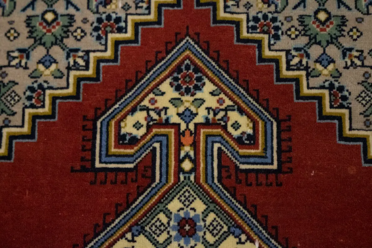 Vintage Scarlet Red Classic 3X5 Ghom Persian Rug