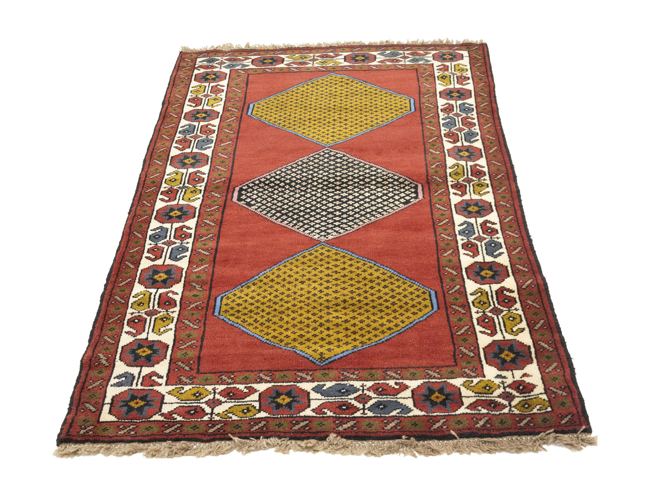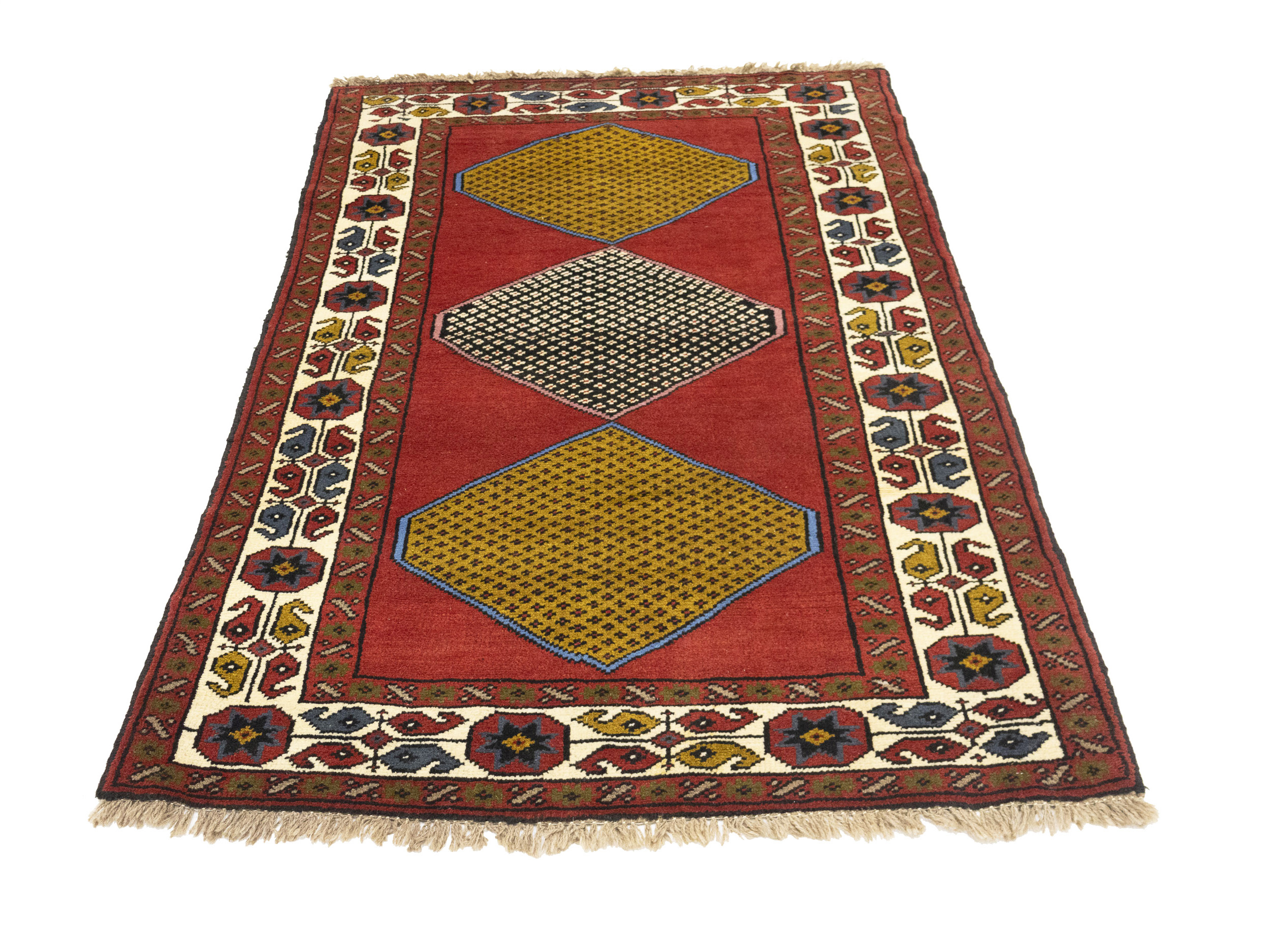 This authentic 4X6 scarlet red vintage rug was finely knotted by the hands of weavers influenced by a variety of amazing artistic designs, to recreate the aged look of the exceptional piece with a richness of color and embellished background field. What set this tribal Oriental area rug from the others are the material and dye used (wool pile and cotton foundation), knot count, antique designs, fantastic grades, and its regional historical connection: it has deep roots, from the story of the people who produced it to the meaning of the symbols and colors displayed across its canvas that have been praised for centuries. This home décor carpet will be completely cozy and inviting that never will go out of style!