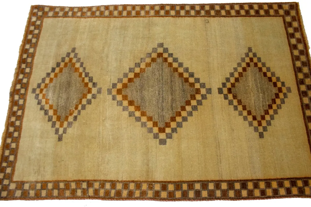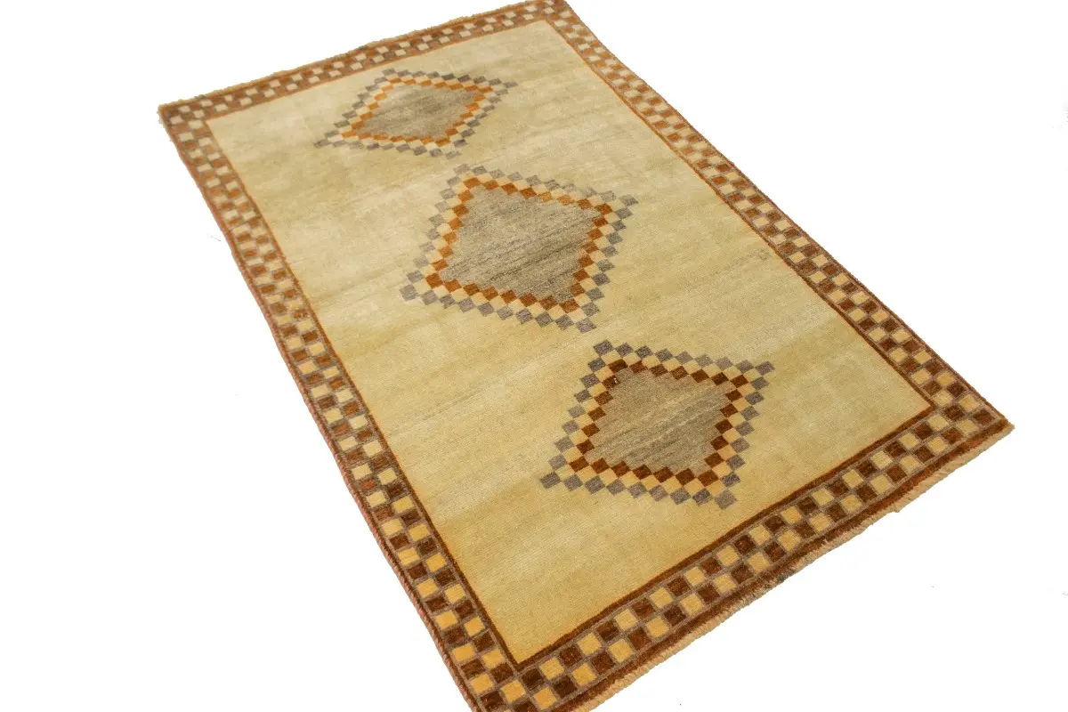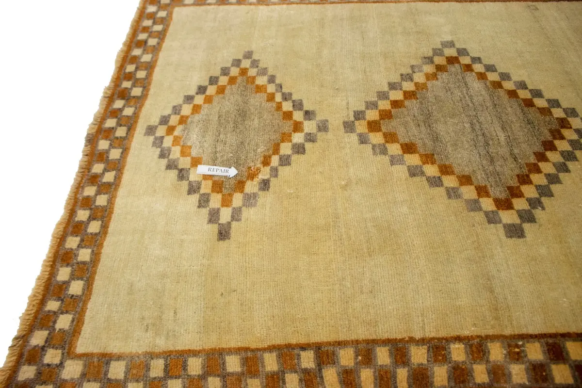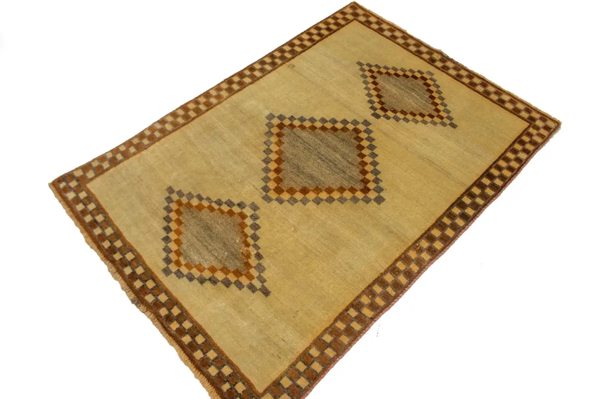 Vintage Tribal Beige 3'6X5'3 Gabbeh Lori Persian Rug