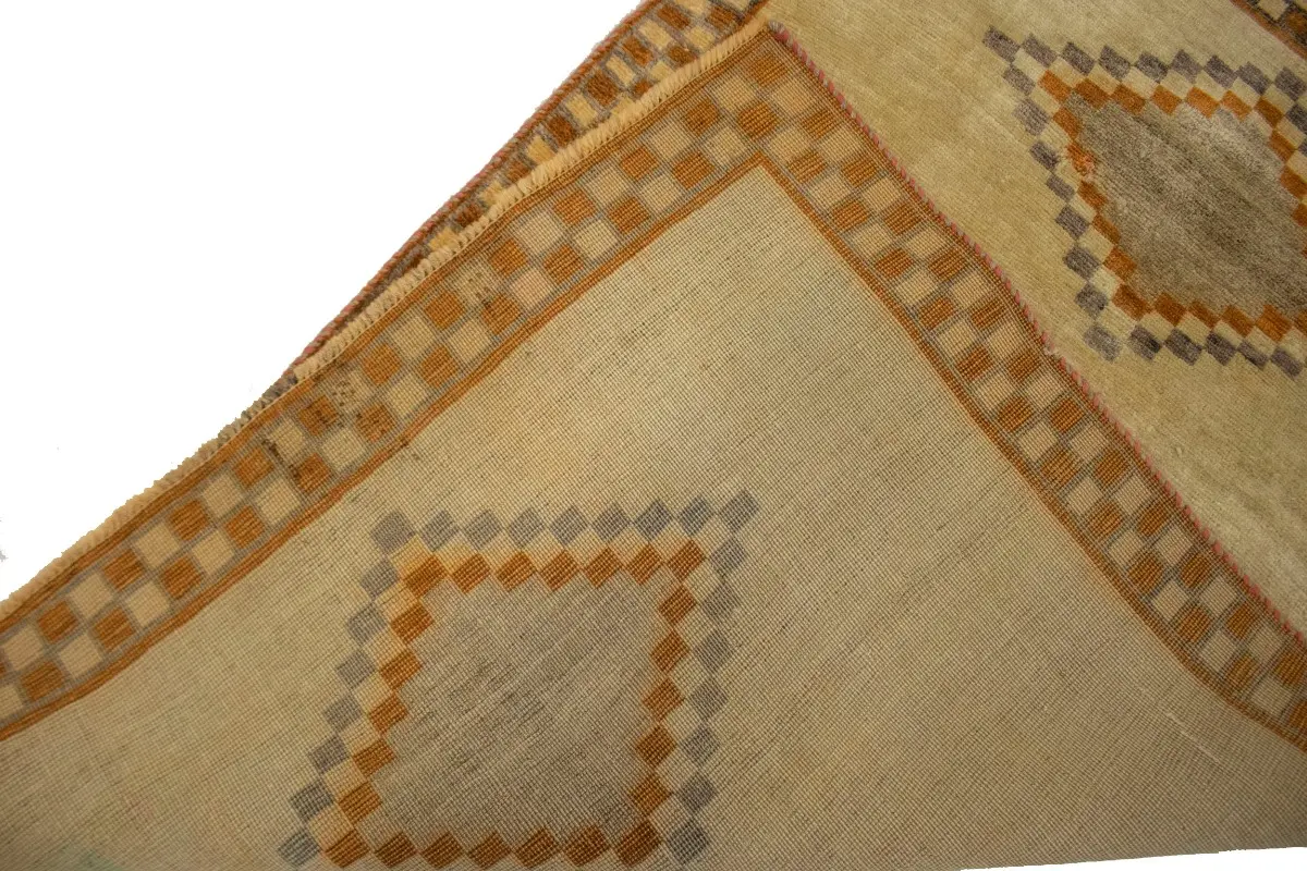 This authentic 3'6X5'3 beige vintage Persian rug was finely knotted by the hands of weavers influenced by a variety of amazing artistic designs, to recreate the aged look of the exceptional piece with a richness of color and embellished background field. What set this tribal Oriental area rug from the others are the material and dye used (wool pile and cotton foundation), knot count, antique designs, fantastic grades, and its regional historical connection: it has deep roots, from the story of the people who produced it to the meaning of the symbols and colors displayed across its canvas that have been praised for centuries. This home décor carpet will be completely cozy and inviting that never will go out of style! Also, this Oriental rug would be among your most valuable treasures, it is a great investment that increase in value over time, and it will last a lifetime because was woven with high-quality, all-natural wool; it won’t rip, tear, or shed. Eco-friendly, opulent yet affordable; this Persian rug will give you an extra pop of character to help define your home environment with luxury and warmth that will capture the eyes and attention of your audience (homeowners, designers, decorators, family and friends). RT-1140