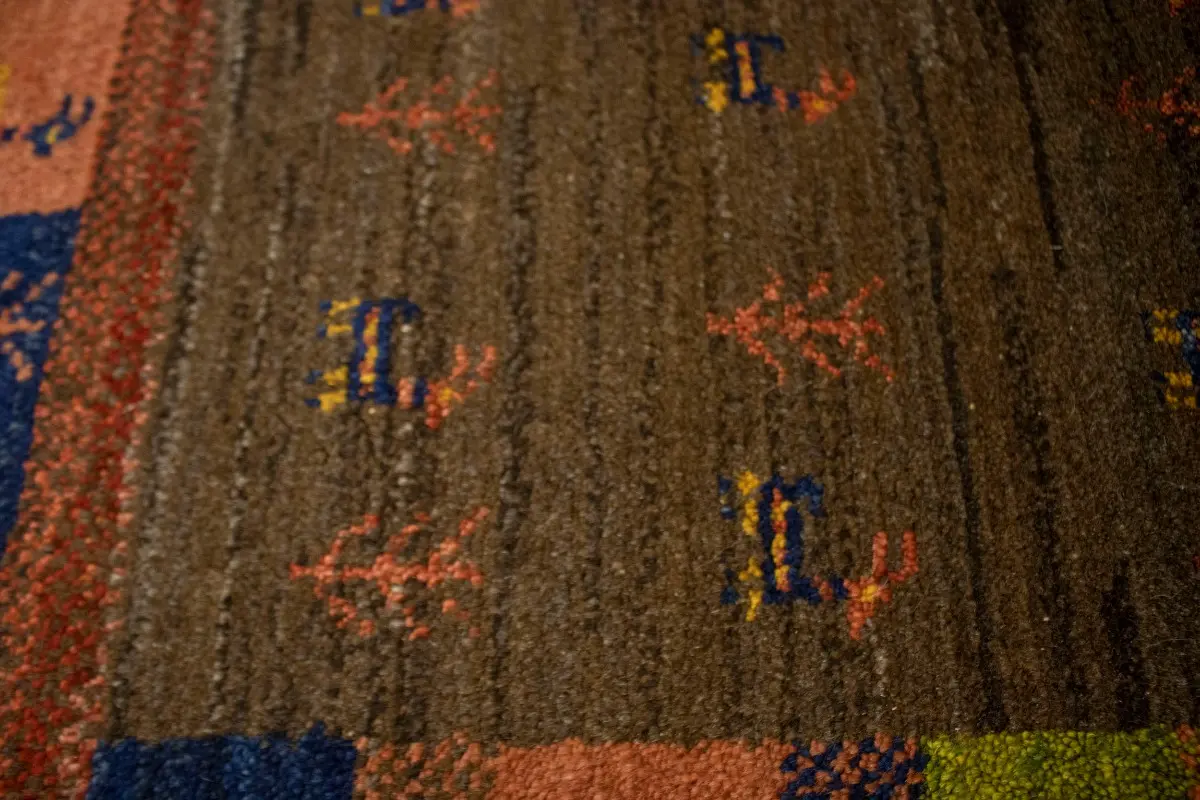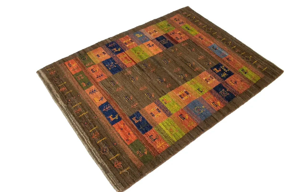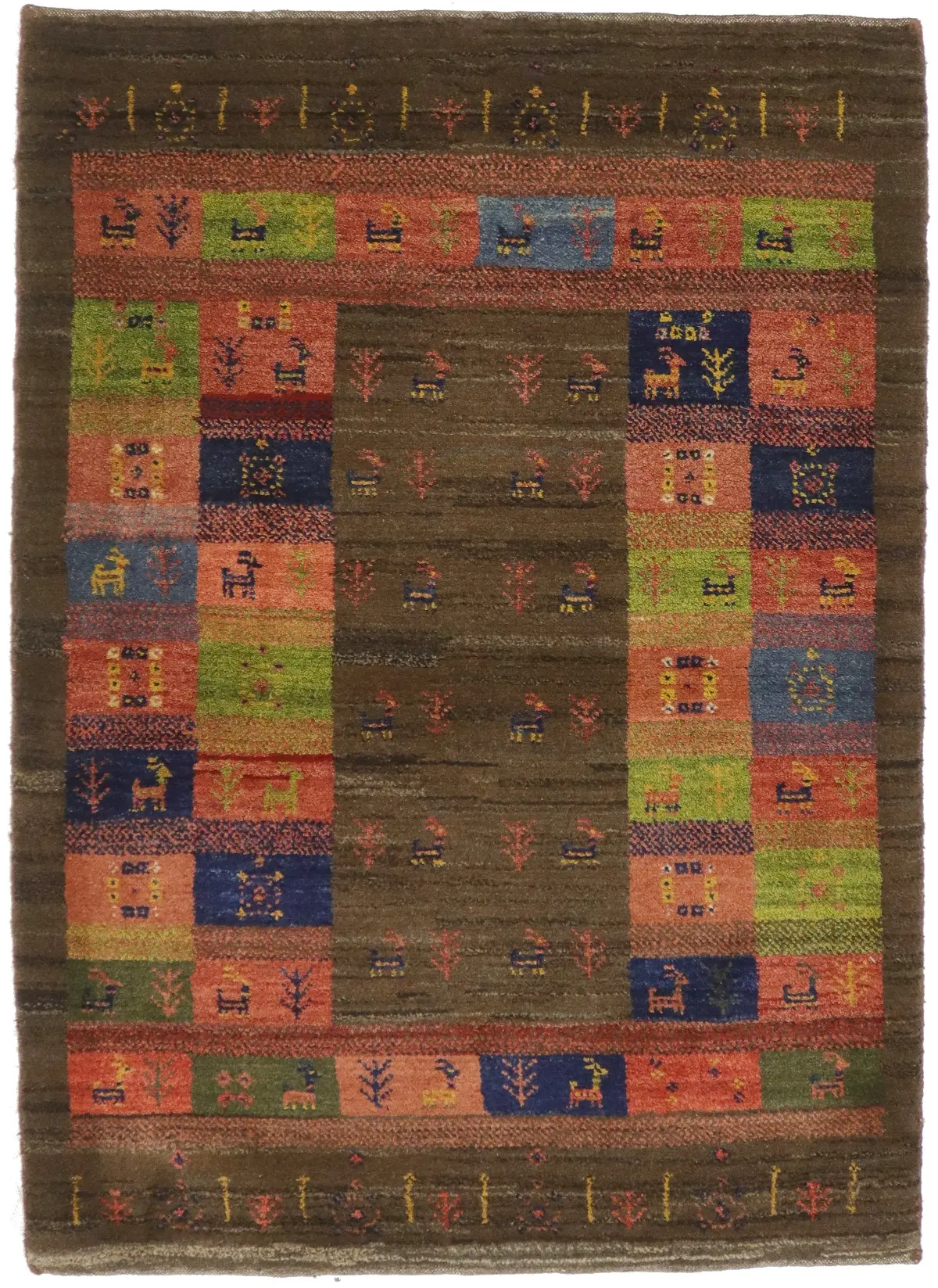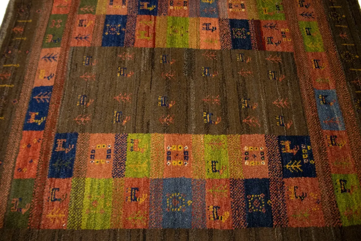 Brown Vintage Tribal 3'4X4'8 Gabbeh Persian Oriental Rug