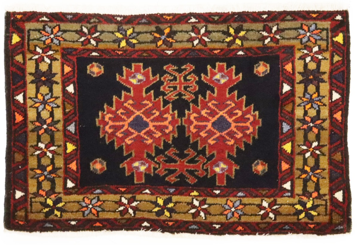 This original 2X3 black vintage Persian rug was crafted by the hands of skilled weavers enthused by a variety of lovely artistic designs, to recreate the aged look of the unique piece with a richness of color and beautifully elaborated background field. What set this tribal Oriental area rug from the others are the material and dye used (wool pile and cotton foundation), knot count, ancient designs, fantastic grades, and its regional historical connection: it has deep roots, from the story of the people who produced it to the meaning of the symbols and colors displayed across its canvas that have been praised for centuries. This home décor carpet will be completely cozy and inviting that never will go out of style! Also, this Oriental rug would be among your most valuable treasures, it is a great investment that increase in value over time, and it will last for generations because was woven with high-quality, all-natural wool; it won’t rip, tear, or shed. Environmentally friendly, opulent yet affordable; this Persian rug will give you a thorough amount of character to help define your living space with sophistication and warmth that will capture the eyes and attention of your audience (homeowners, designers, decorators, family and friends). EB-6324