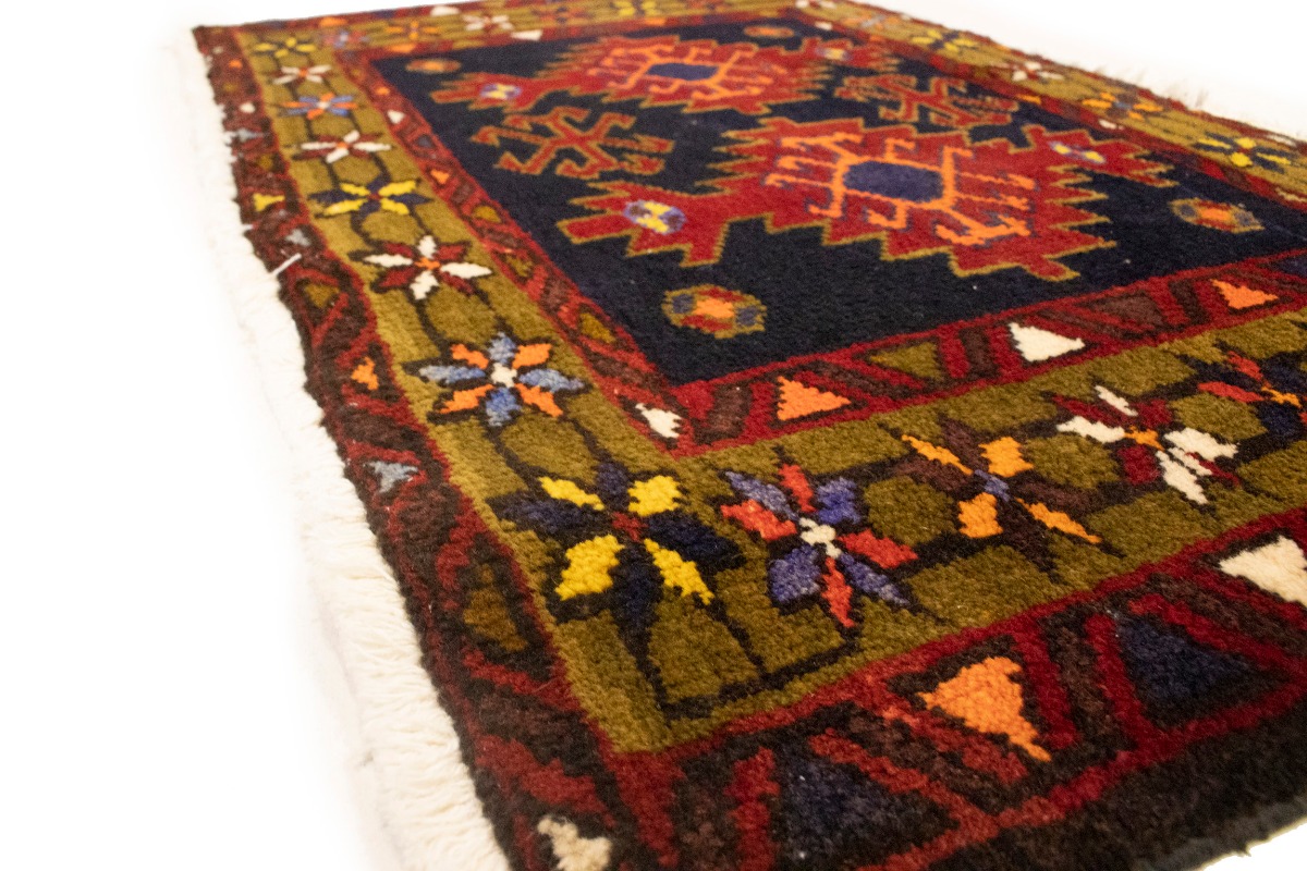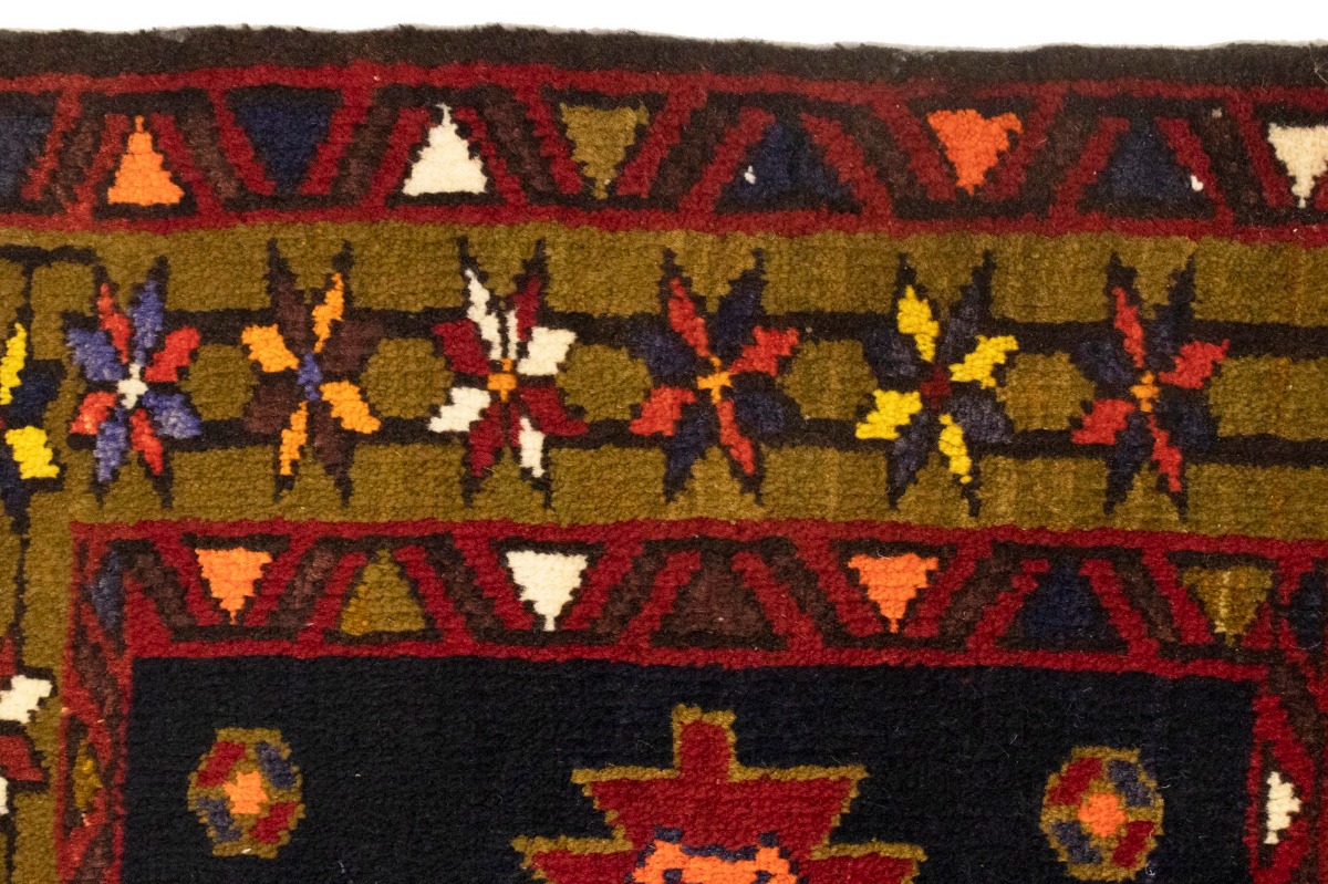 This original 2X3 black vintage Persian rug was crafted by the hands of skilled weavers enthused by a variety of lovely artistic designs, to recreate the aged look of the unique piece with a richness of color and beautifully elaborated background field. What set this tribal Oriental area rug from the others are the material and dye used (wool pile and cotton foundation), knot count, ancient designs, fantastic grades, and its regional historical connection: it has deep roots, from the story of the people who produced it to the meaning of the symbols and colors displayed across its canvas that have been praised for centuries. This home décor carpet will be completely cozy and inviting that never will go out of style! Also, this Oriental rug would be among your most valuable treasures, it is a great investment that increase in value over time, and it will last for generations because was woven with high-quality, all-natural wool; it won’t rip, tear, or shed. Environmentally friendly, opulent yet affordable; this Persian rug will give you a thorough amount of character to help define your living space with sophistication and warmth that will capture the eyes and attention of your audience (homeowners, designers, decorators, family and friends). RT-10477