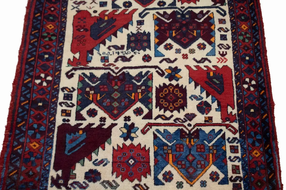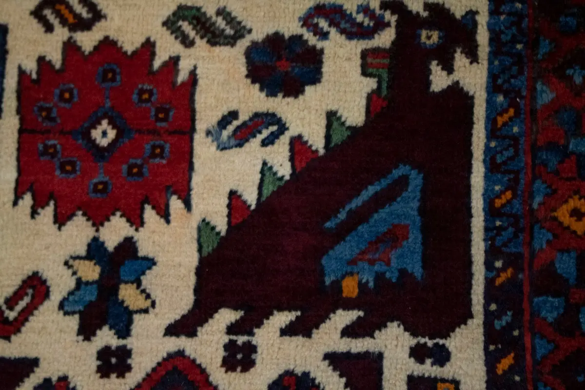 Cream Vintage Tribal Pictorial 3X4 Abadeh Persian Oriental Rug