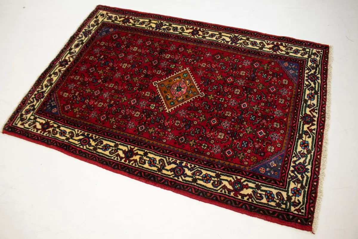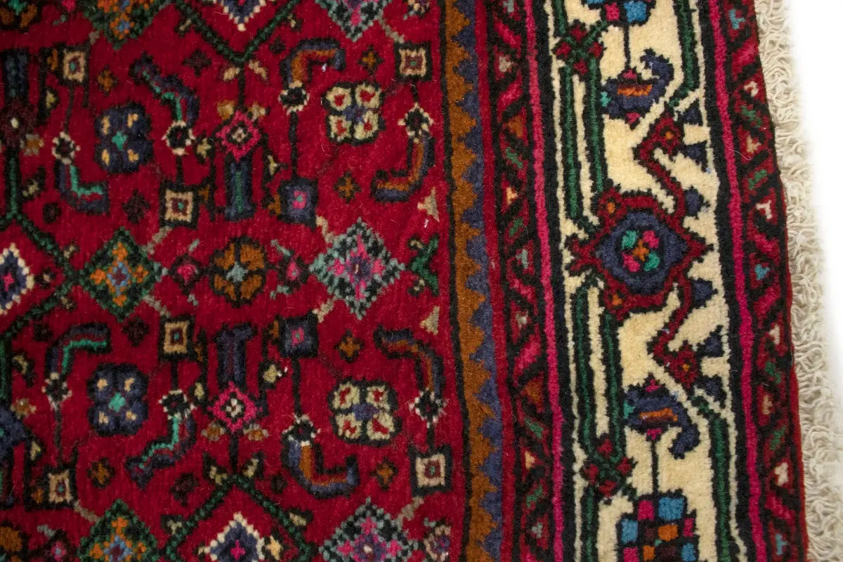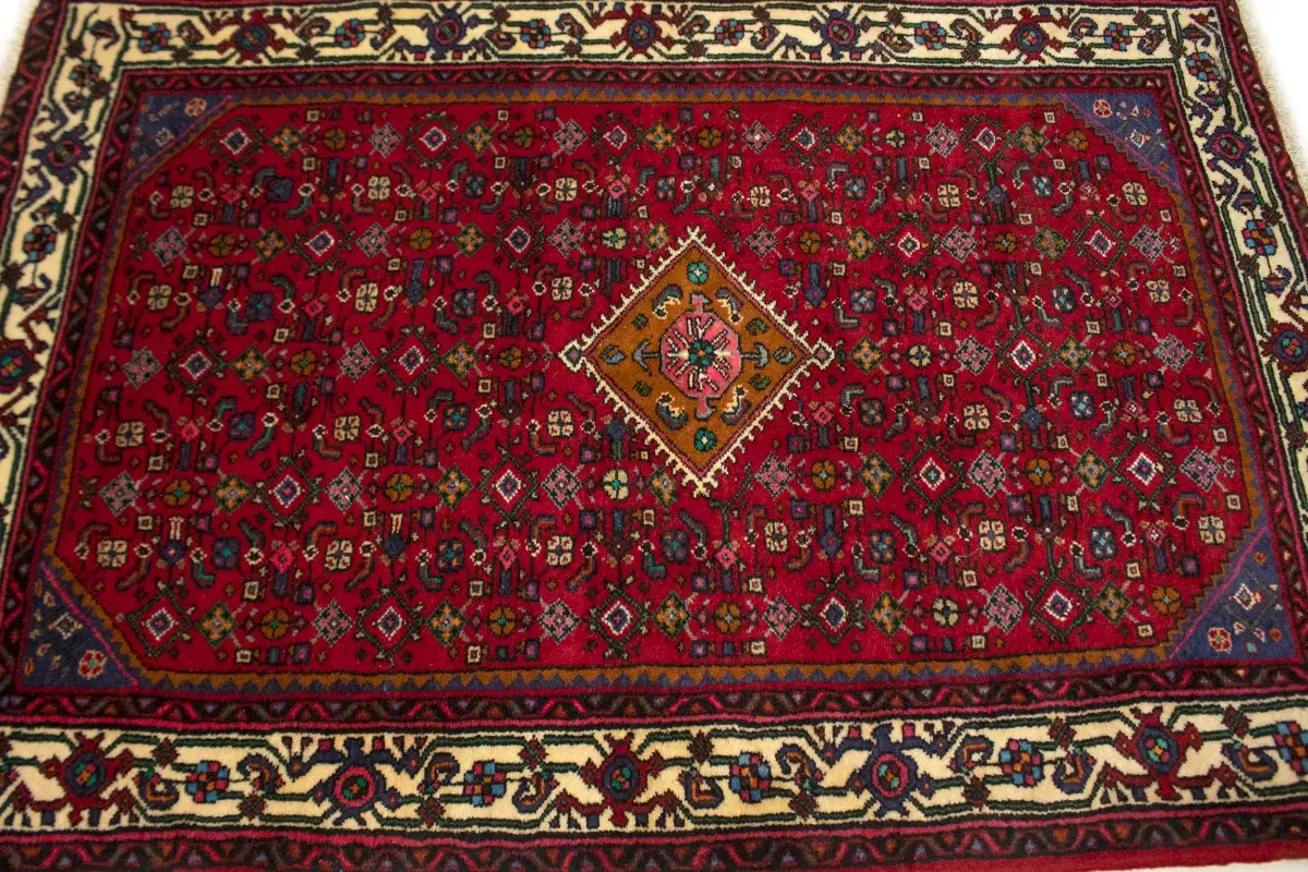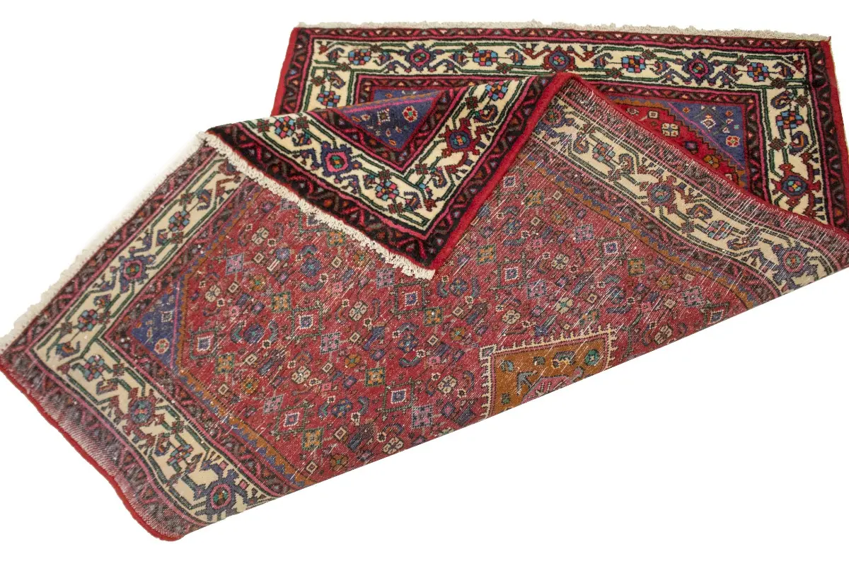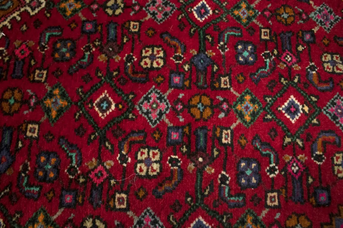 This genuine 3X5 red vintage Persian rug was made by the hands of talented weavers influenced by a variety of gorgeous symmetrical artistic designs, to recreate the aged look of the unique piece with a richness of color and very balanced background field. What set this tribal Oriental area rug from the others are the material and dye used (wool pile and cotton foundation), knot count, antique designs, fantastic grades, and its regional historical connection: it has deep roots, from the story of the people who produced it to the meaning of the symbols and colors displayed across its canvas that have been praised for centuries. This home décor carpet will be completely cozy and inviting that never will go out of style! Also, this Oriental rug would be among your most valuable treasures, it is a great investment that accrues value over time, and it will last a lifetime because was woven with high-quality, all-natural wool; it won’t rip, tear, or shed. Eco-friendly, opulent yet affordable; this Persian rug will give you an extra pop of character to help define your home environment with sophistication and warmth that will capture the eyes and attention of your audience (homeowners, designers, decorators, family and friends). RT-1584
