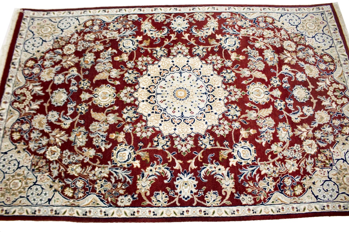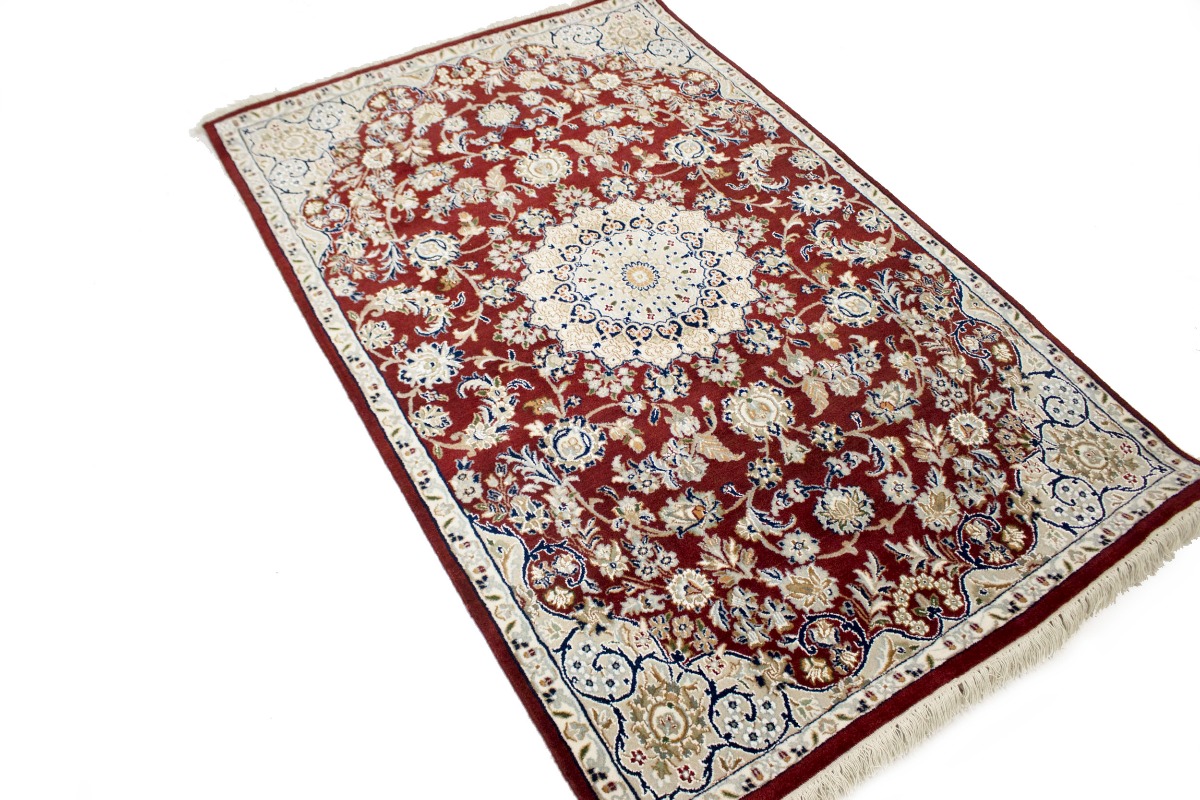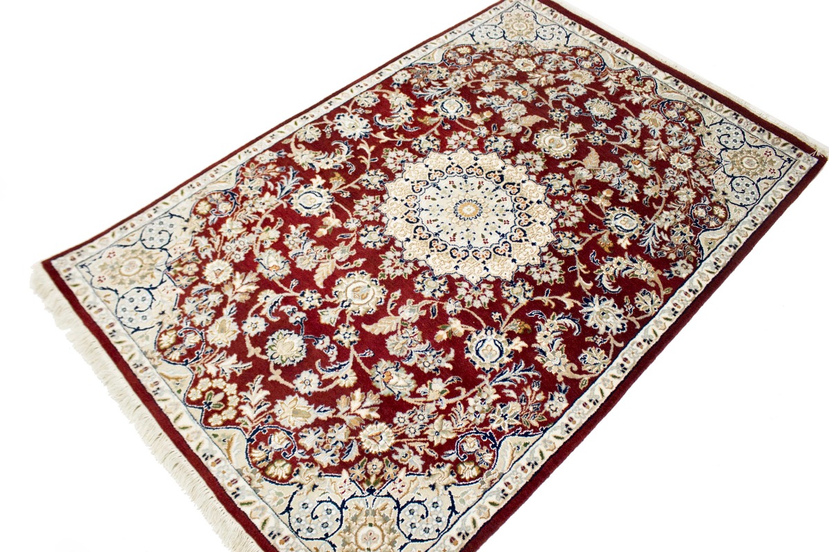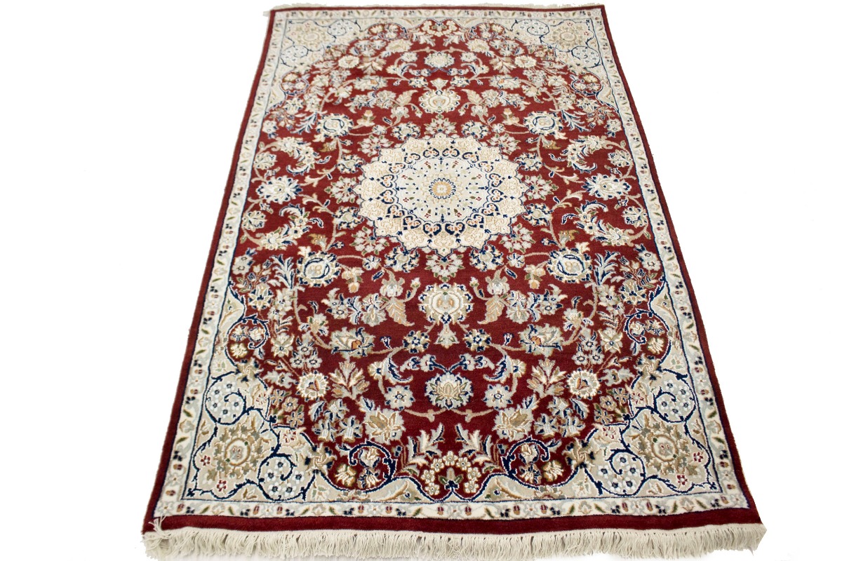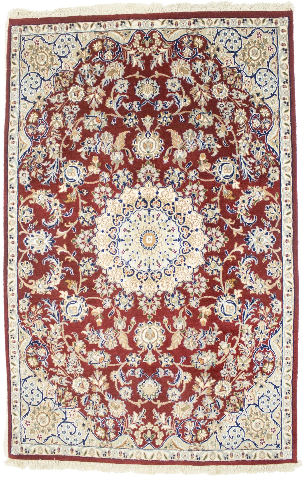 Wine Red Floral 4X6 Indo-Nain Oriental Rug