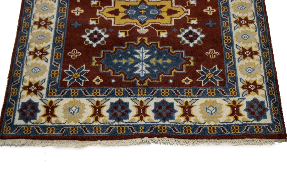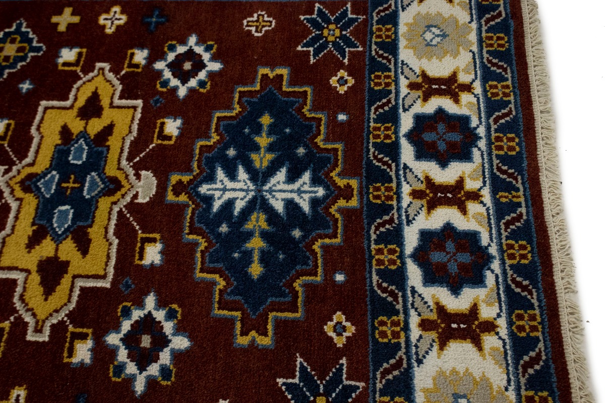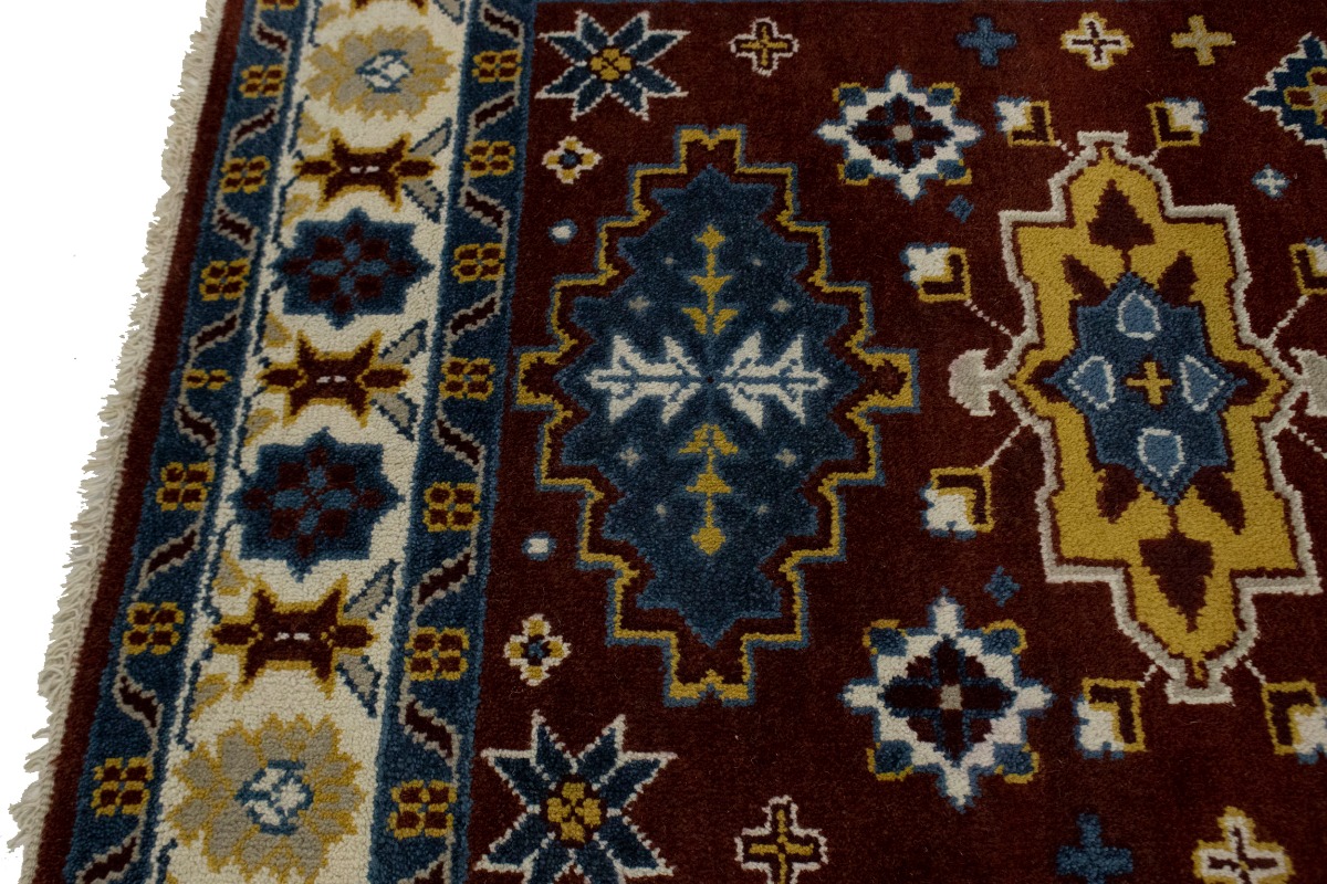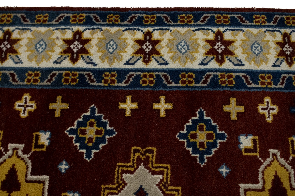 Wine Red Geometric 5X8 Kazak Oriental Rug