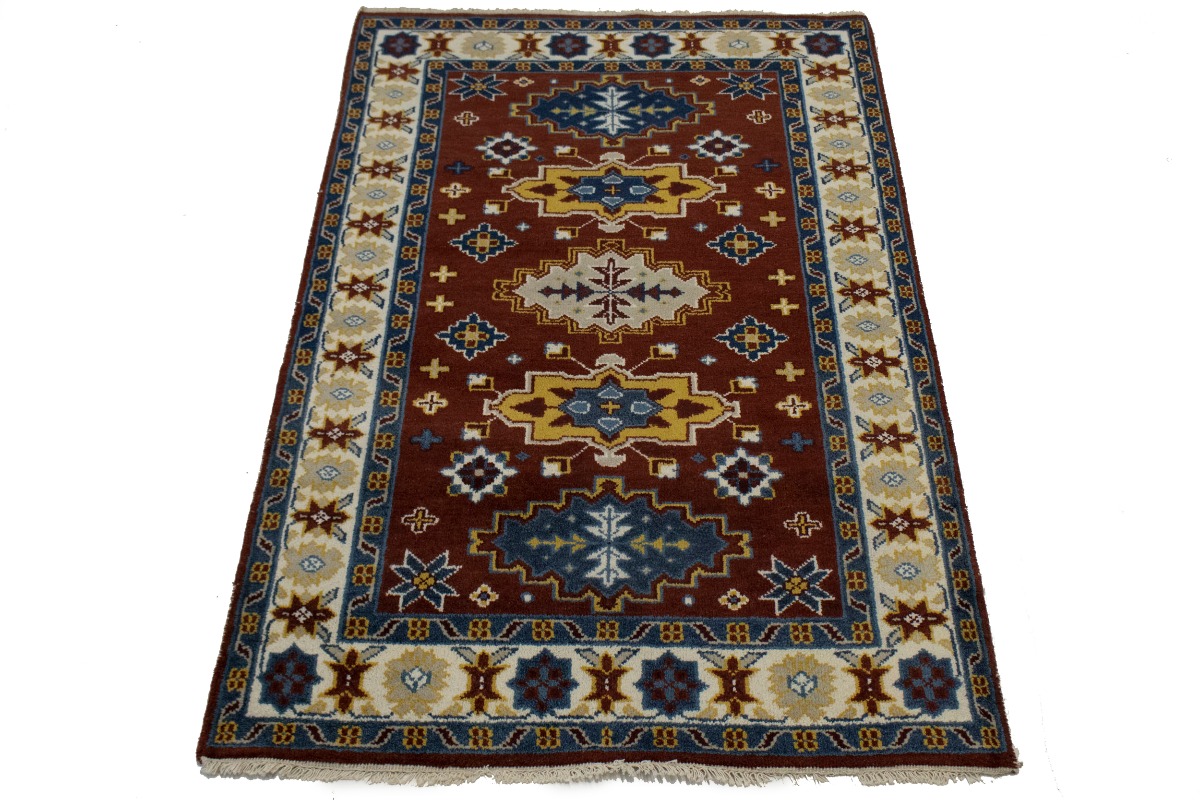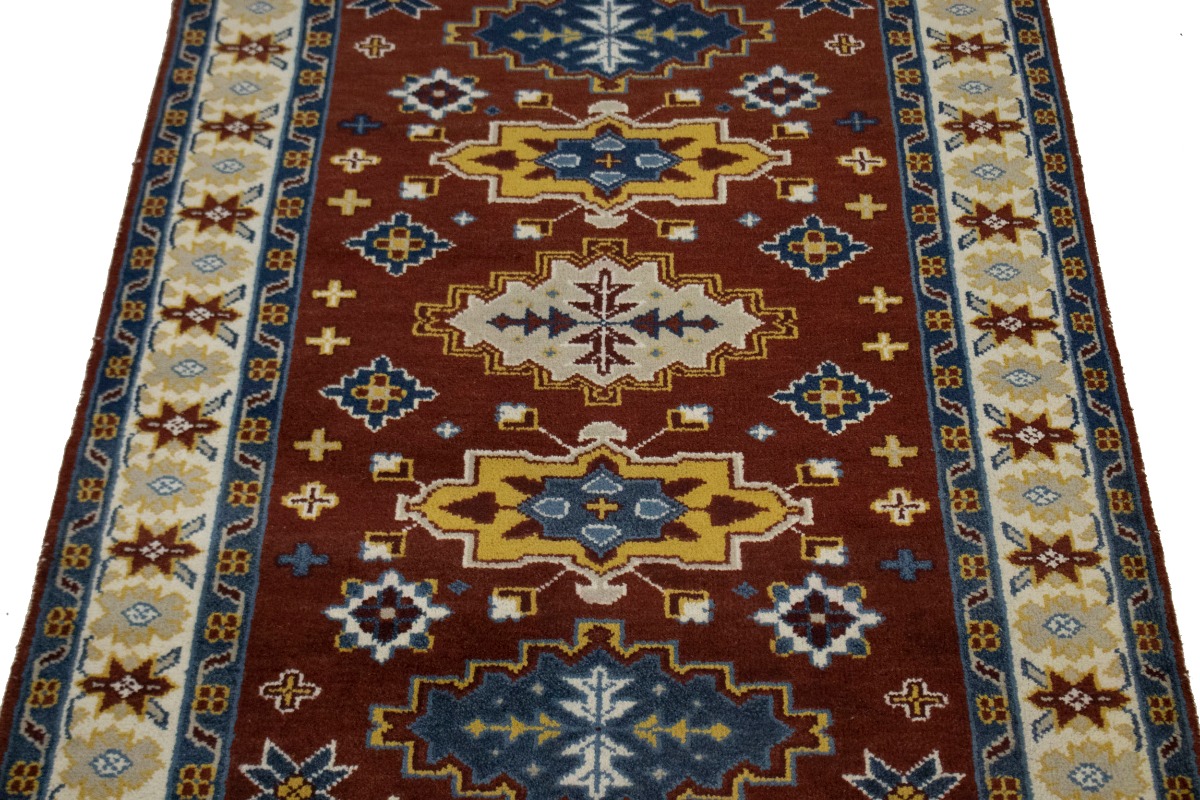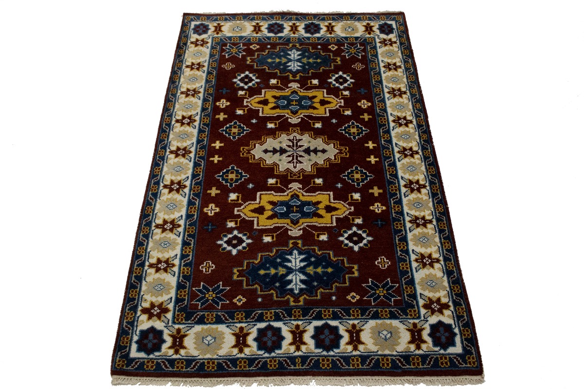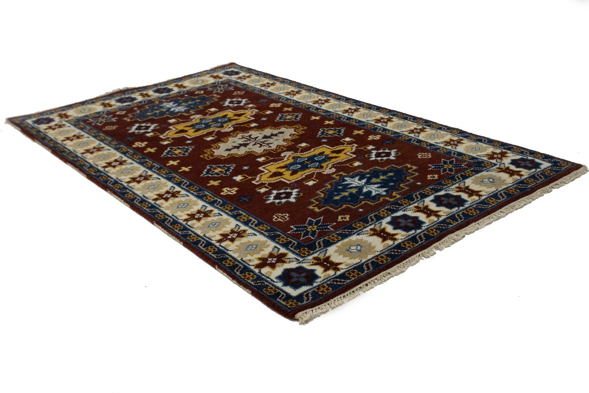 Wine Red Geometric 5X8 Kazak Oriental Rug