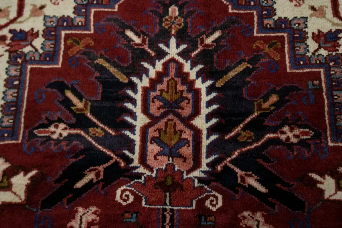 This authentic 8X11 Wine Red Persian rug was finely knotted by the hands of weavers influenced by a variety of amazing artistic designs, to recreate the aged look of the exceptional piece with a richness of color and embellished background field. What set this geometric Oriental area rug from the others are the material and dye used (wool pile and cotton foundation), knot count, antique designs, fantastic grades, and its regional historical connection: it has deep roots, from the story of the people who produced it to the meaning of the symbols and colors displayed across its canvas that have been praised for centuries. This home décor carpet will be completely cozy and inviting that never will go out of style! Also, this Oriental rug would be among your most valuable treasures, it is a great investment that increases in value over time, and it will last a lifetime because was woven with high-quality, all-natural wool; it won’t rip, tear, or shed. Eco-friendly, opulent yet affordable; this Persian rug will give you an extra pop of character to help define your home environment with luxury and warmth that will capture the eyes and attention of your audience (homeowners, designers, decorators, family and friends). RT-3066
