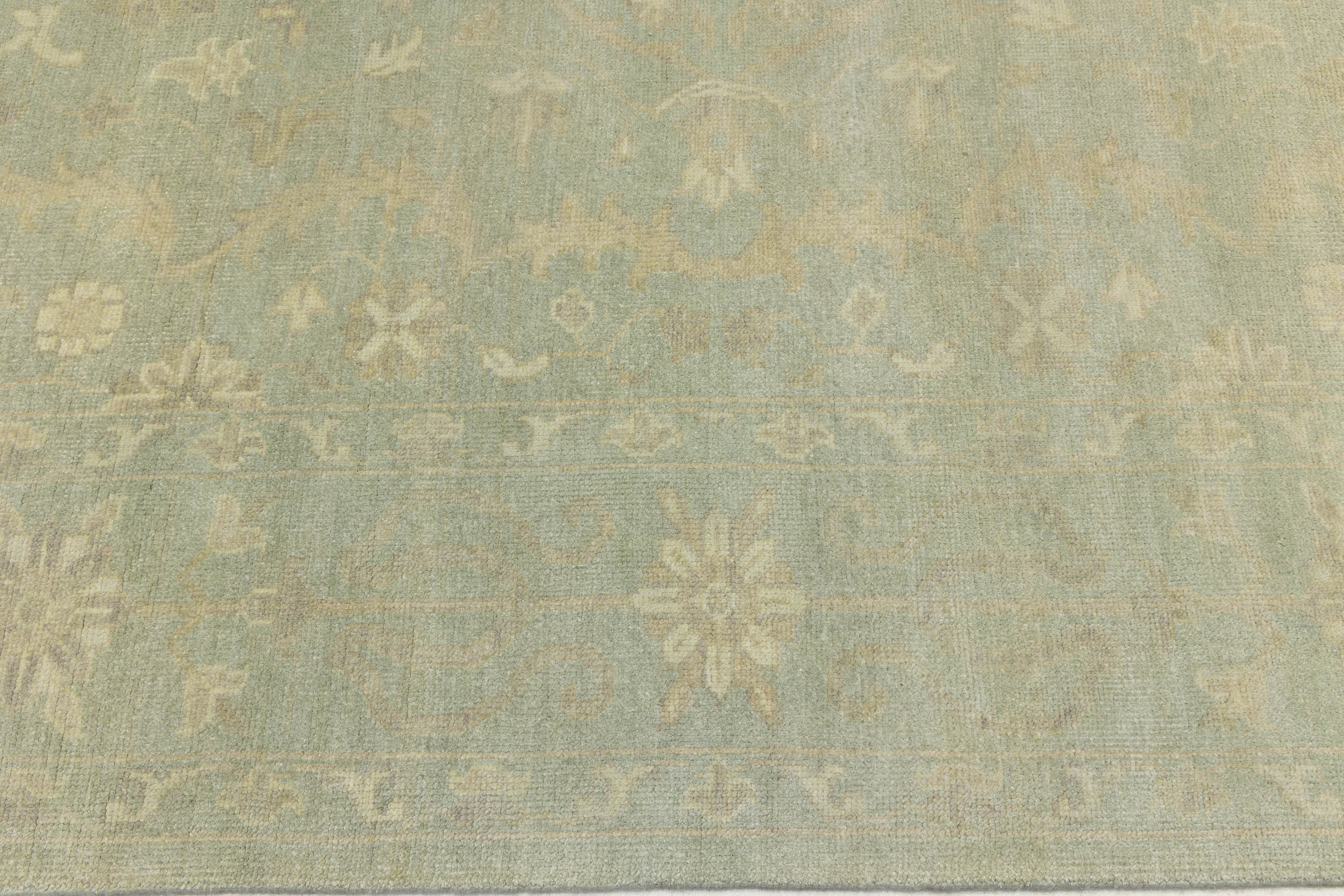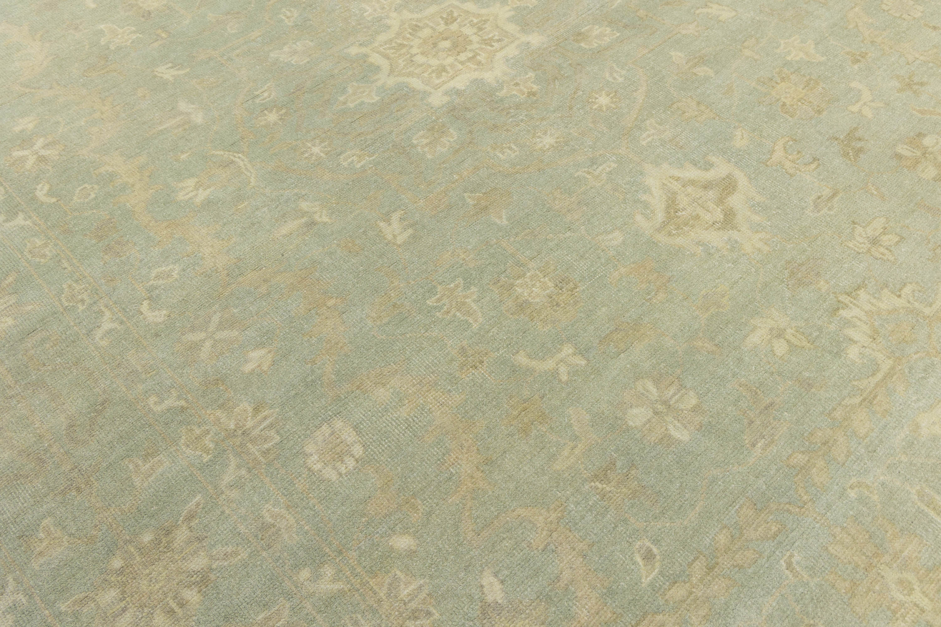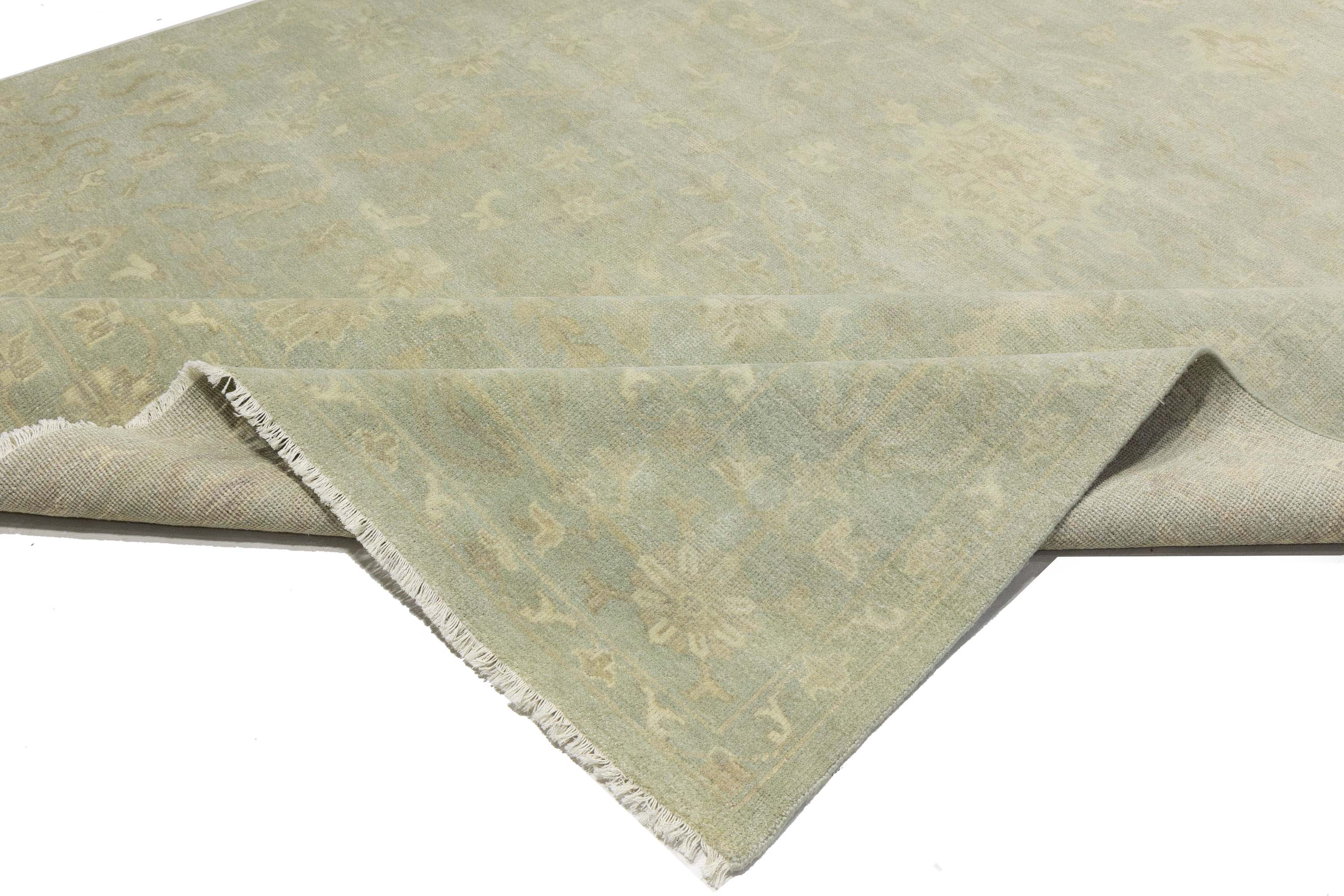 Muted Aqua Blue Floral 10x14Transitional Oriental Rug