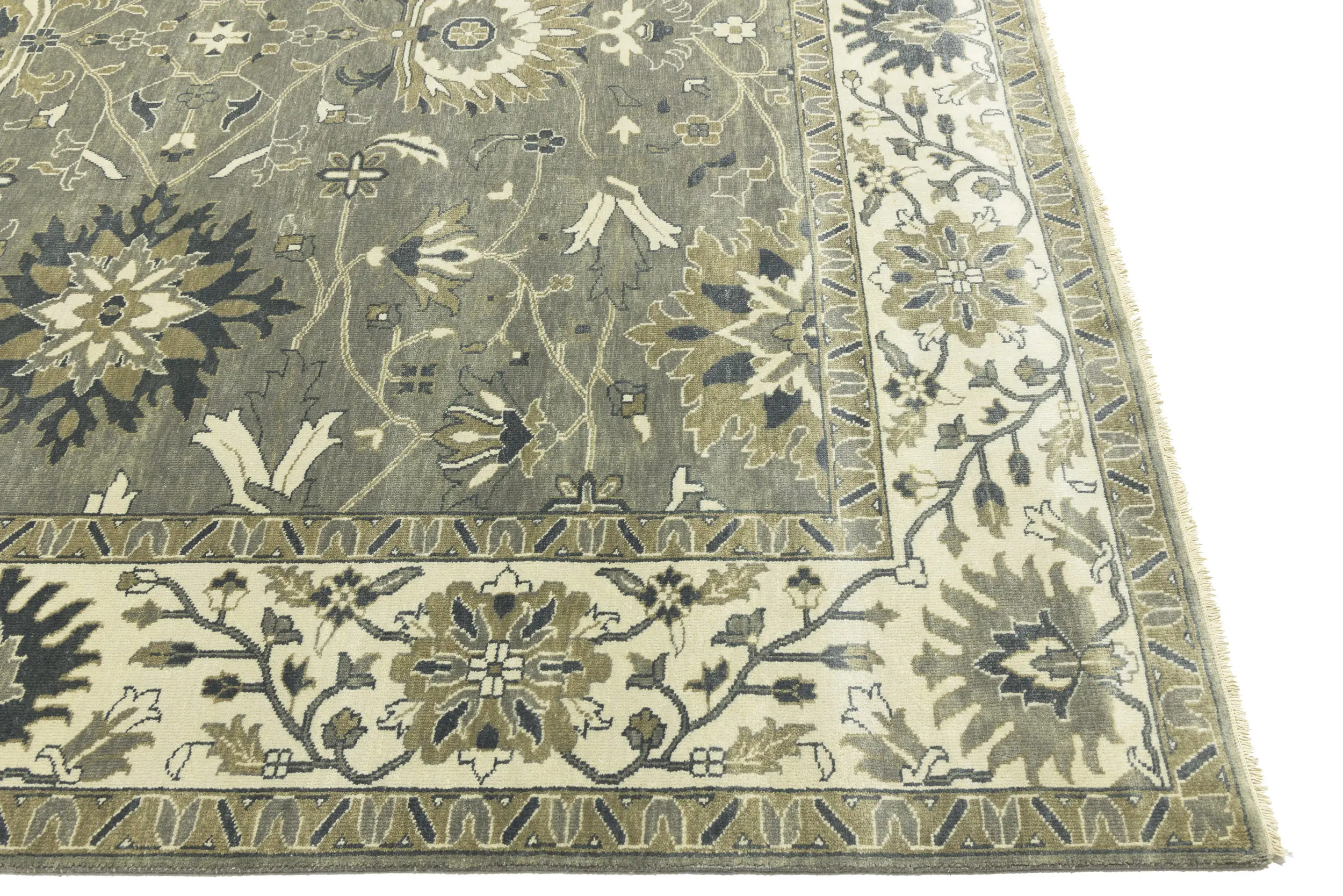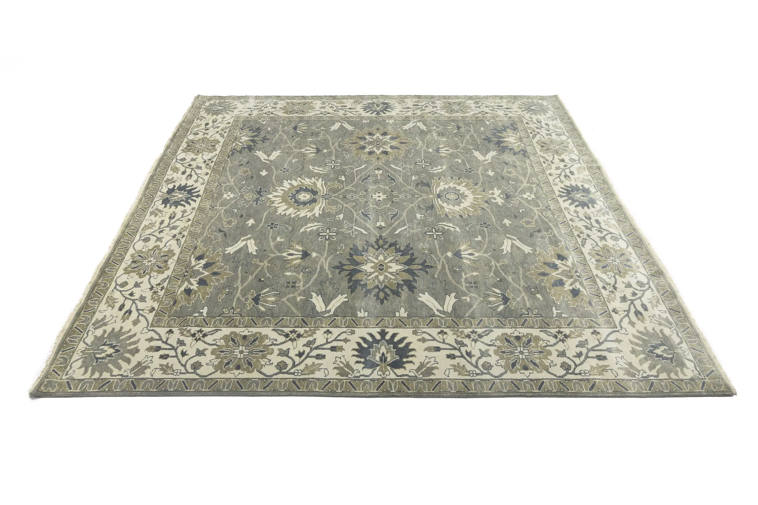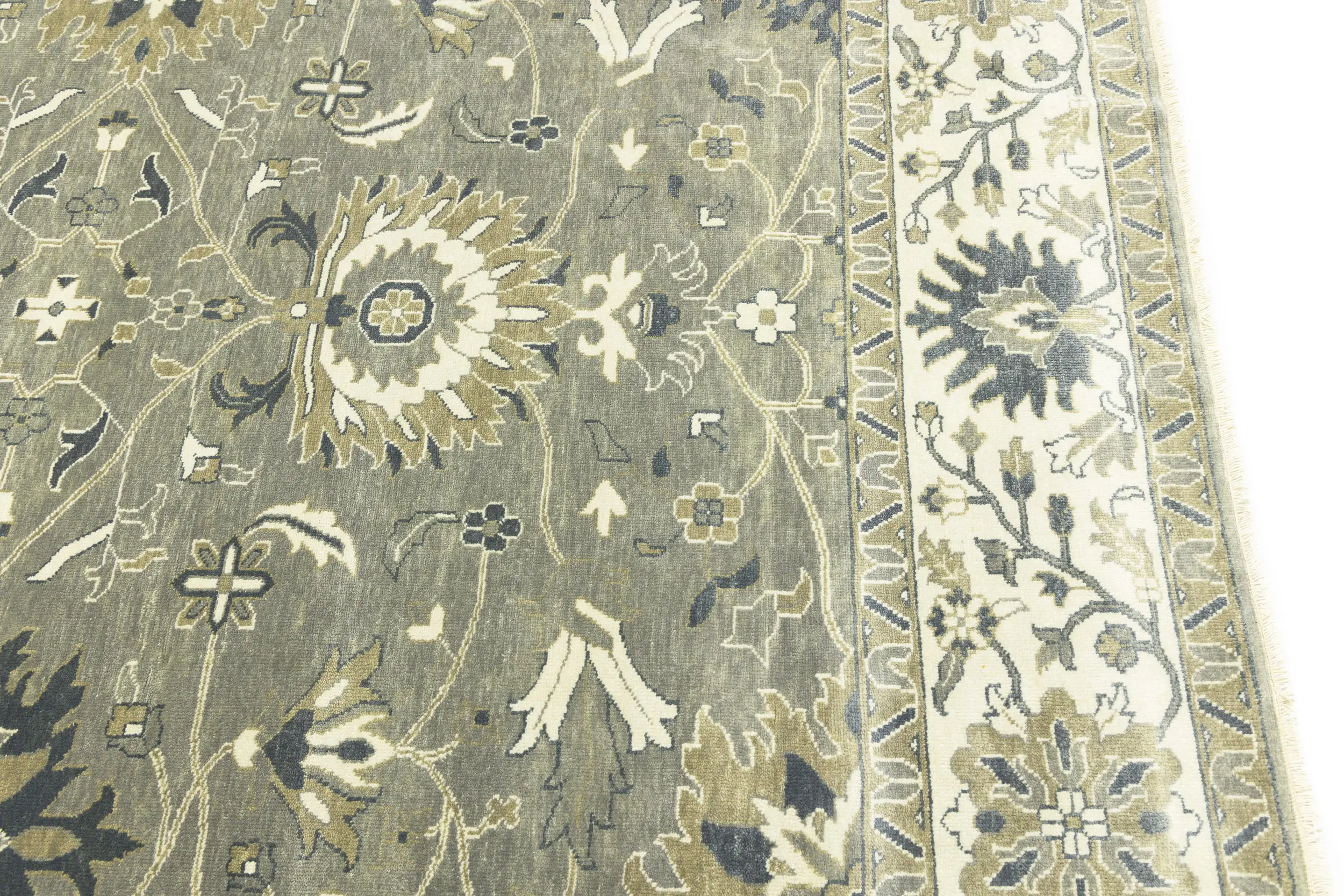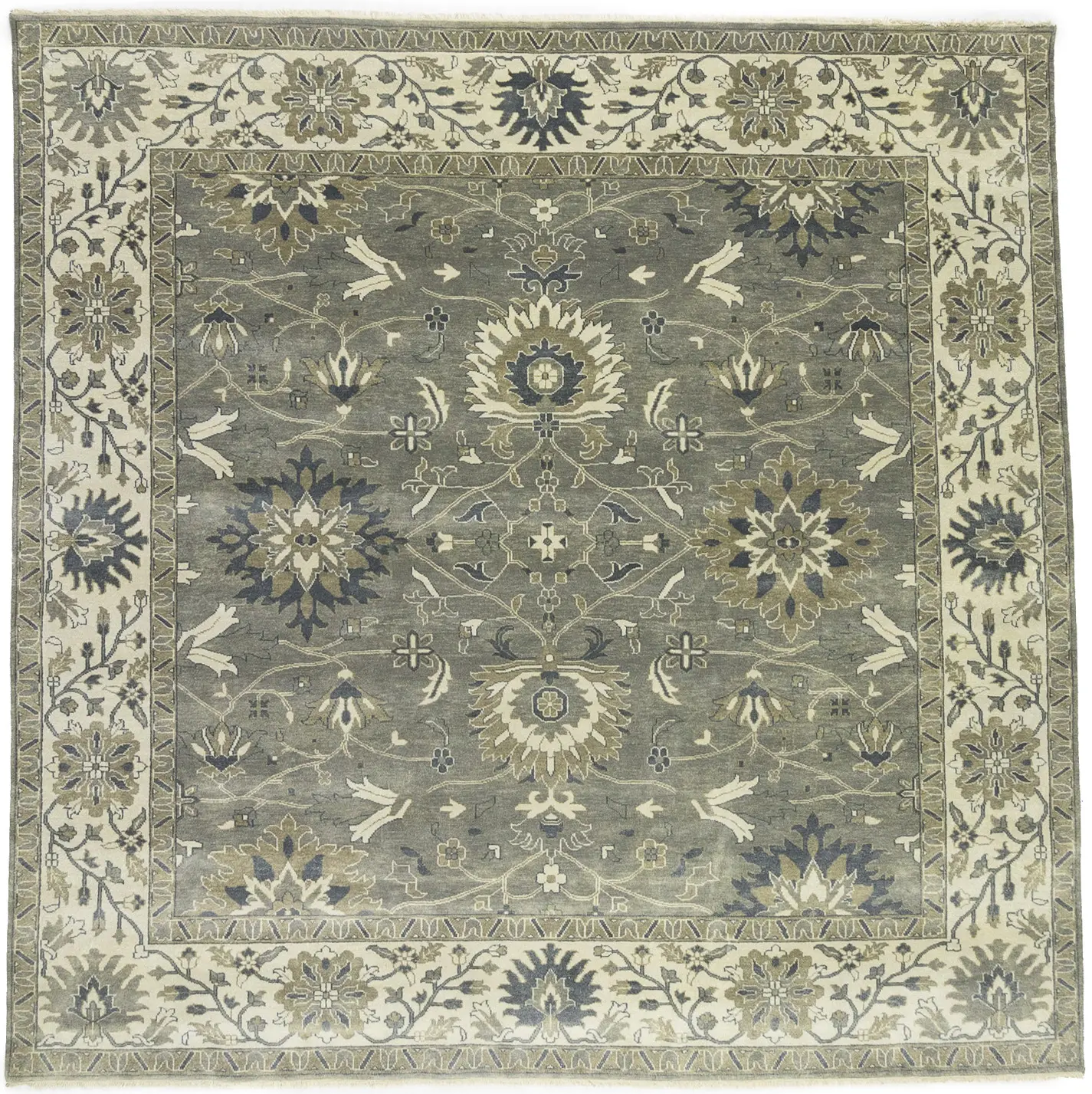 This authentic 10X10 Light Gray new Oriental rug was masterly knotted by the hands of weavers inspired by a variety of wonderful artistic designs, to recreate the aged look of the original piece with a richness of color and intricate patterned background field. What set this vintage style Oriental area rug from the others are the material and dye used (wool pile and cotton foundation), knot count, antique designs, fantastic grades, and its regional historical connection: it has deep roots, from the story of the people who produced it to the meaning of the symbols and colors displayed across its canvas that have been praised for centuries. This Indian home décor carpet will be completely cozy and inviting that never will go out of style! Also, this Oriental rug would be among your most valuable treasures, it is a great investment that accrues value over time, and it will last for generations because was woven with high-quality, all-natural wool. Environmentally friendly, opulent yet affordable; this rug will give you a thorough amount of character to help define your living space with luxury and warmth that will capture the eyes and attention of your audience (homeowners, designers, decorators, family and friends).Â