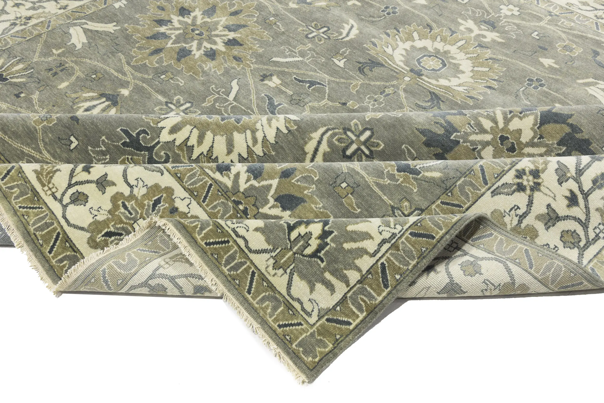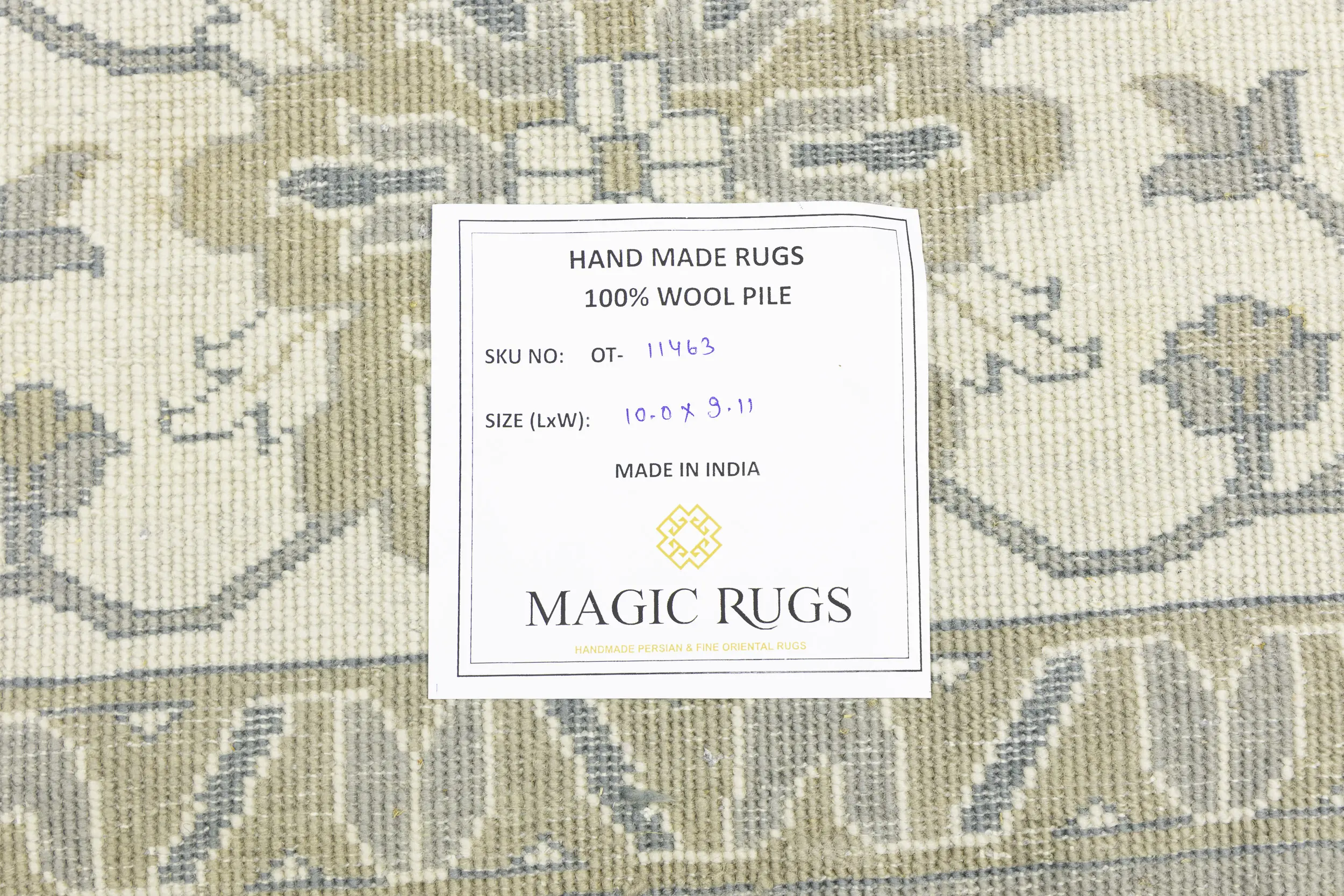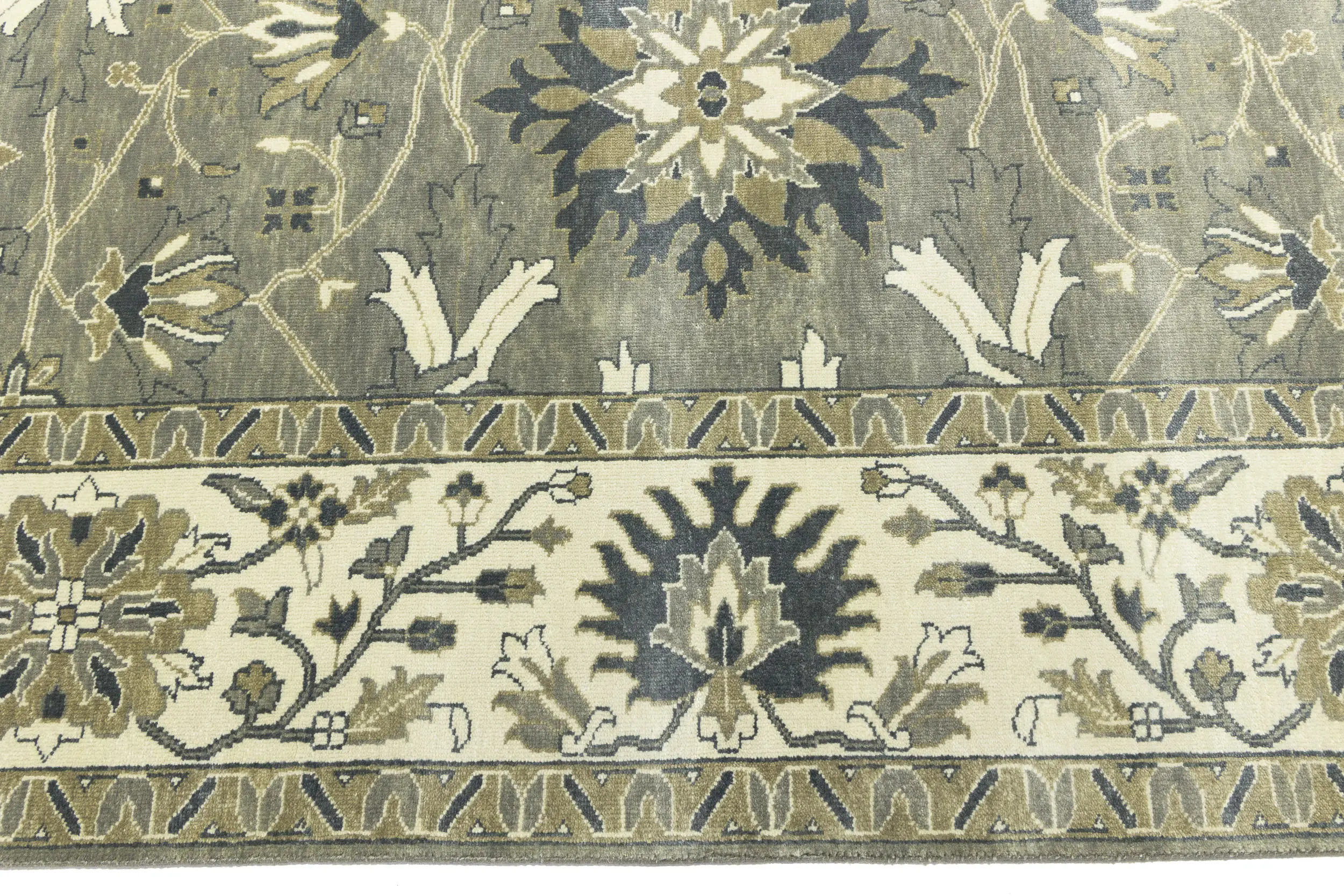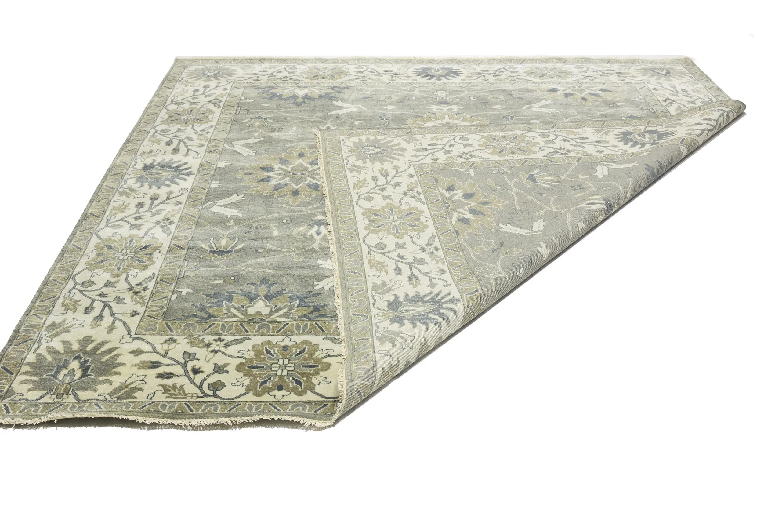 This authentic 10X10 Light Gray new Oriental rug was masterly knotted by the hands of weavers inspired by a variety of wonderful artistic designs, to recreate the aged look of the original piece with a richness of color and intricate patterned background field. What set this vintage style Oriental area rug from the others are the material and dye used (wool pile and cotton foundation), knot count, antique designs, fantastic grades, and its regional historical connection: it has deep roots, from the story of the people who produced it to the meaning of the symbols and colors displayed across its canvas that have been praised for centuries. This Indian home décor carpet will be completely cozy and inviting that never will go out of style! Also, this Oriental rug would be among your most valuable treasures, it is a great investment that accrues value over time, and it will last for generations because was woven with high-quality, all-natural wool. Environmentally friendly, opulent yet affordable; this rug will give you a thorough amount of character to help define your living space with luxury and warmth that will capture the eyes and attention of your audience (homeowners, designers, decorators, family and friends).Â