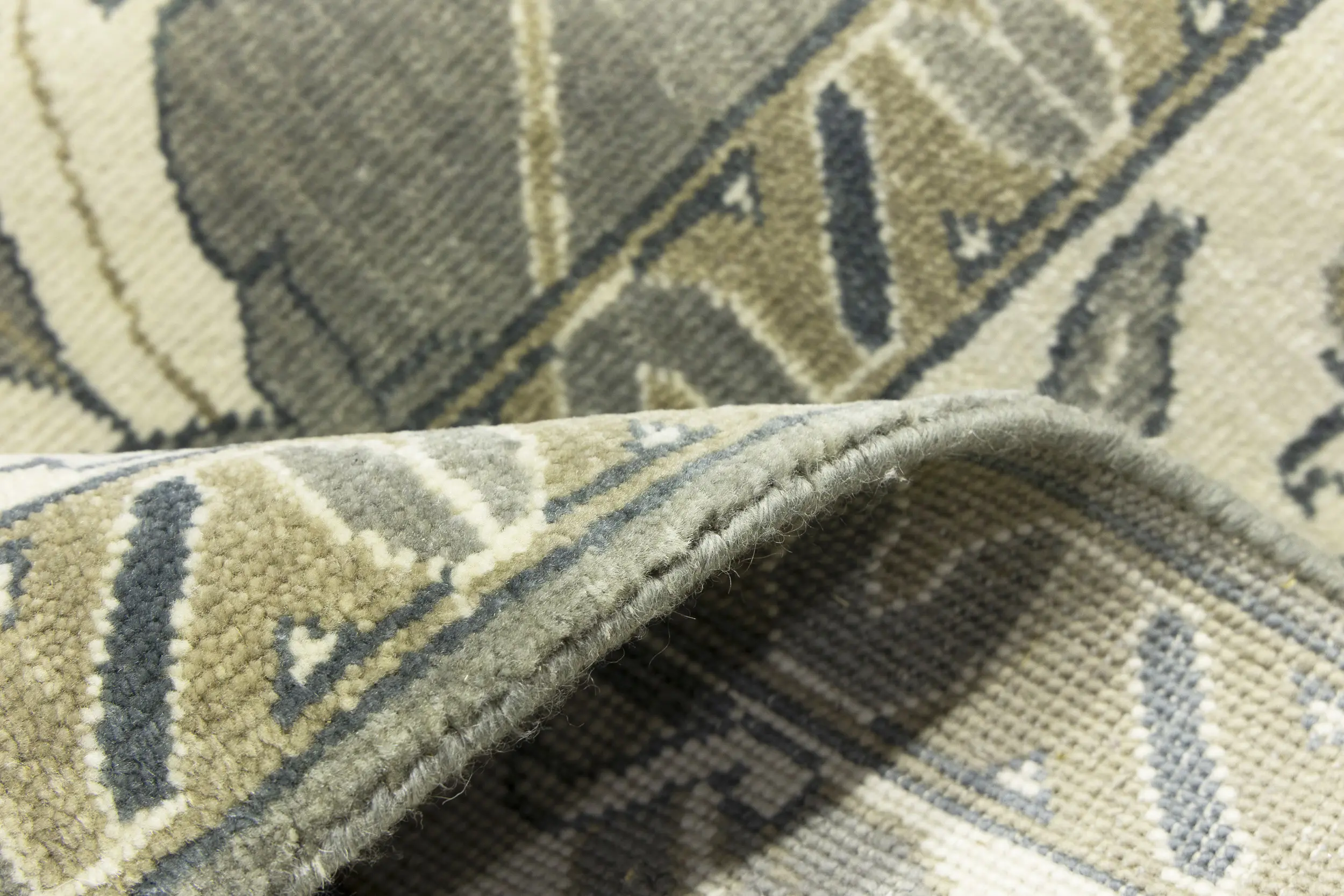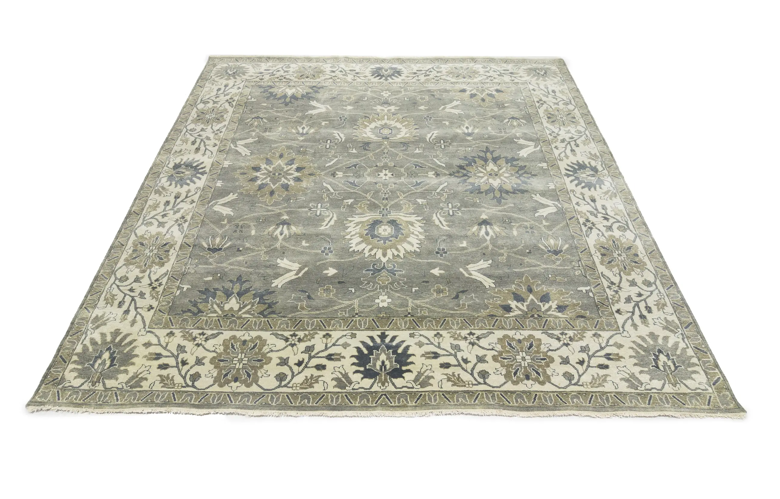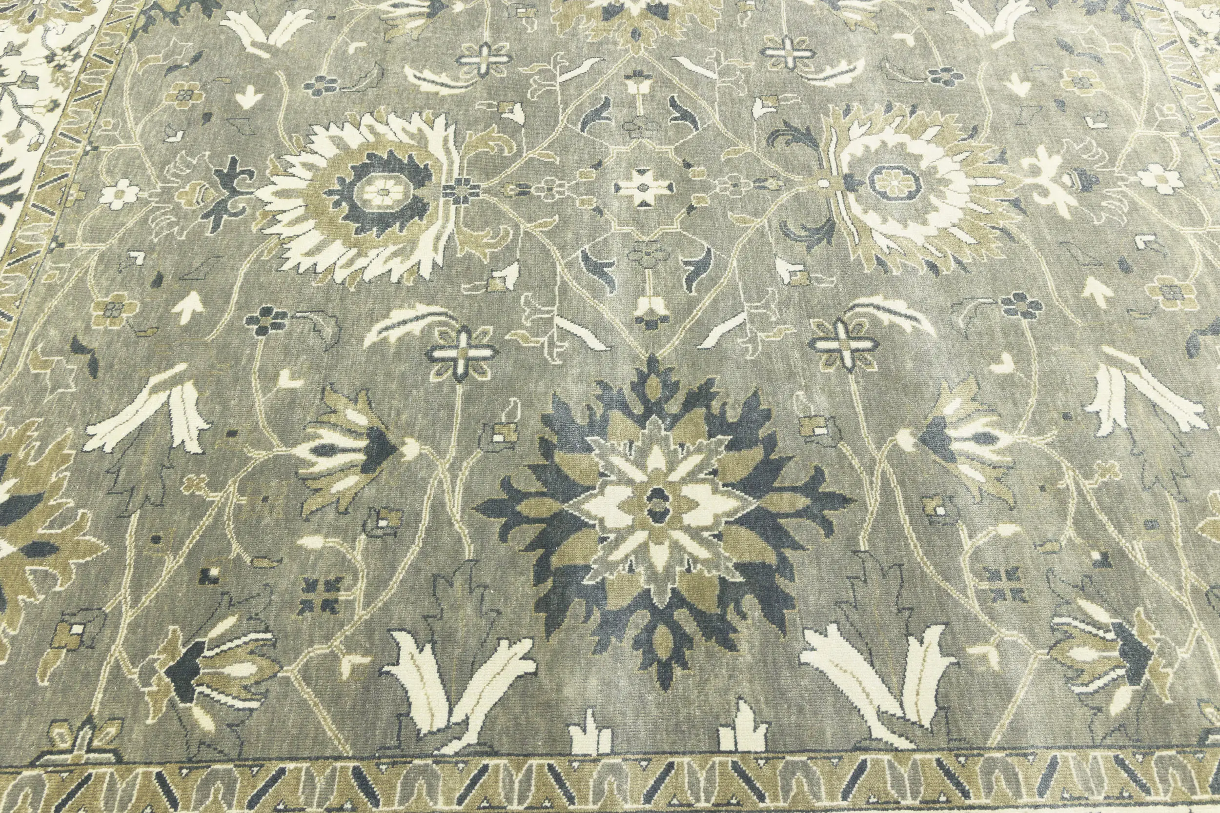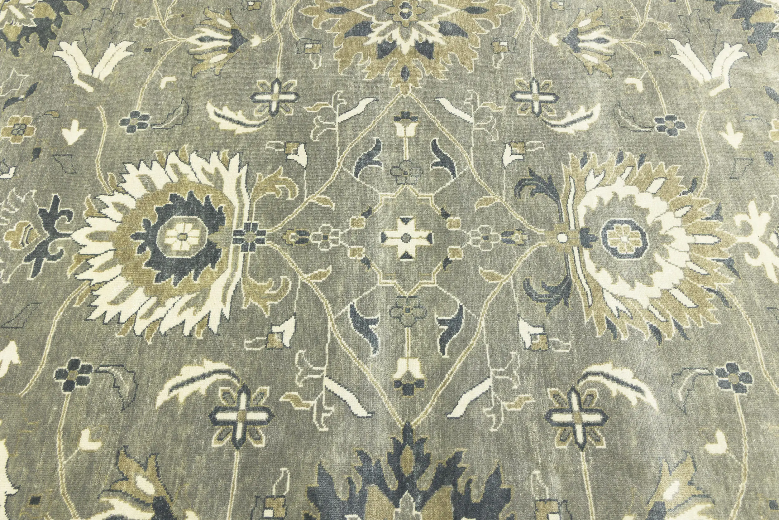 This authentic 10X10 Light Gray new Oriental rug was masterly knotted by the hands of weavers inspired by a variety of wonderful artistic designs, to recreate the aged look of the original piece with a richness of color and intricate patterned background field. What set this vintage style Oriental area rug from the others are the material and dye used (wool pile and cotton foundation), knot count, antique designs, fantastic grades, and its regional historical connection: it has deep roots, from the story of the people who produced it to the meaning of the symbols and colors displayed across its canvas that have been praised for centuries. This Indian home décor carpet will be completely cozy and inviting that never will go out of style! Also, this Oriental rug would be among your most valuable treasures, it is a great investment that accrues value over time, and it will last for generations because was woven with high-quality, all-natural wool. Environmentally friendly, opulent yet affordable; this rug will give you a thorough amount of character to help define your living space with luxury and warmth that will capture the eyes and attention of your audience (homeowners, designers, decorators, family and friends).Â